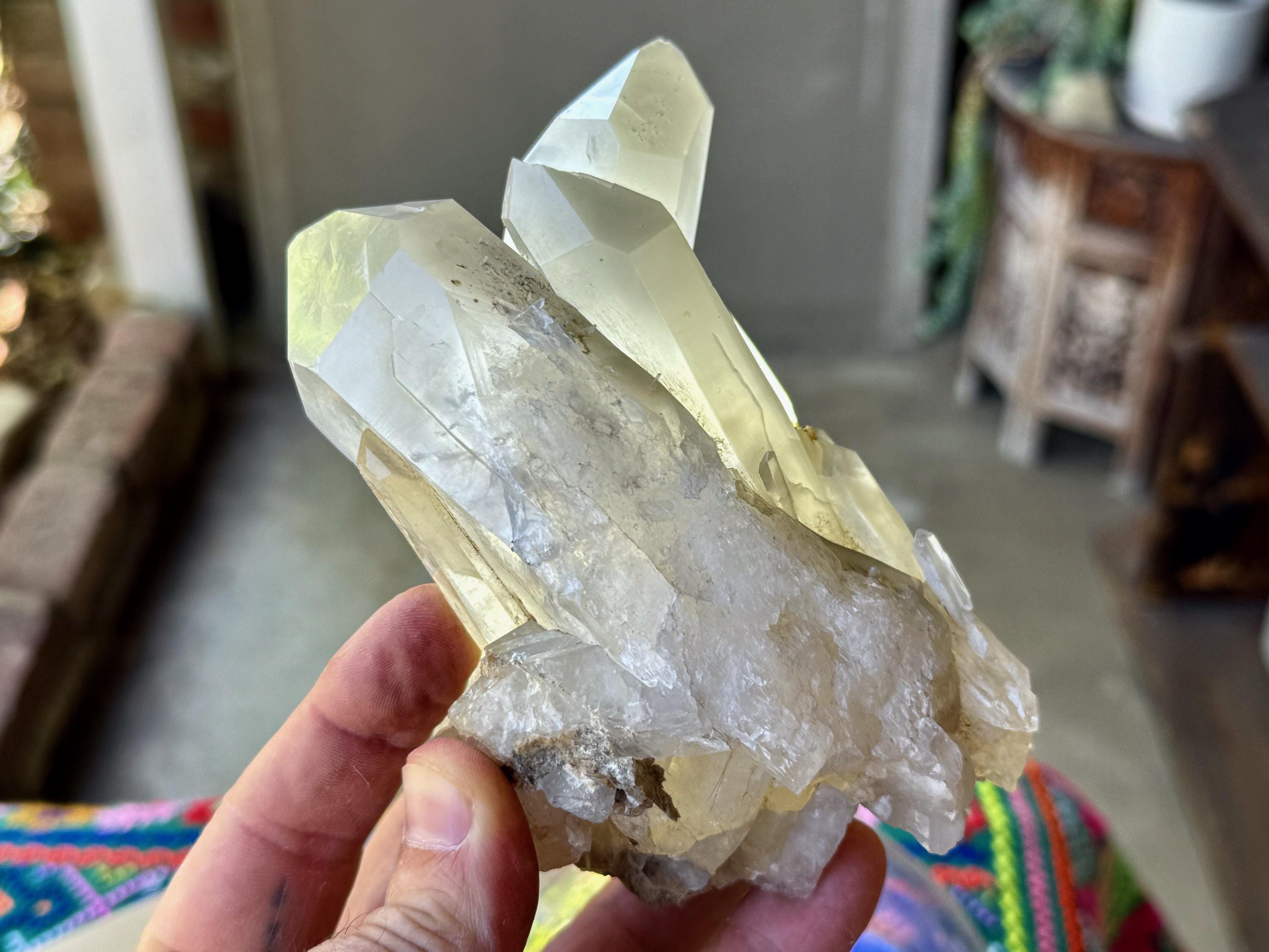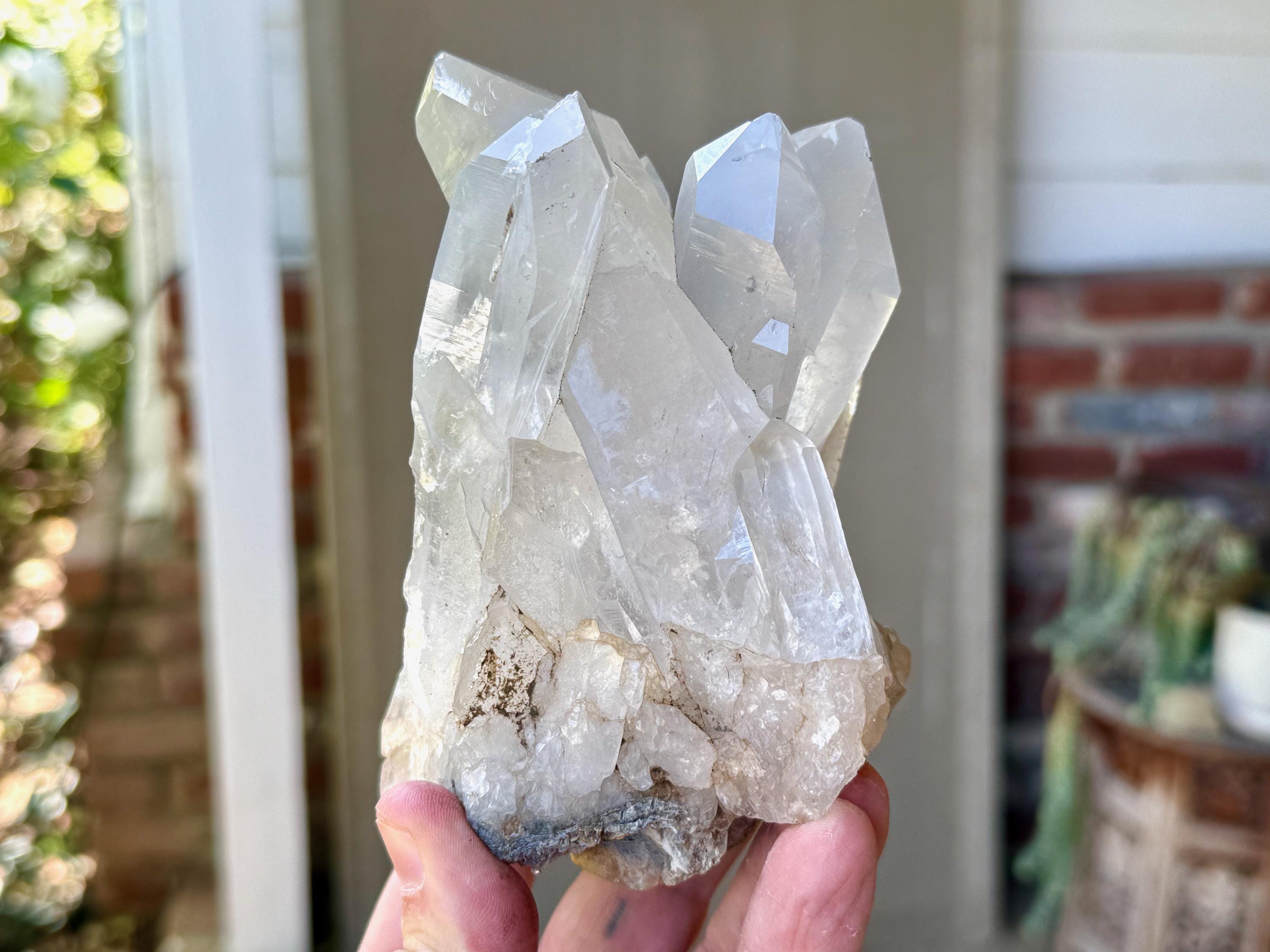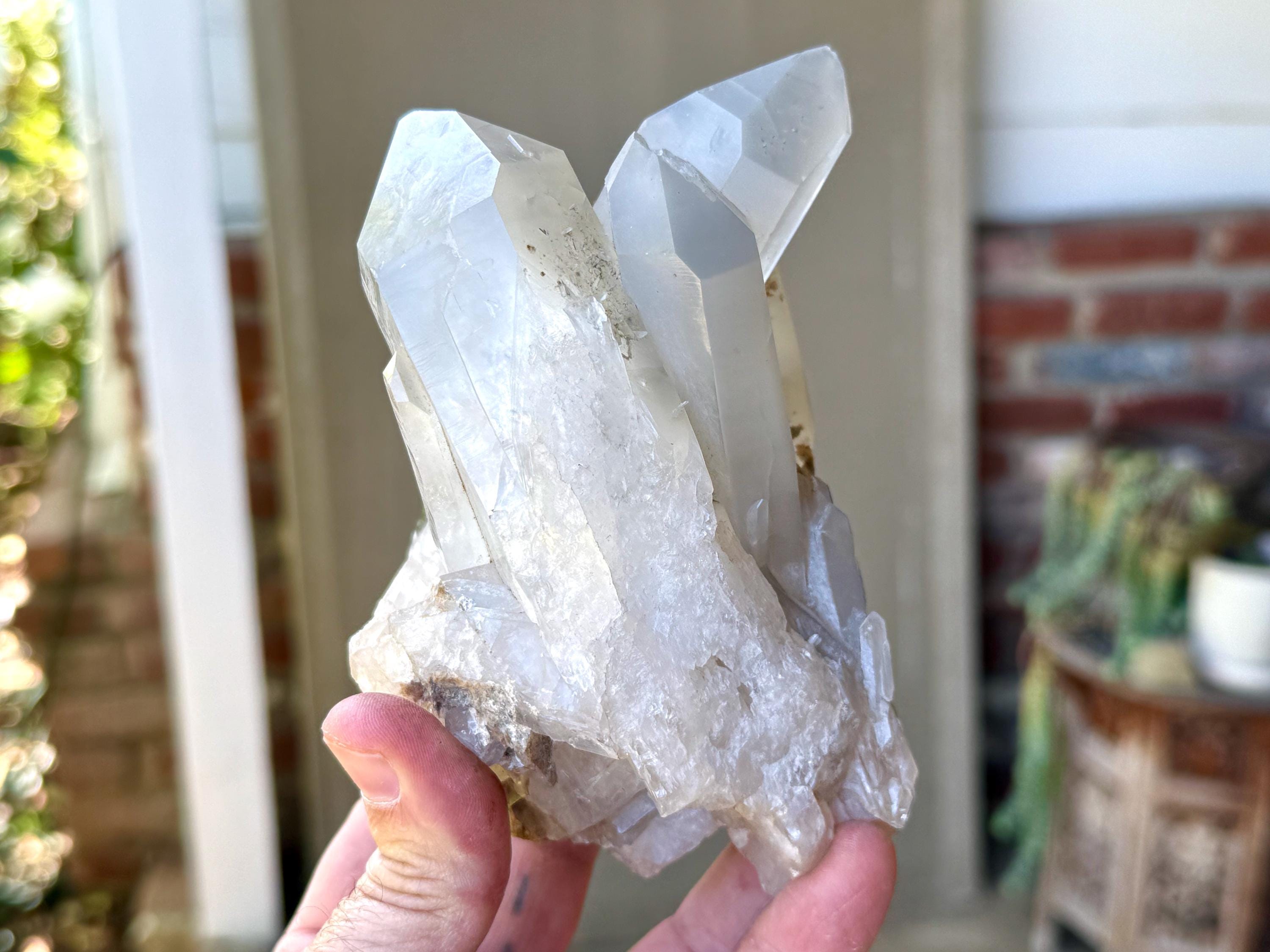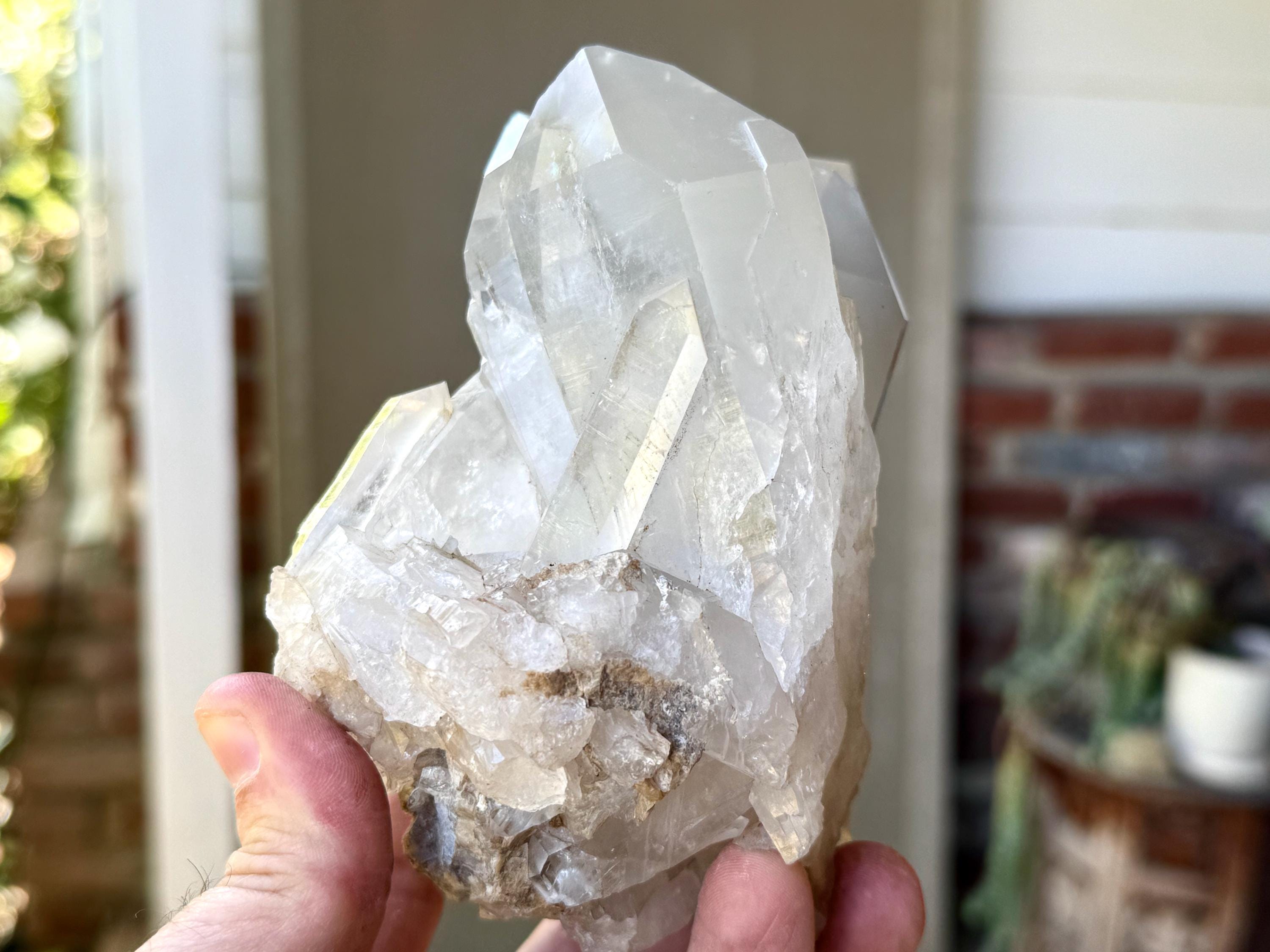 The formation is quite extraordinary and aesthetically beautiful, with several large Quartz crystals seemingly embracing one another. Again, the complexion is mildly milky, mildly hazy and very lustrous, with some hints of Green Chlorite and Mica in the base. The terminations on this piece are excellent. It's an extraordinary piece from this collection.