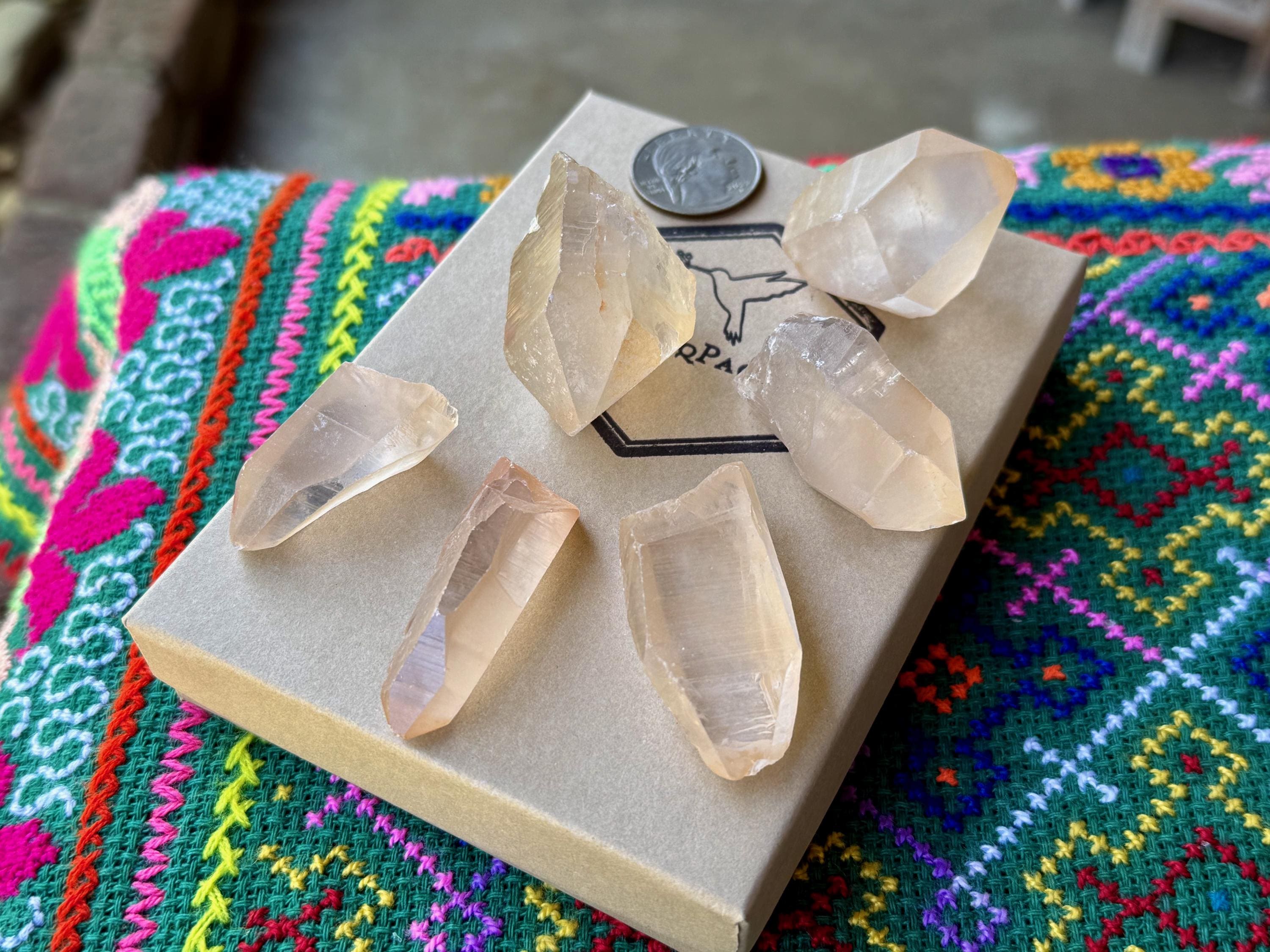 This lot of Tangerine Lemurian Quartz crystals comes from the Serra do Cabral Mountains, Minas Gerais, Brazil. Tangerine Quartz is a wonderful crystal for working with issues of the self: understanding, acceptance and growth.