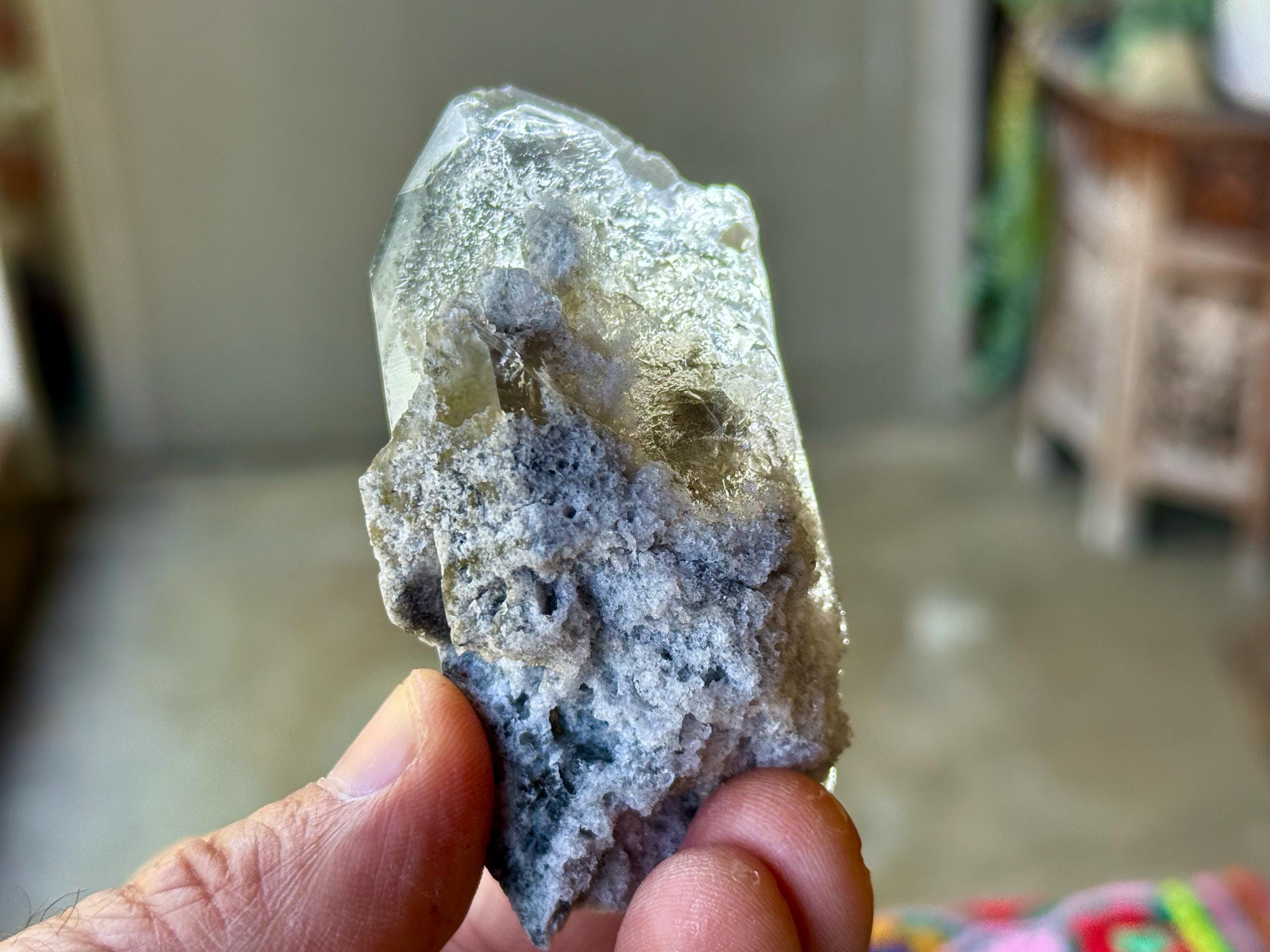 The crystals from this find are Lemurian hybrids with black inclusions of a carbon and plant-matter substance called Anthraxolite (though it's more often simply referred to as "Carbon"), a powerful mineral used for detoxification and healing past traumas. However, the "Dissolution" formations of these crystals are what make them most striking, exhibiting exquisite hydrothermal etchings, crevices and rounded edges. These rare formations occur in the late stages of their development when a hydrothermal solution at their source comes through the Earth (in the form of very hot, mineralized water most likely) and, over the course of time, actually pulls molecules away, creating these beautiful forms. So these were essentially carved by underground water flow over millions of years!