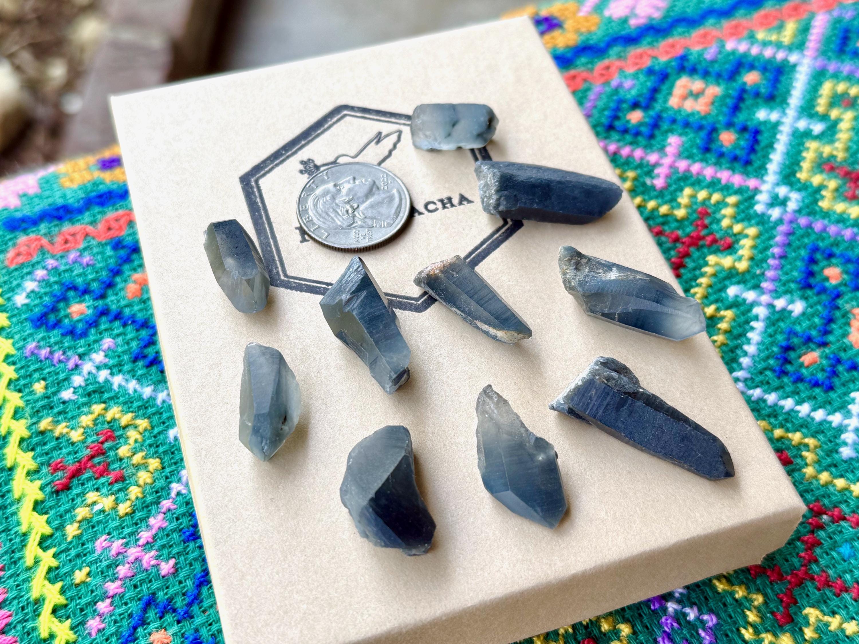 This lot of TEN Blue Tara Nightshade Quartz crystals comes from a 2024 find in Itacambira, Minas Gerais, Brazil.