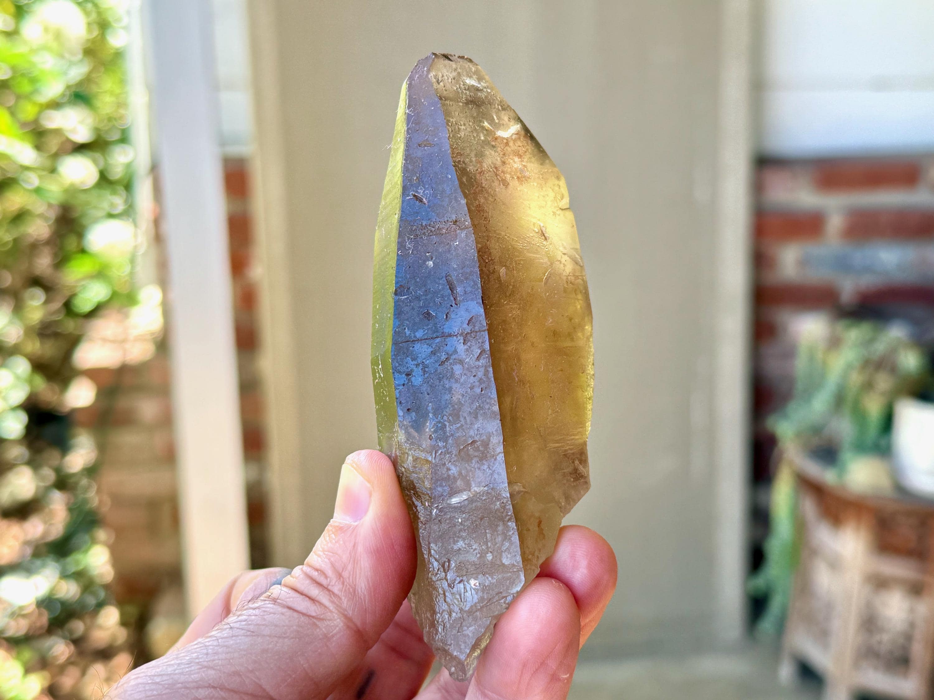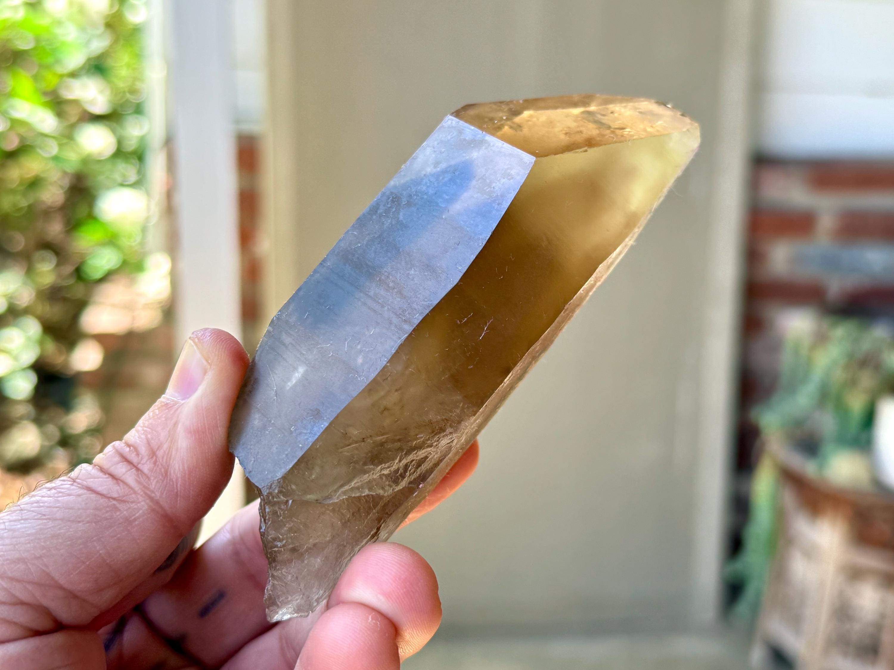This natural Pele’s Dream Lemurian Citrine comes from a recent (2025) find in Cristalina, Goiás, Brazil.