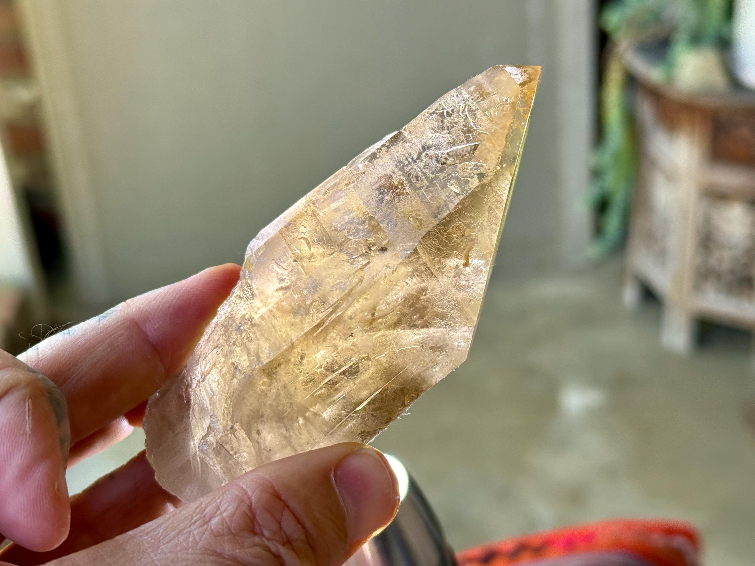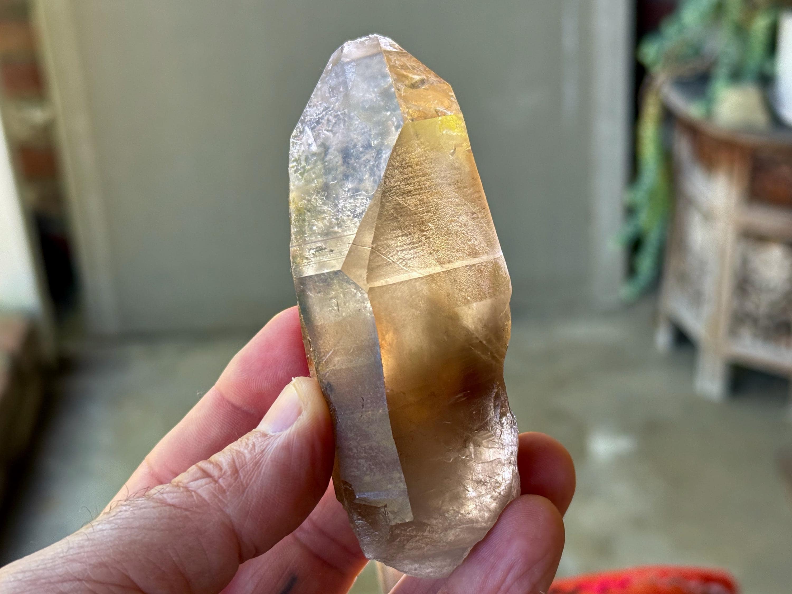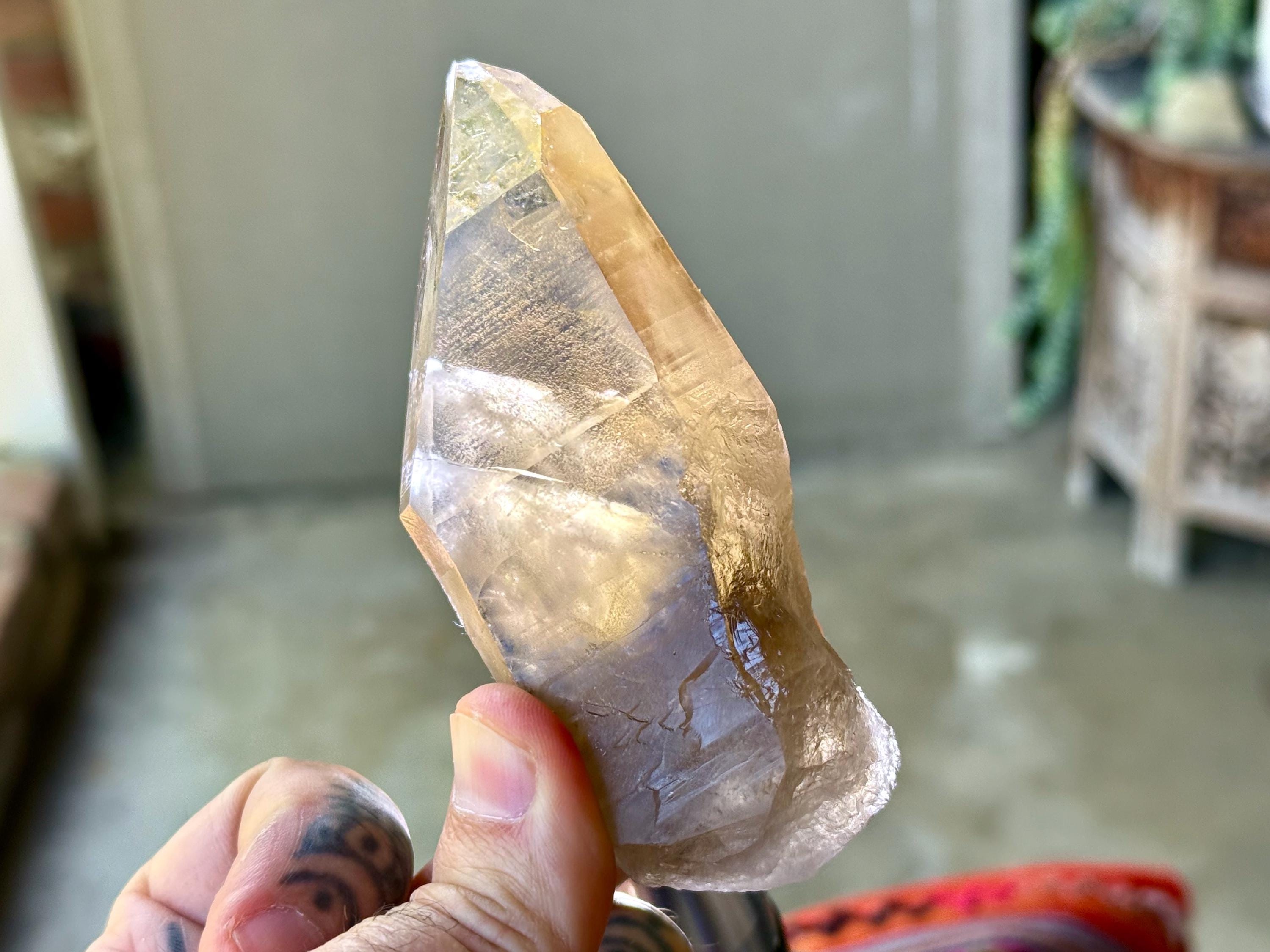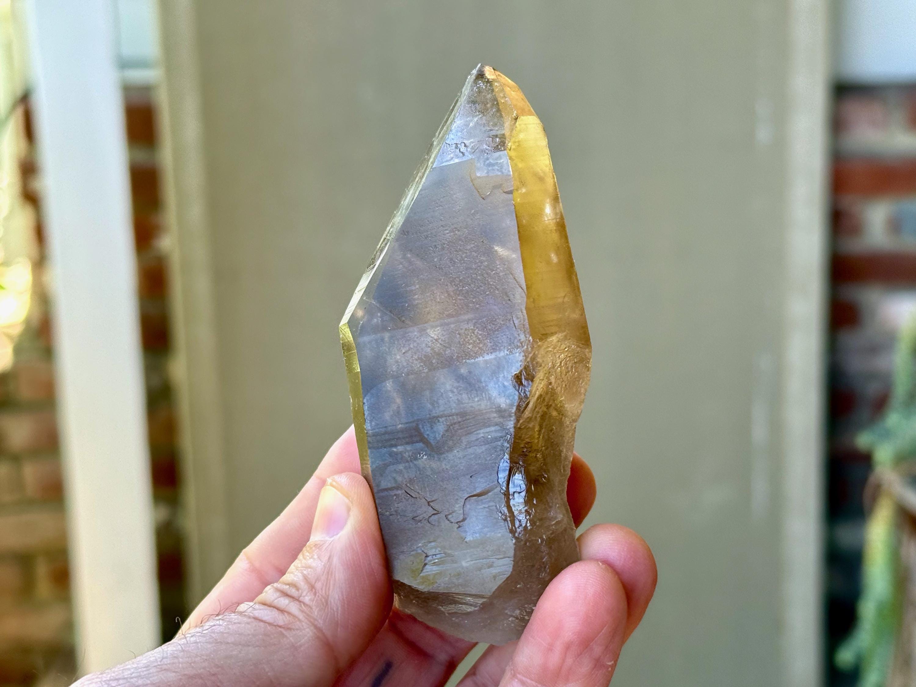 This natural Pele’s Dream Lemurian Citrine comes from a recent (2025) find in Cristalina, Goiás, Brazil.