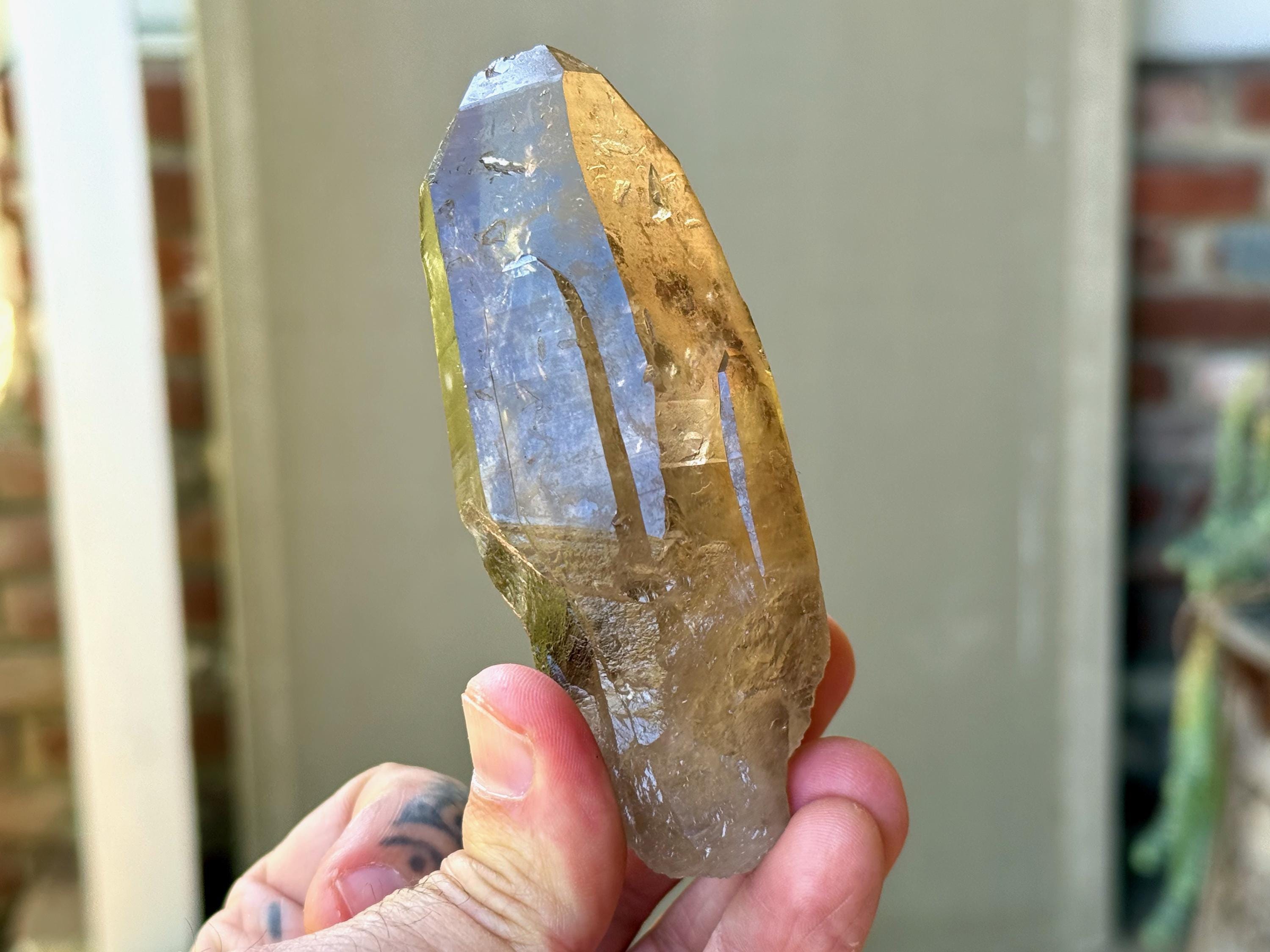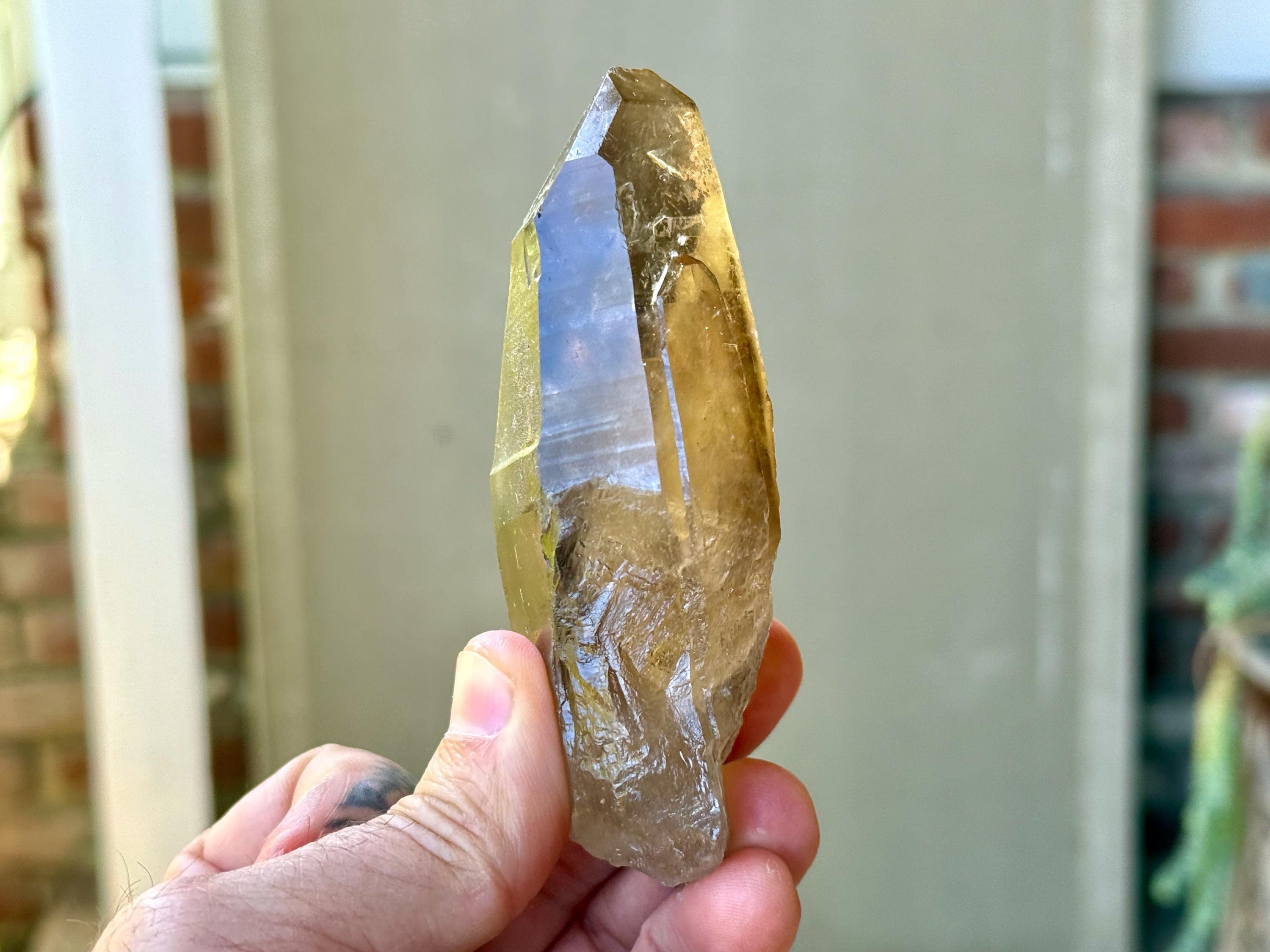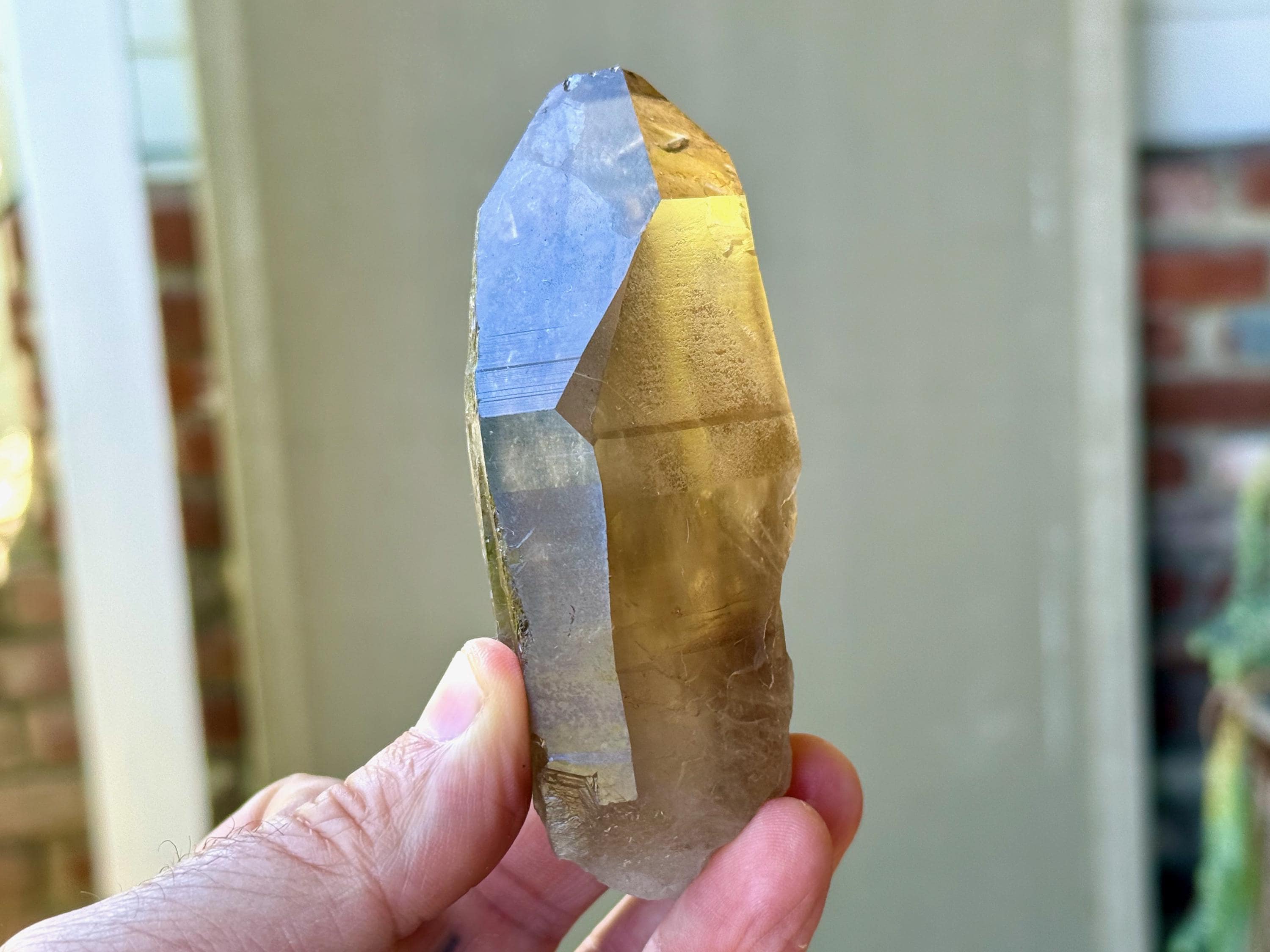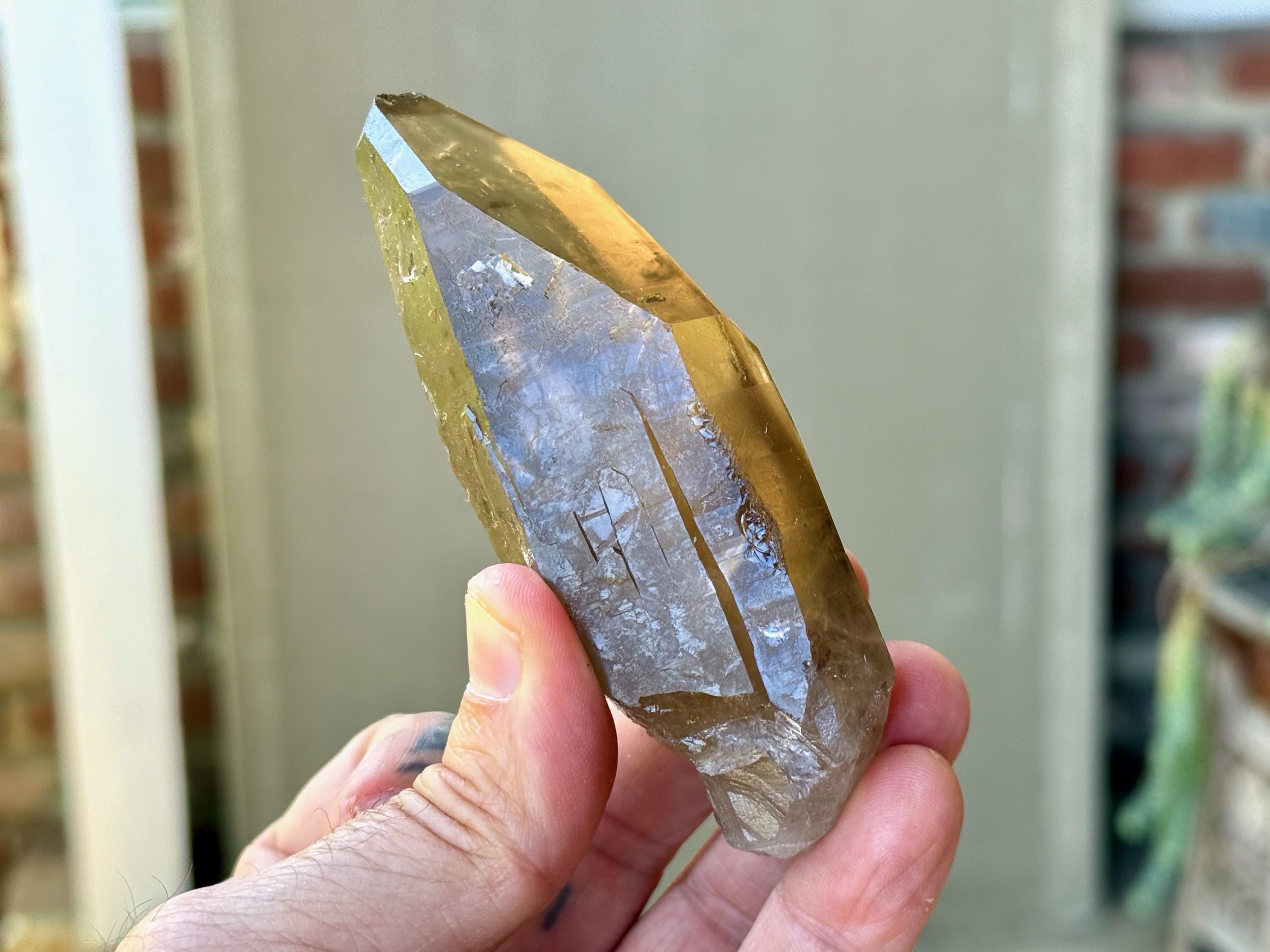 This natural Pele’s Dream Lemurian Citrine comes from a recent (2025) find in Cristalina, Goiás, Brazil.