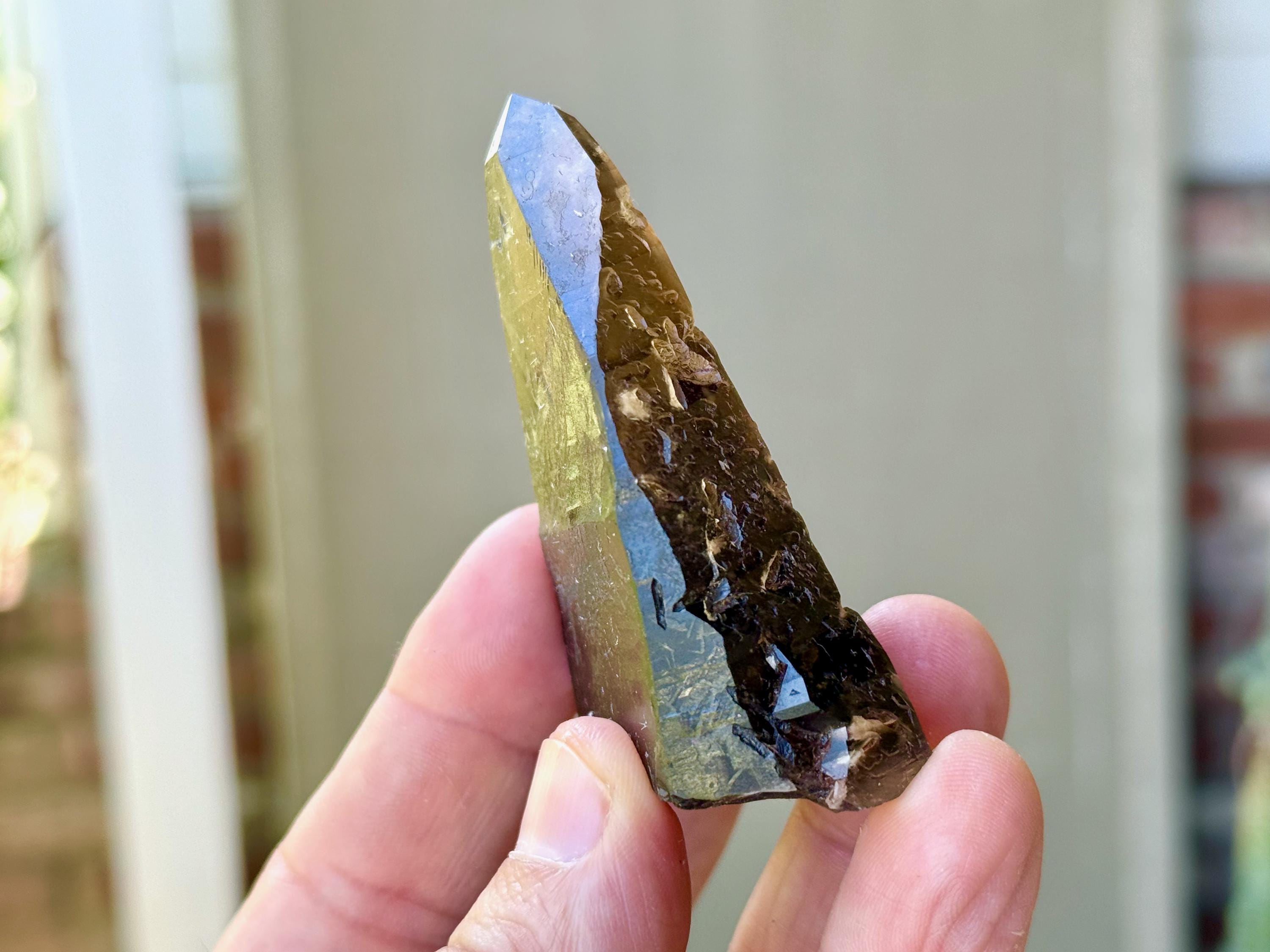 This natural Pele’s Dream Lemurian Citrine comes from a recent (2025) find in Cristalina, Goiás, Brazil.
