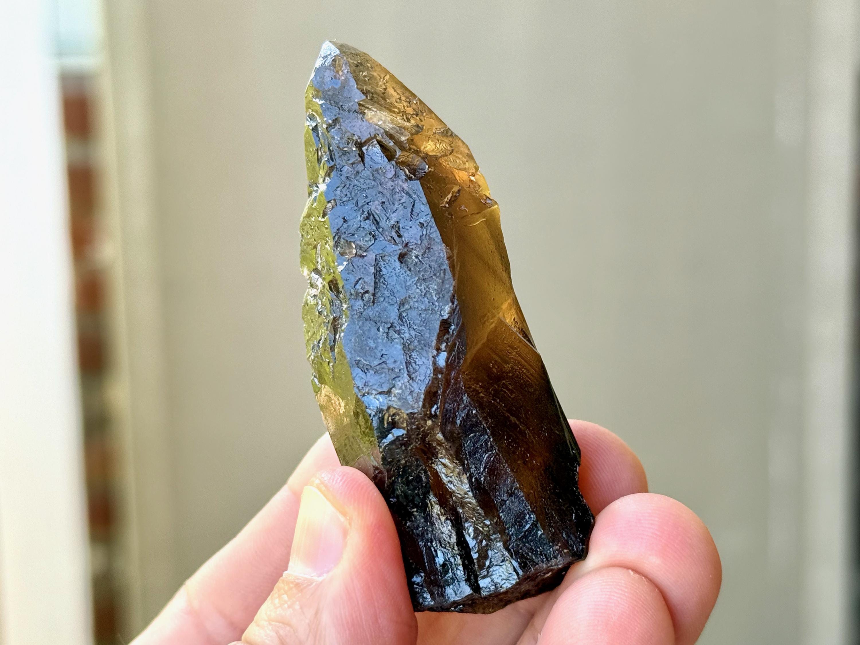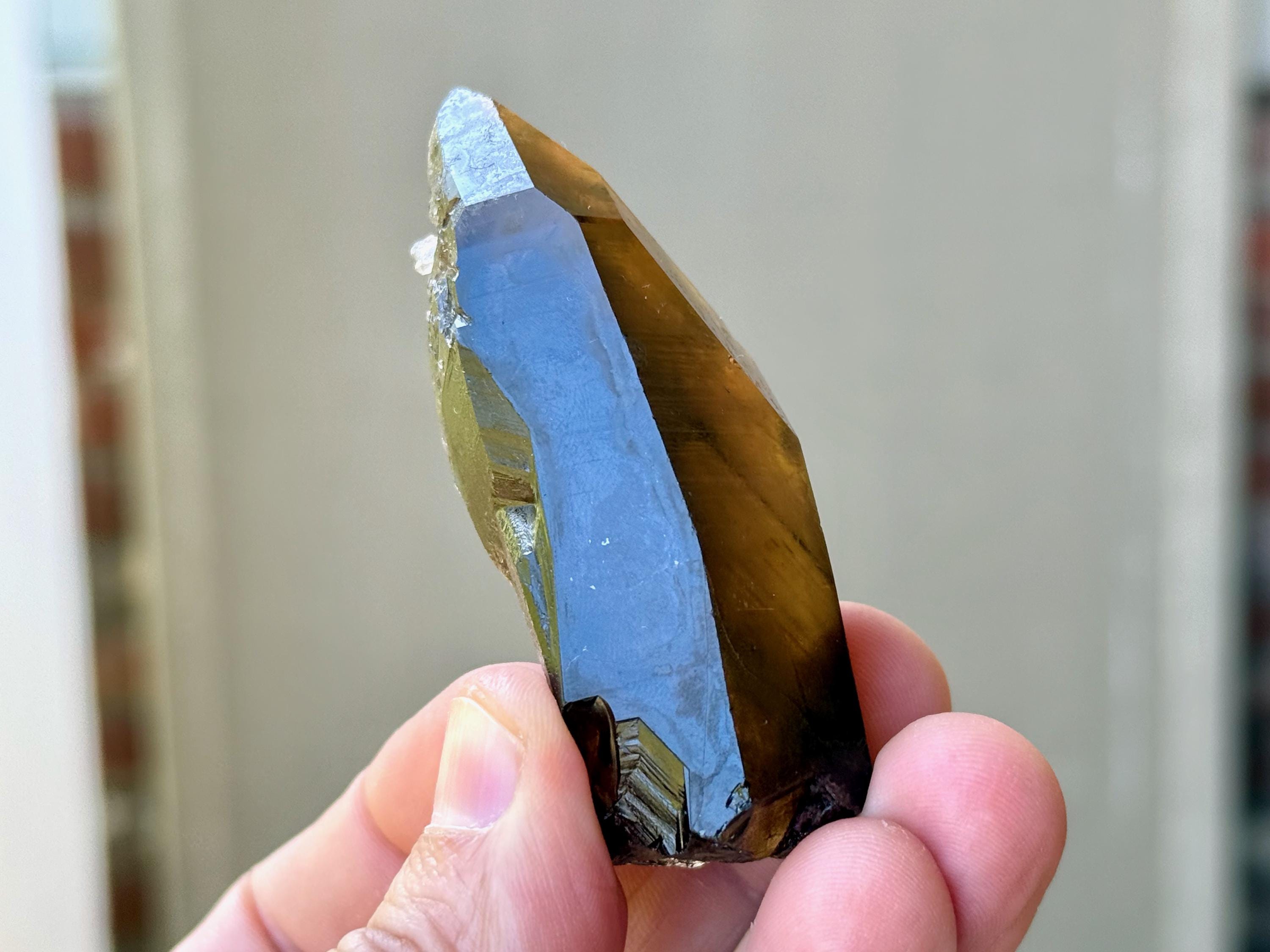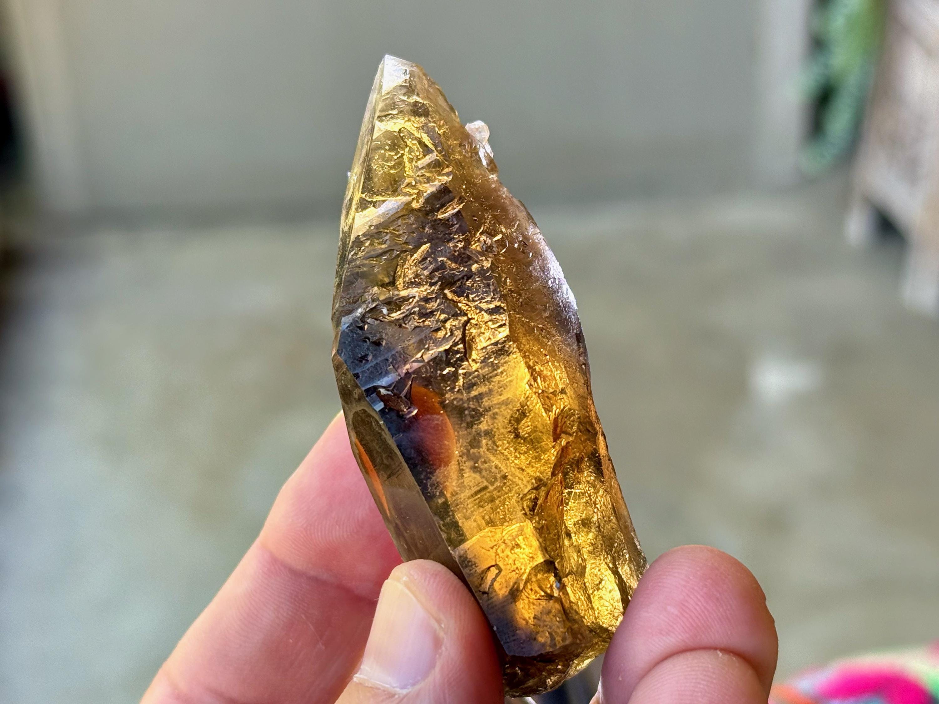 This natural Pele’s Dream Lemurian Citrine comes from a recent (2025) find in Cristalina, Goiás, Brazil.