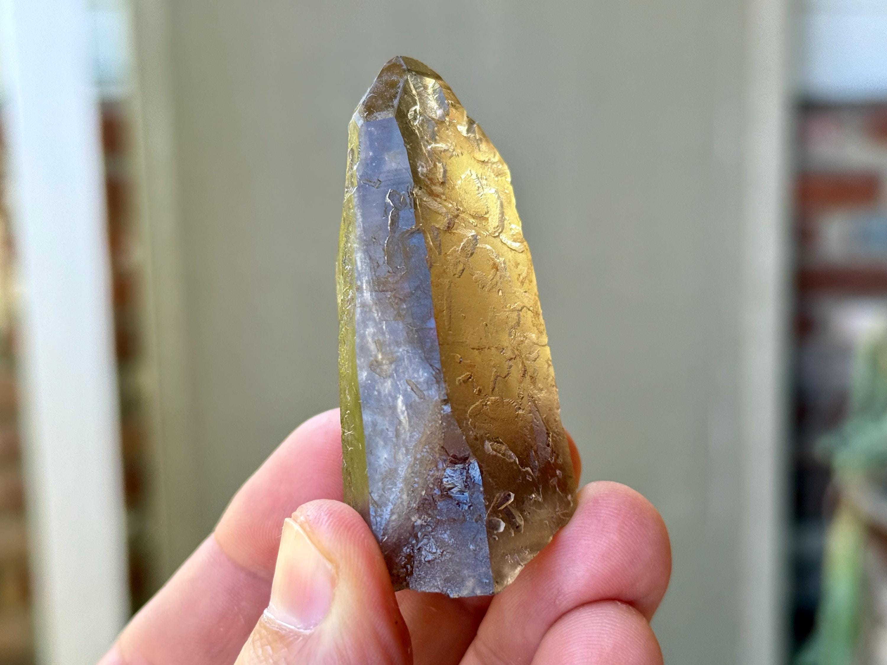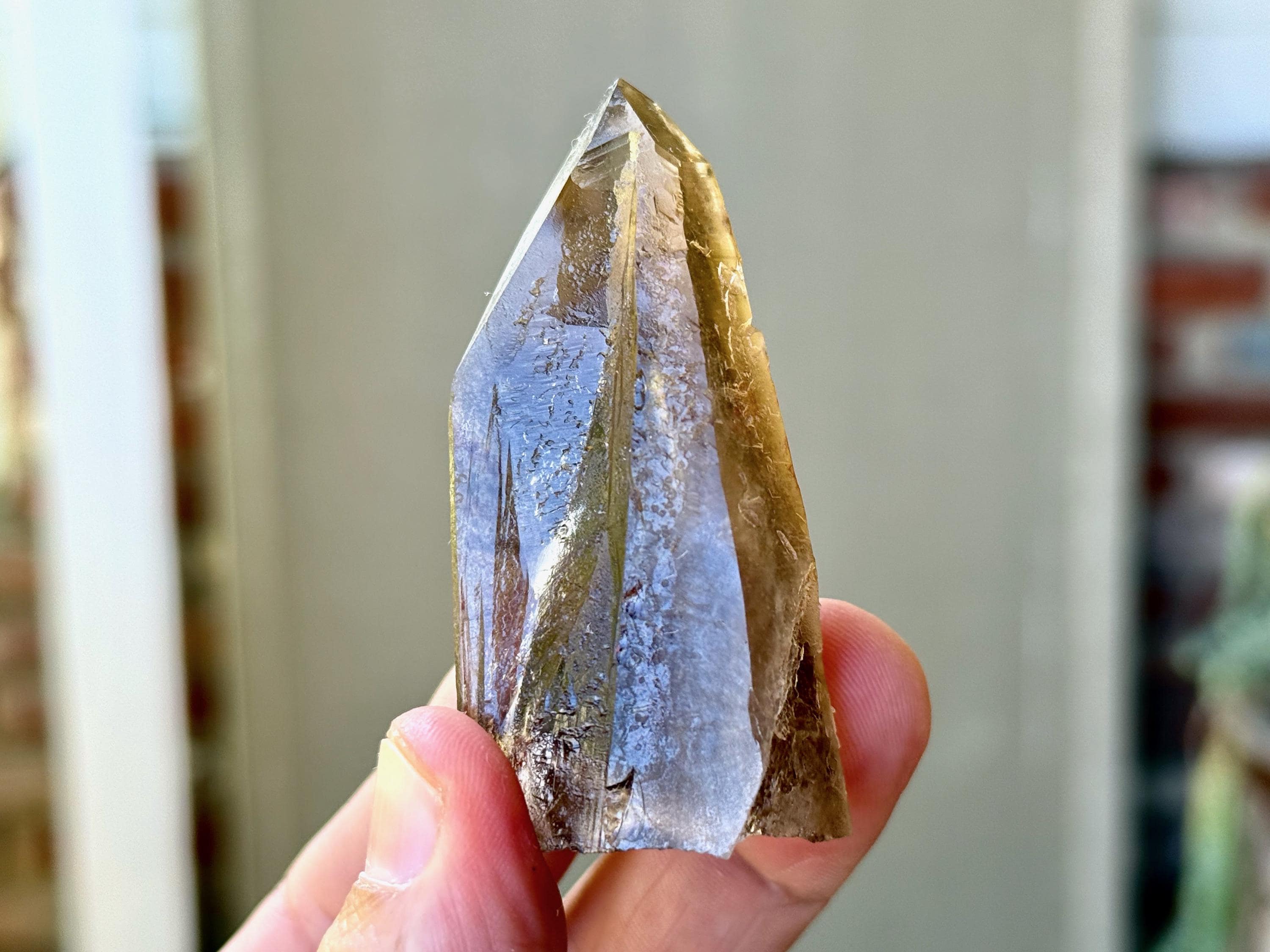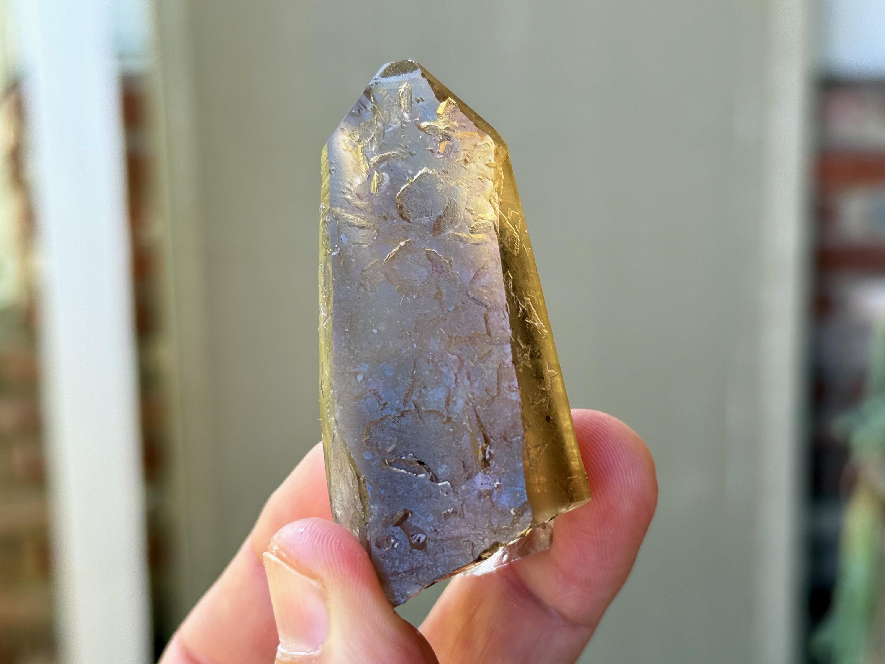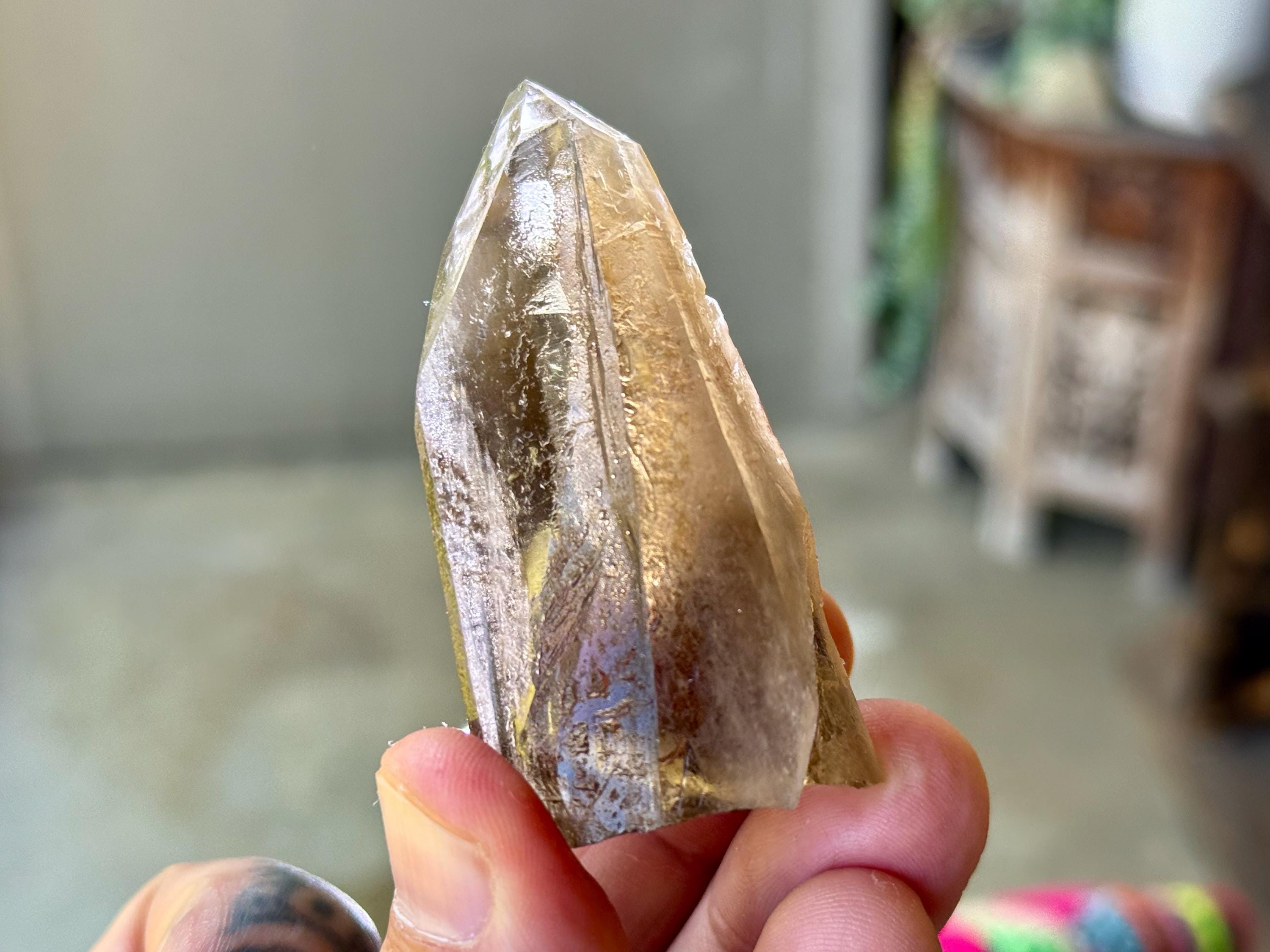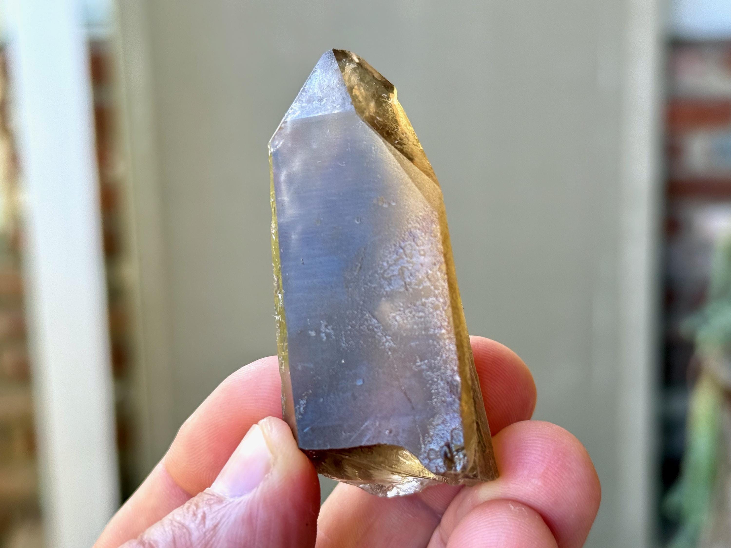 This natural Pele’s Dream Lemurian Citrine comes from a recent (2025) find in Cristalina, Goiás, Brazil.