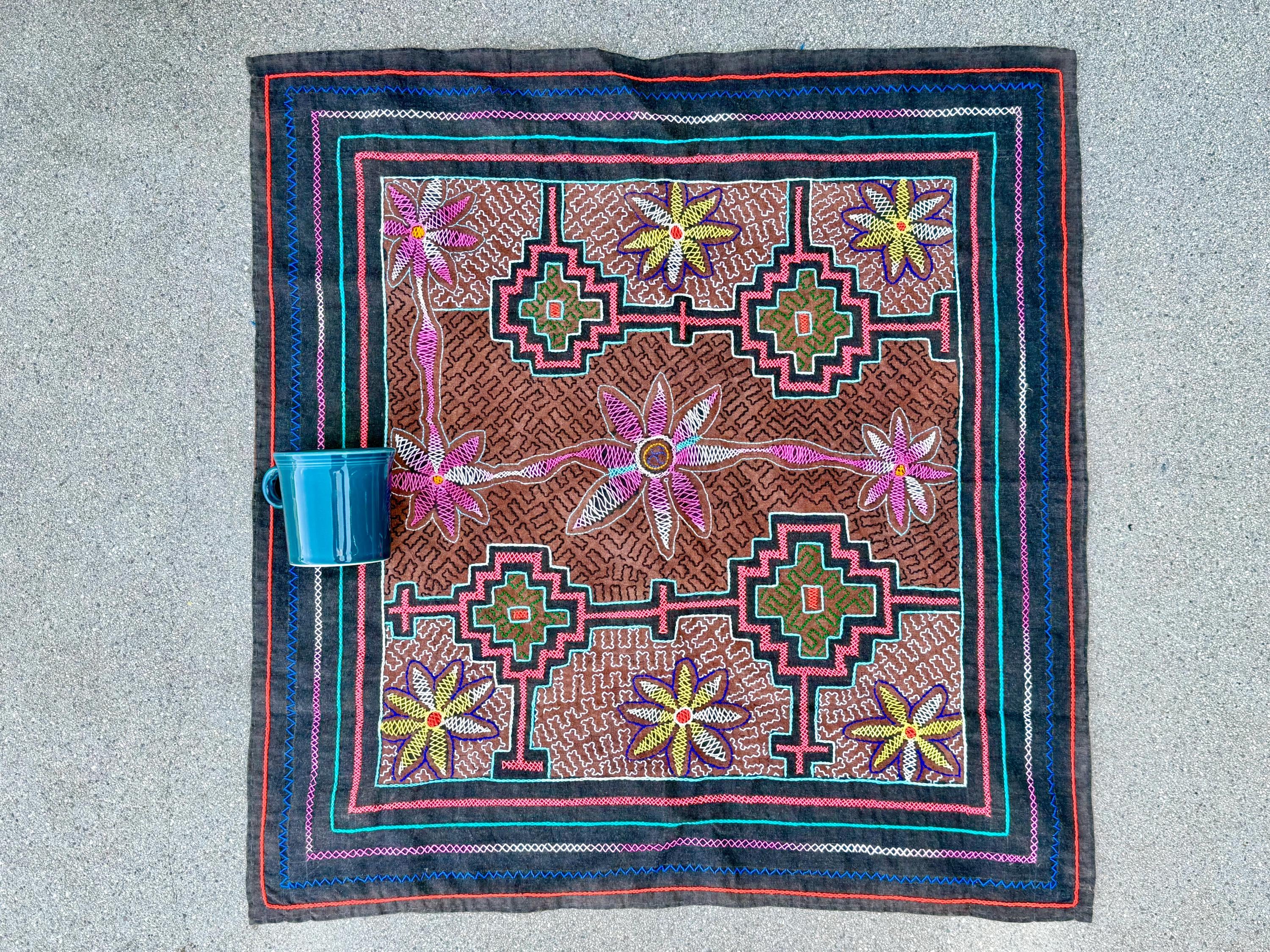 This Shipibo manta cloth was hand-embroidered by the wonderful Peruvian artisan Isabel Franquines in Pucallpa, Peru.