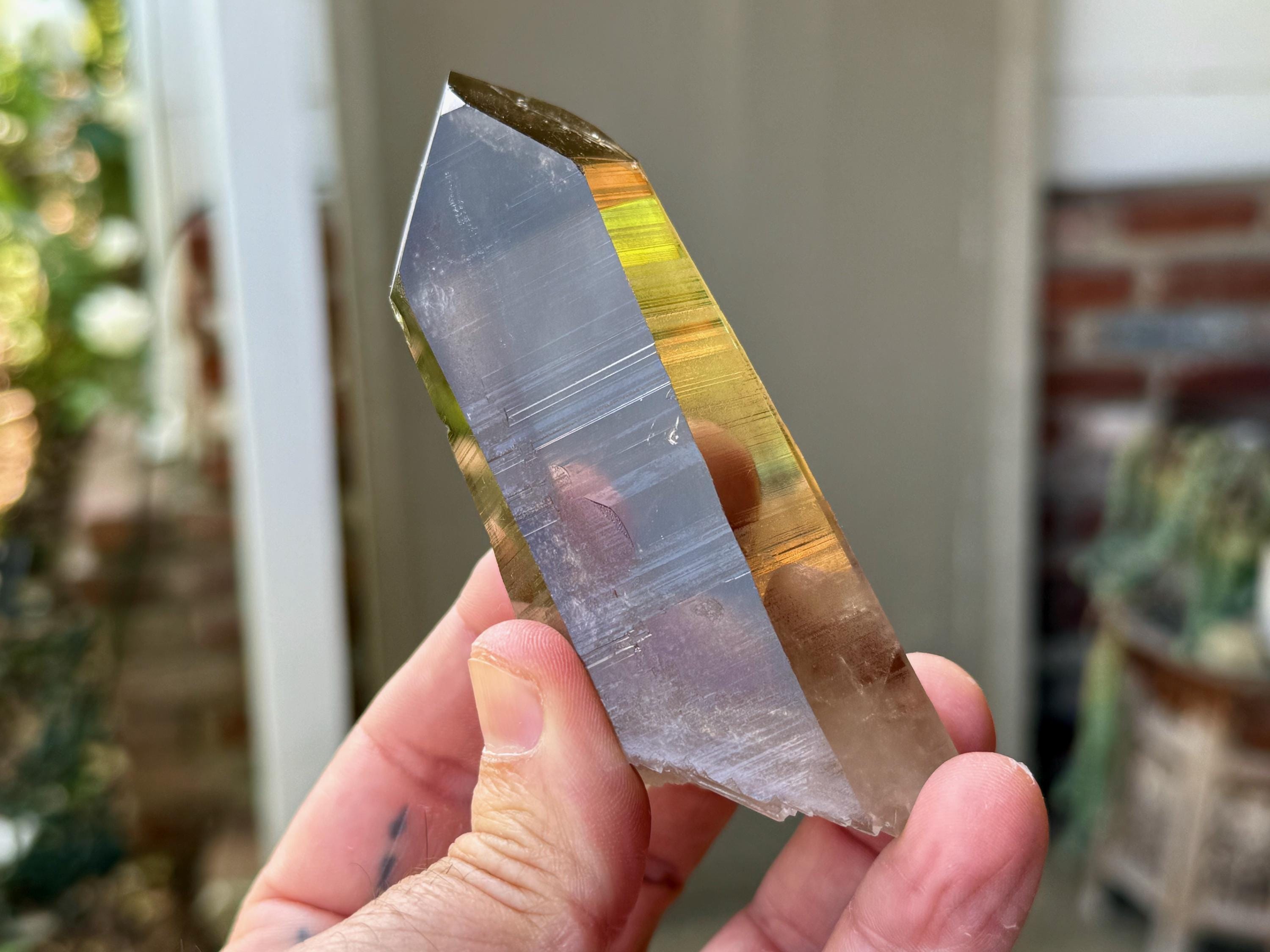 *Please note that the main facets of this crystal have been buff polished. This is done at the source for aesthetic purposes and to enable better viewing of the Blue Needle inclusions.
