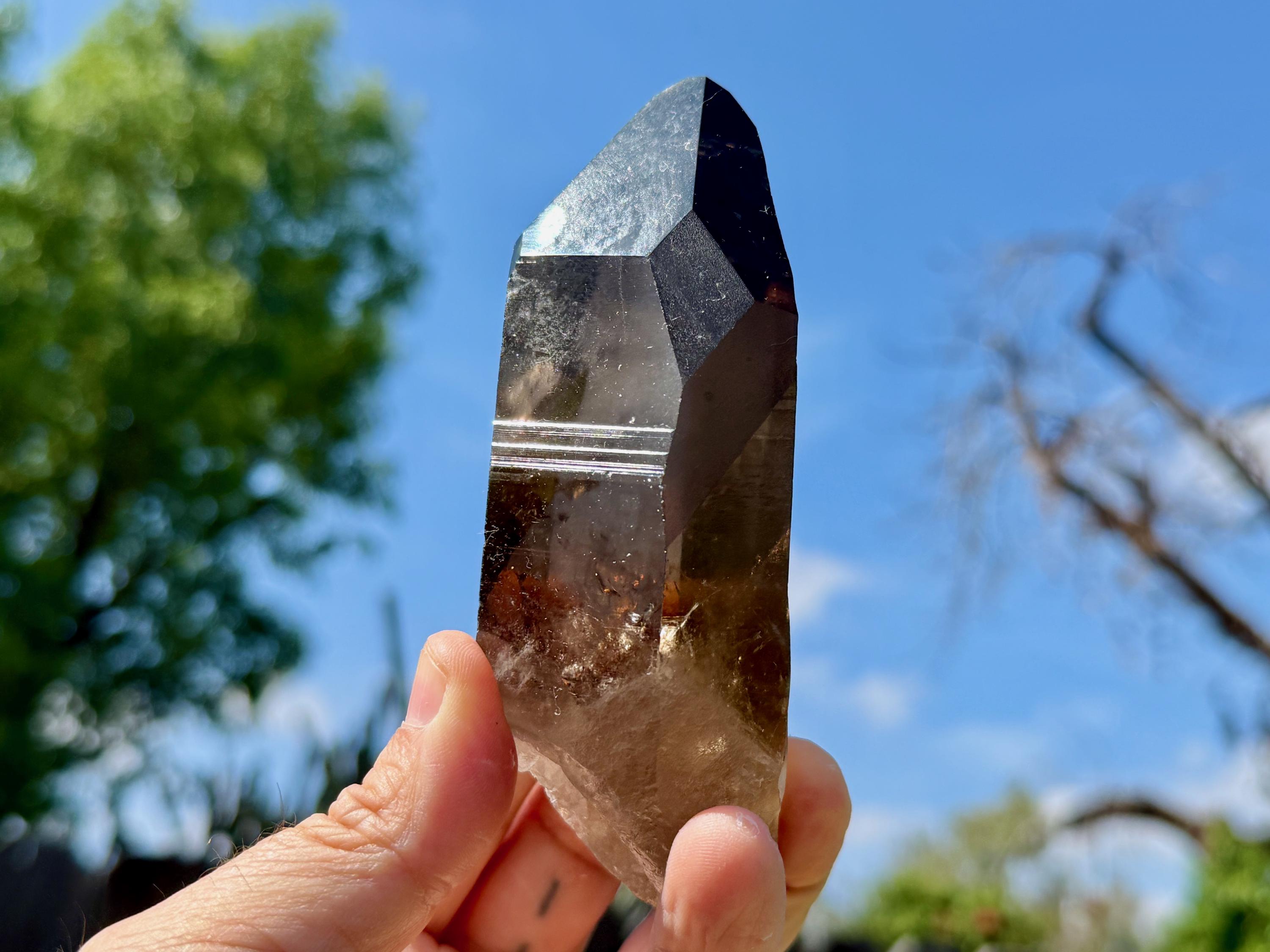 *Please note that the main facets of this crystal have been buff polished. This is done at the source for aesthetic purposes and to enable better viewing of the Blue Needle inclusions.