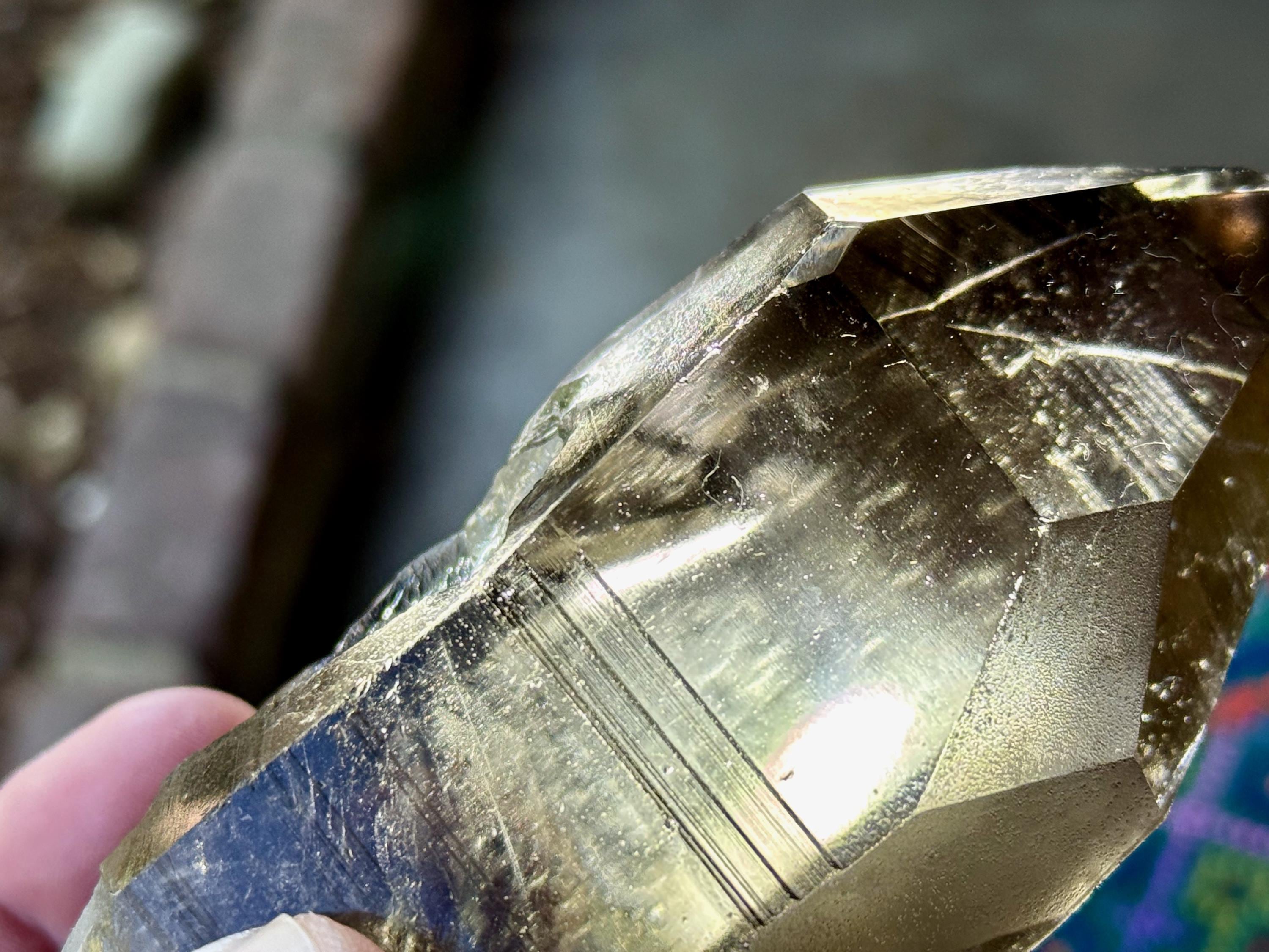 **PLEASE NOTE it can be a challenge to find the right angle and lighting for these "blue needles" to show. For these particular Smoky Lemurian crystals, stronger light is not necessarily better, catching the right angle is most important! We recommend a very dark setting in which to enjoy them best. It may take some time, but we promise they are there. Please use our photos as a guide in how to locate the angle of the light to best locate them. It took us several tries in some cases to capture them properly on camera, so don't be alarmed or frustrated if you are not able to find them immediately.