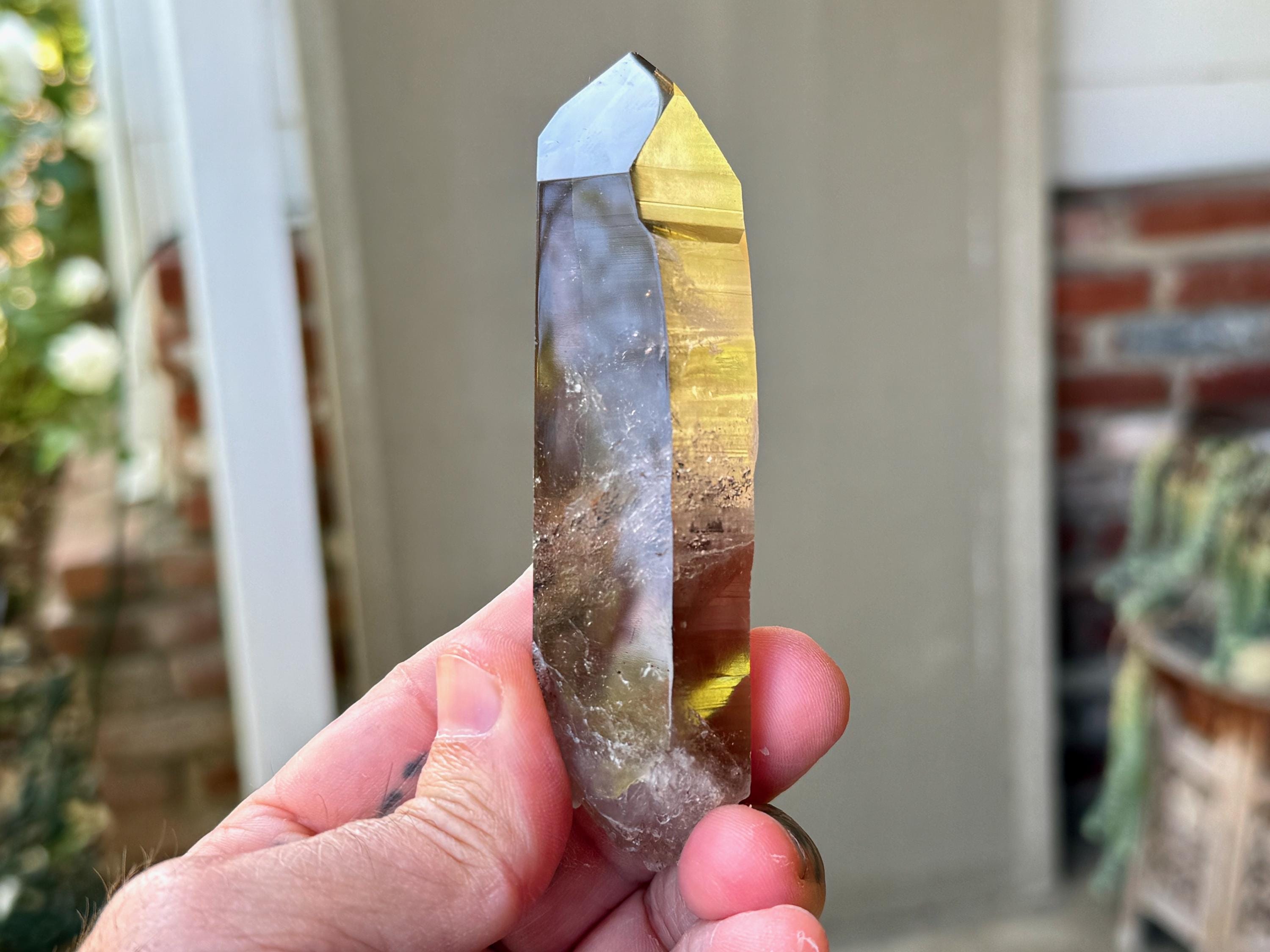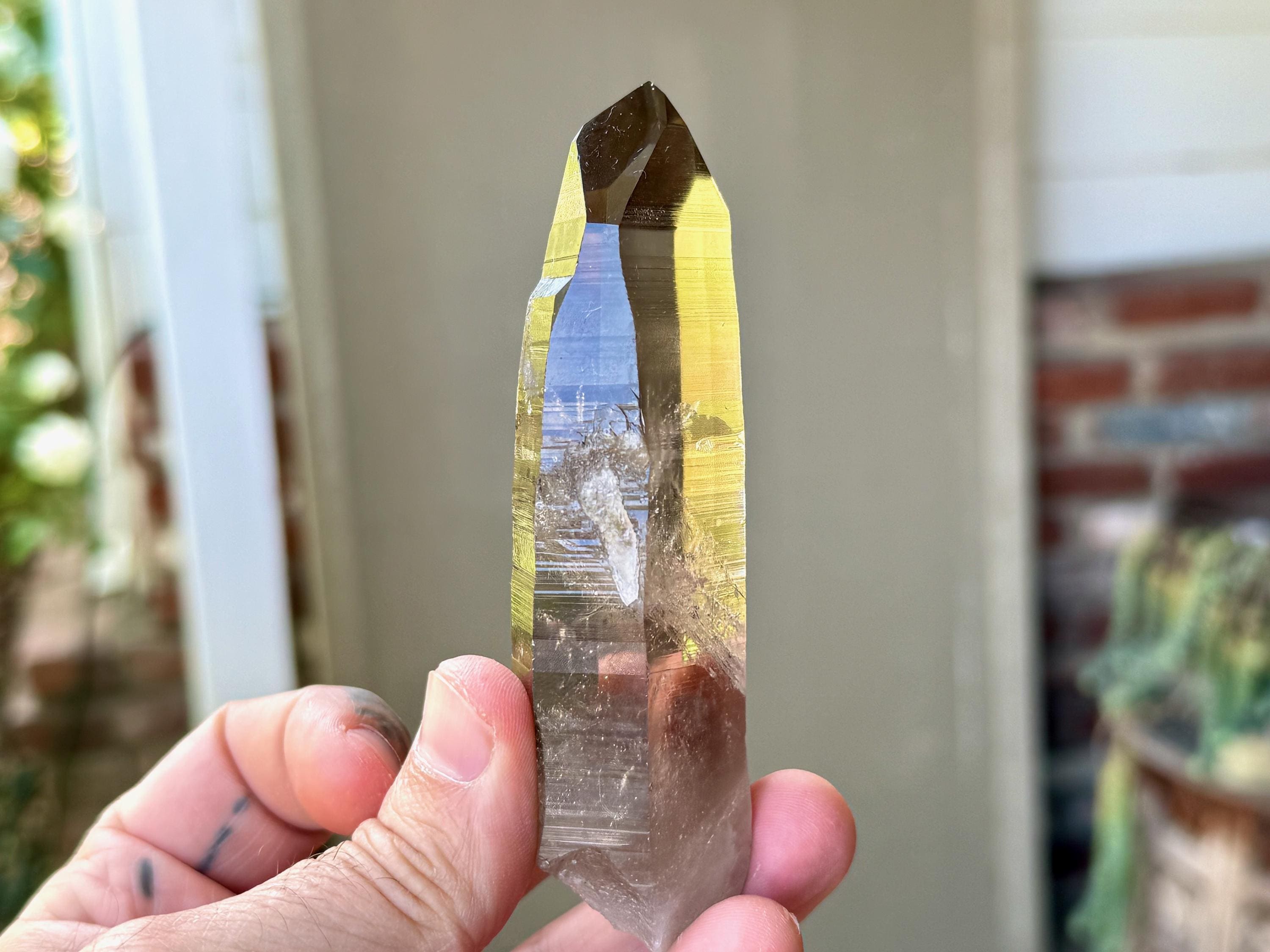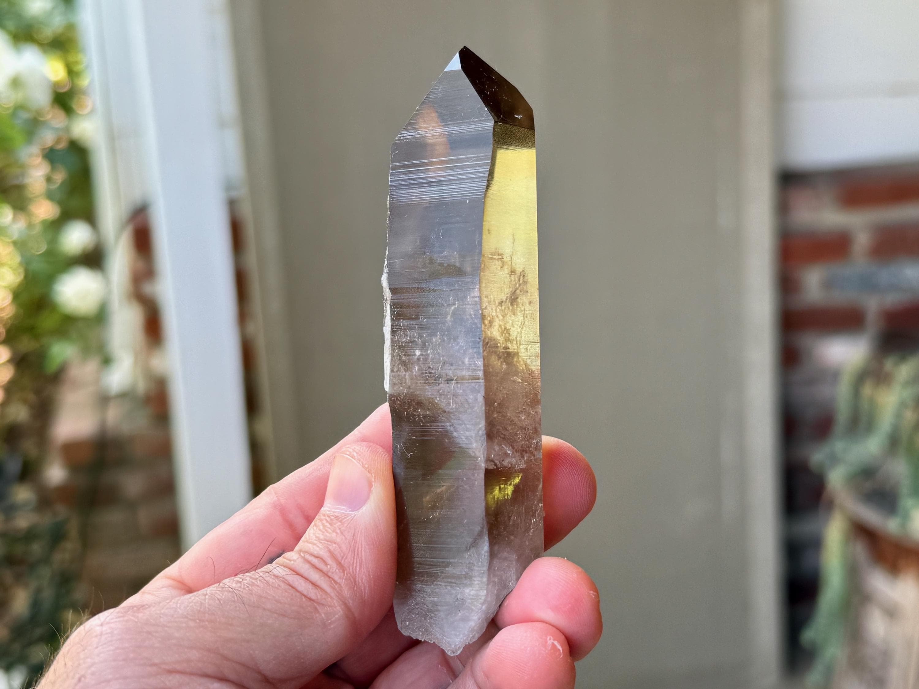 Perhaps the best piece from this collection so far, this Blue Needle Smoky Lemurian possesses a handsome, elongated formation, with superb clarity, brilliant luster and nicely defined striations on its sides. The base is actually self-healed, making this a Double Terminated crystal (Photo 9).