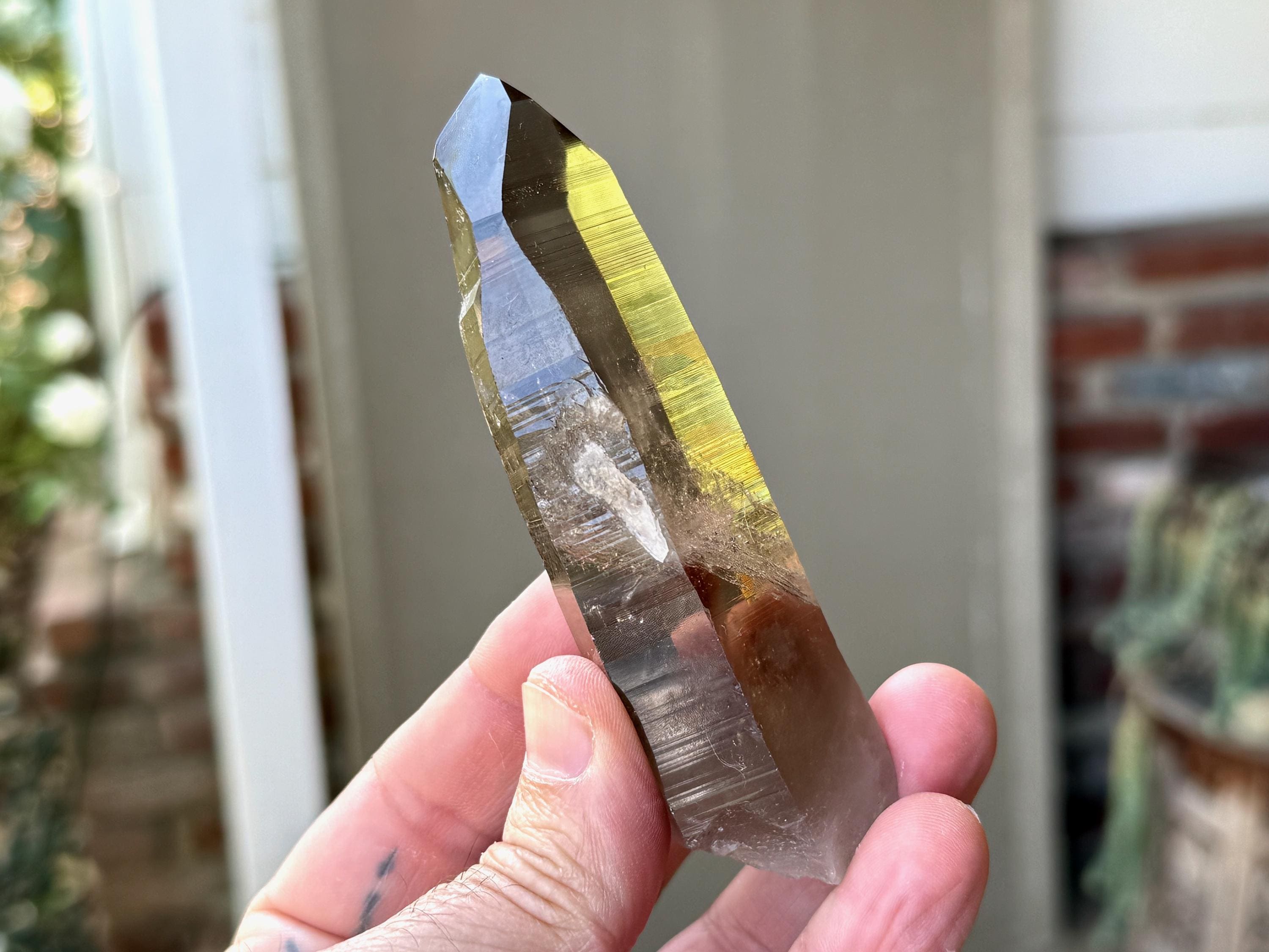 **PLEASE NOTE it can be a challenge to find the right angle and lighting for these "blue needles" to show. For these particular Smoky Lemurian crystals, stronger light is not necessarily better, catching the right angle is most important! We recommend a very dark setting in which to enjoy them best. It may take some time, but we promise they are there. Please use our photos as a guide in how to locate the angle of the light to best locate them. It took us several tries in some cases to capture them properly on camera, so don't be alarmed or frustrated if you are not able to find them immediately.