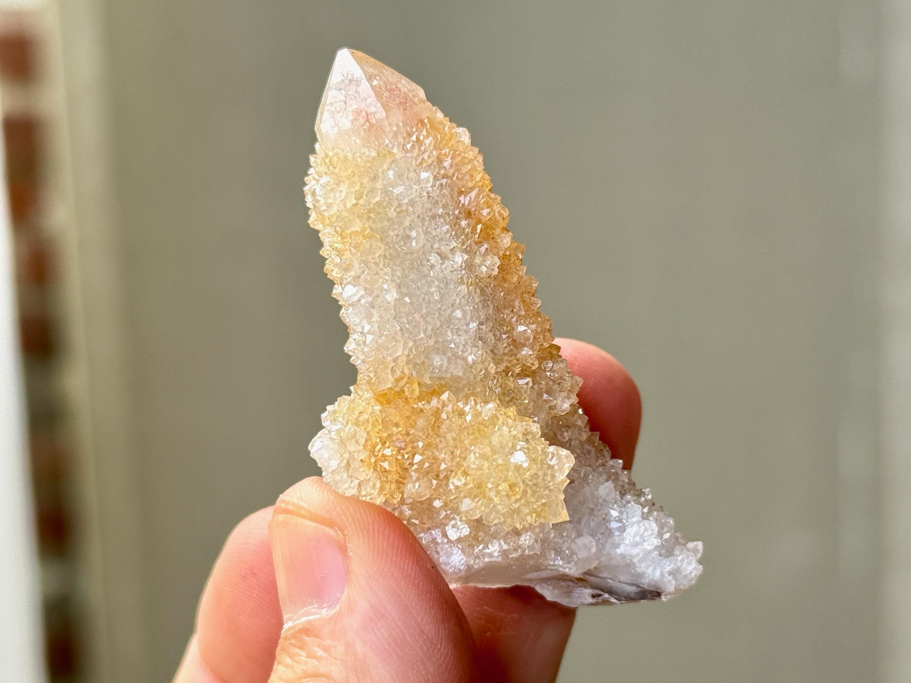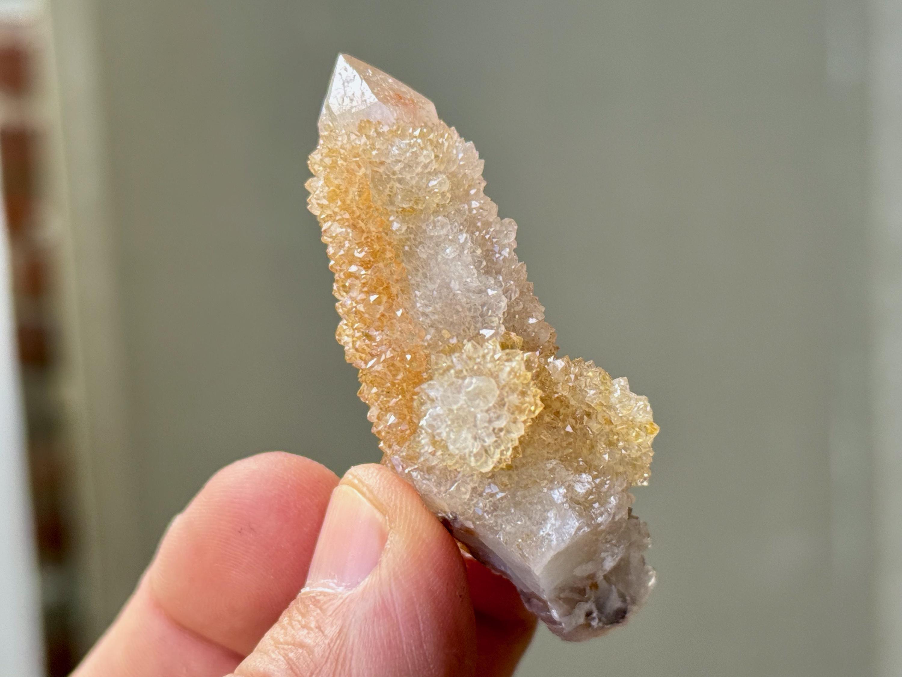 Sometimes called “Cactus Quartz” due to their unique growth pattern or even "Fairy Quartz," these ethereal crystals are entirely natural and include a combination of Quartz and Amethyst (as well as Citrine in some instances), and are characterized by tiny, druzy crystals covering the entire shaft of the primary crystal. Spirit Quartz is a crystal associated with the Crown Chakra, though it activates all chakras. It is a wonderful crystal for dream work, astral travel, protection and shamanic journeying.