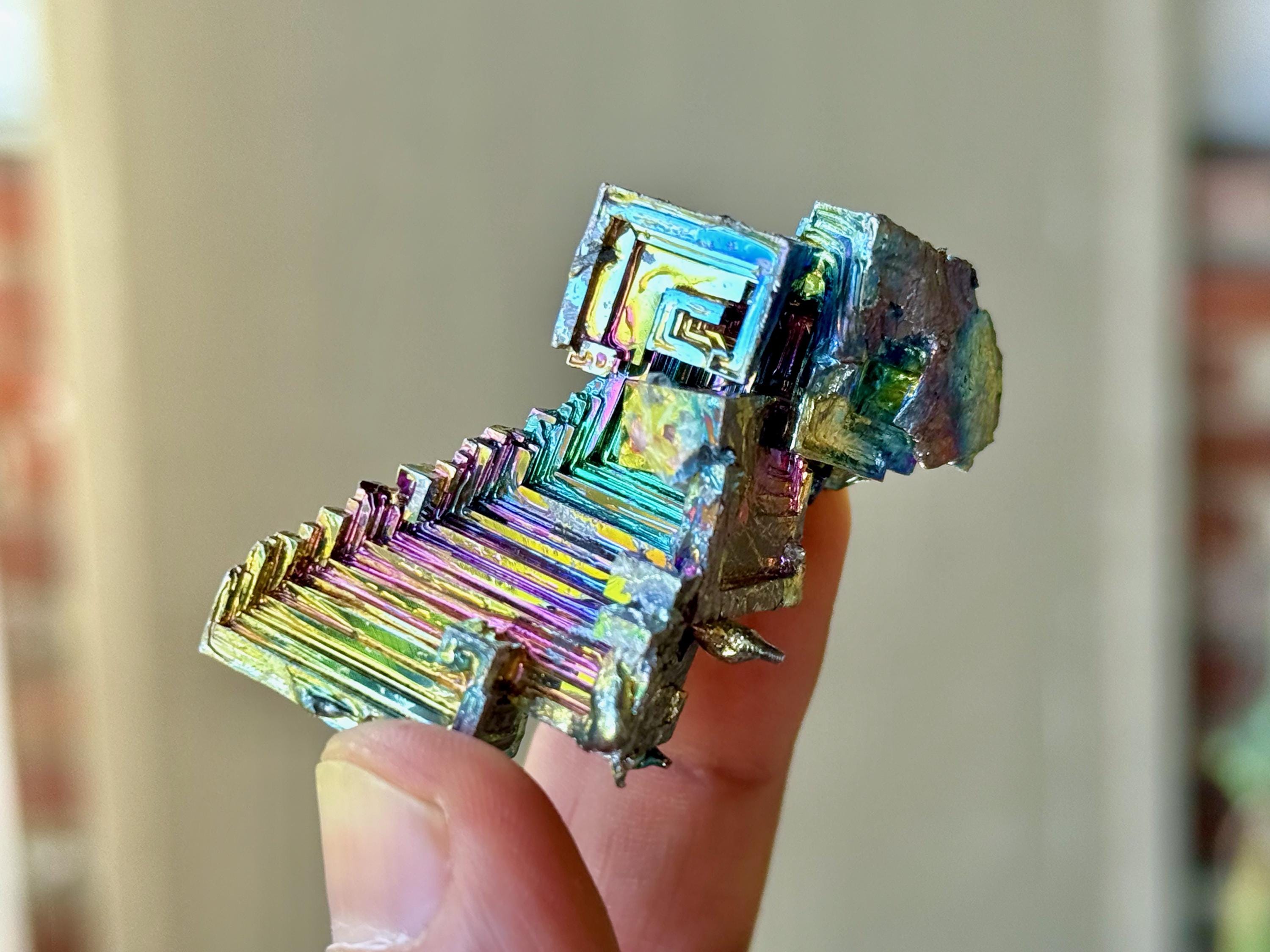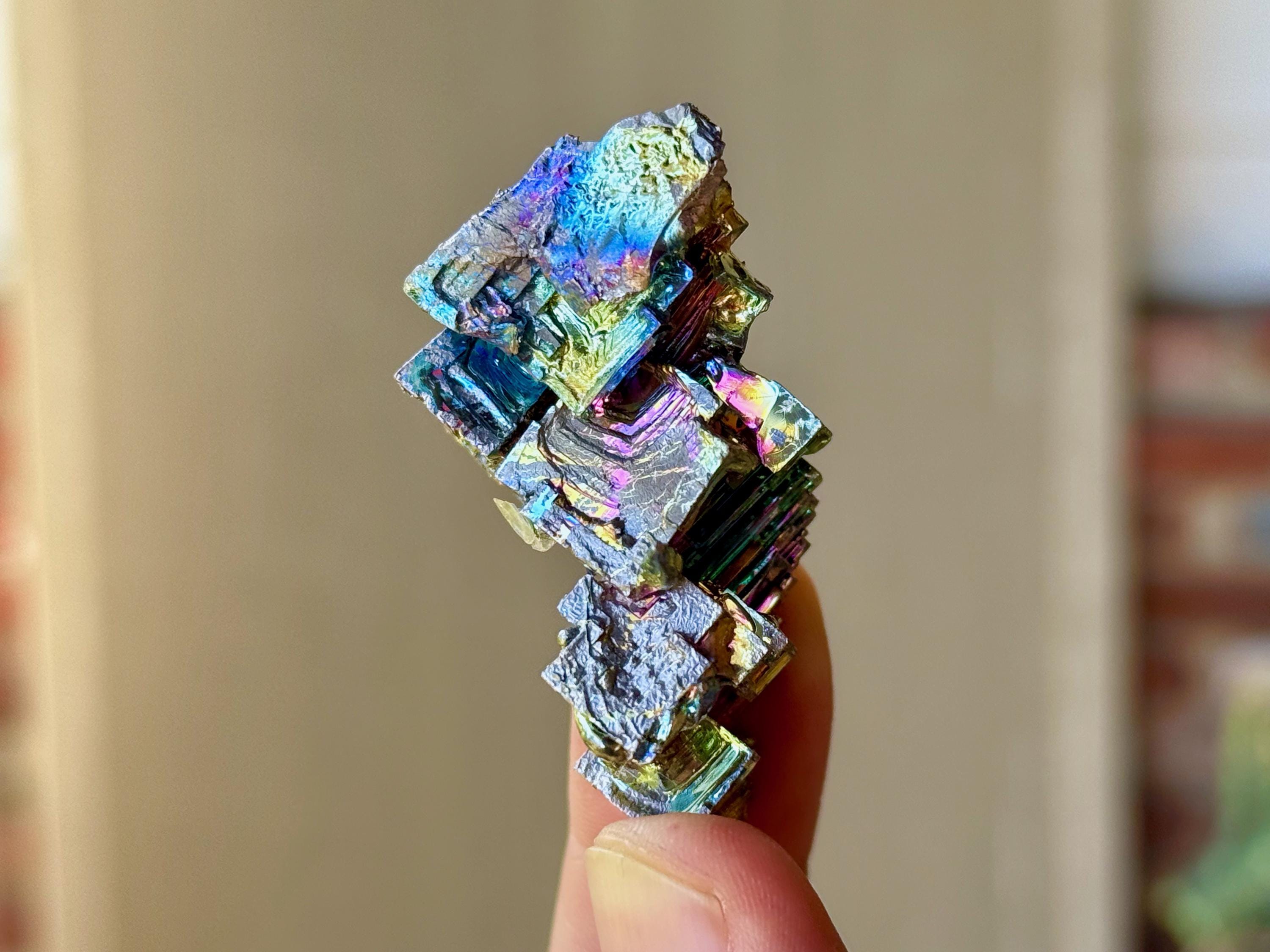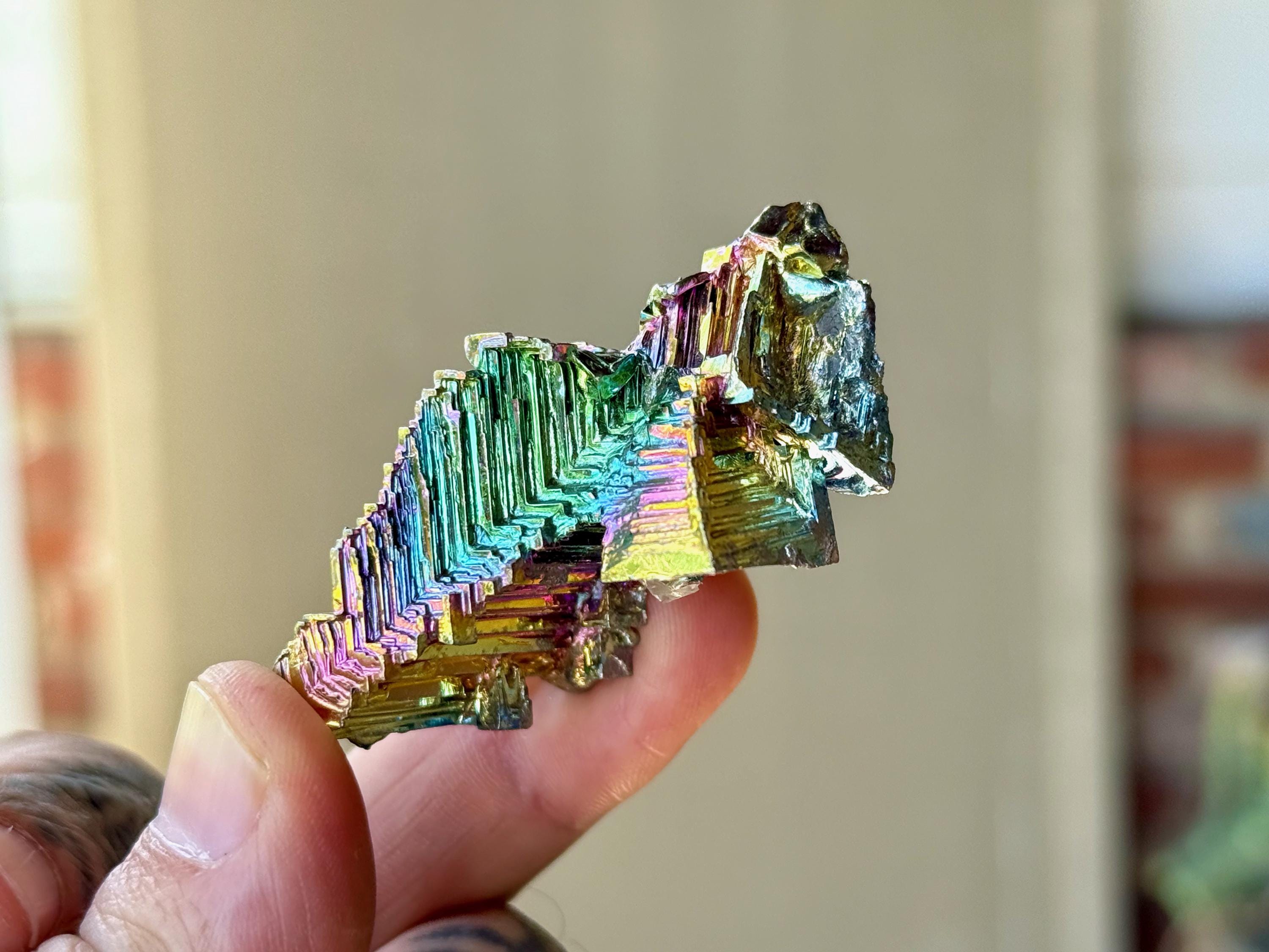 **We recommend keeping Bismuth out of direct sunlight and not handling too excessively, as over time this can accelerate oxidation that may cause the colors to fade.**