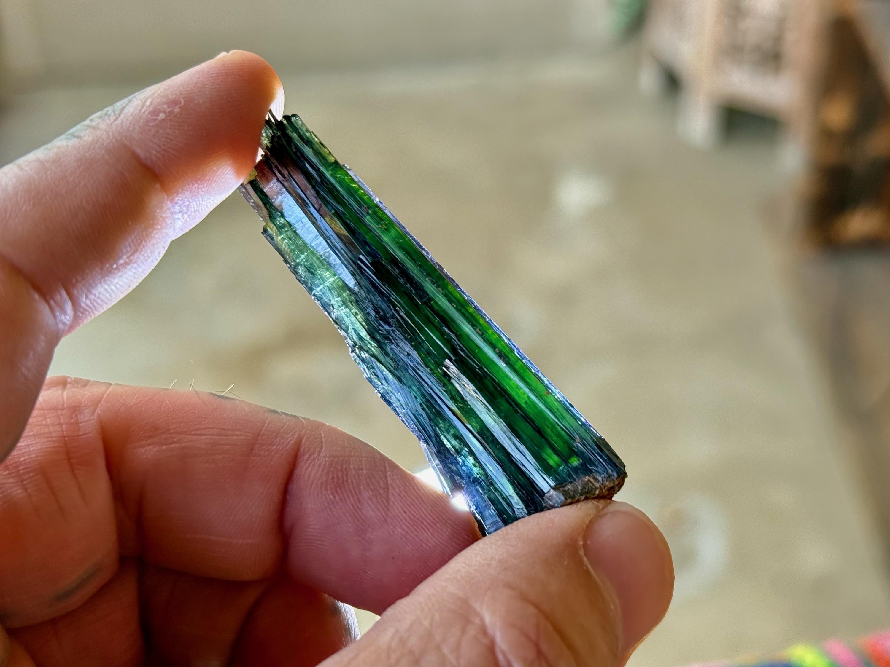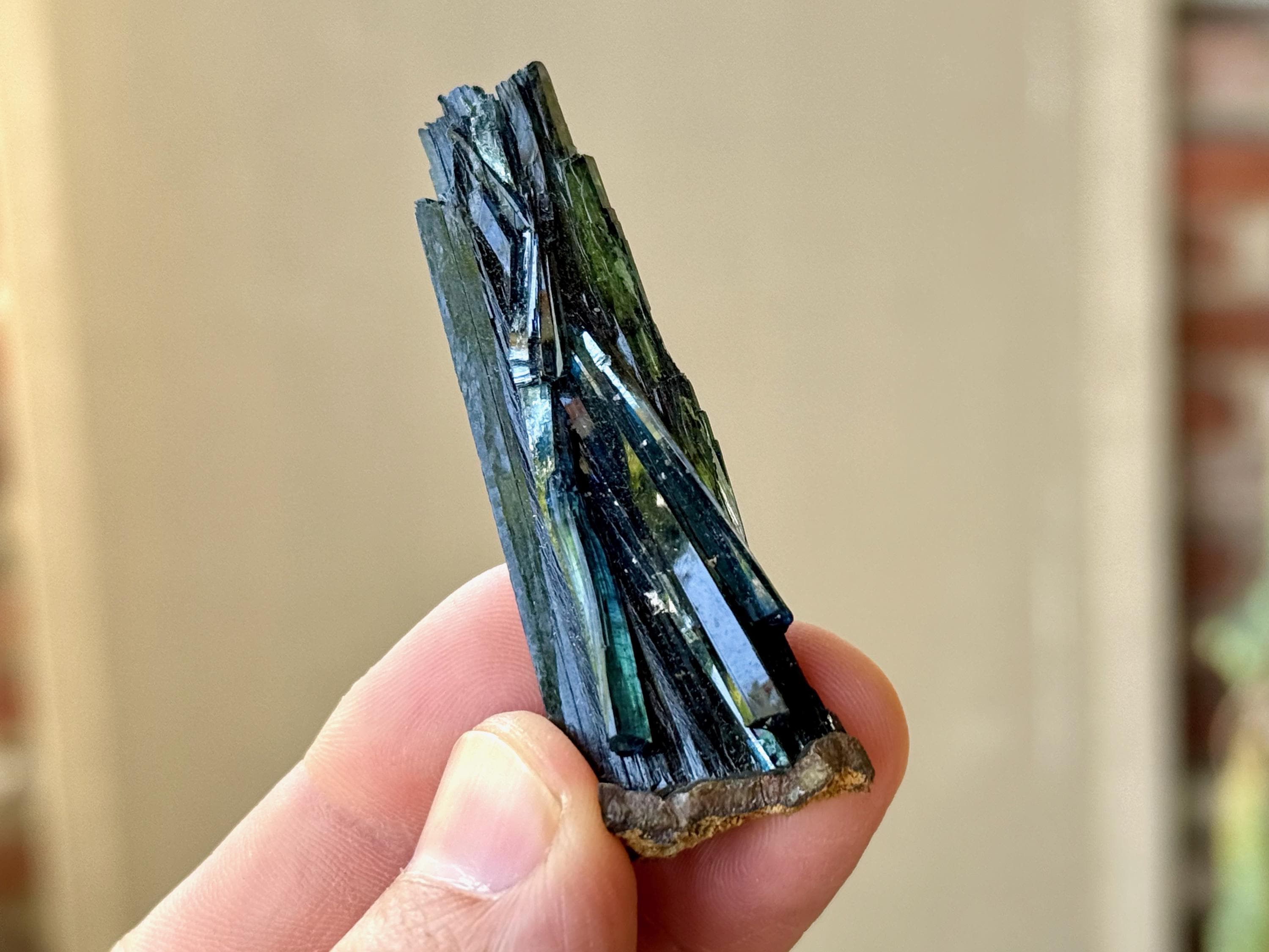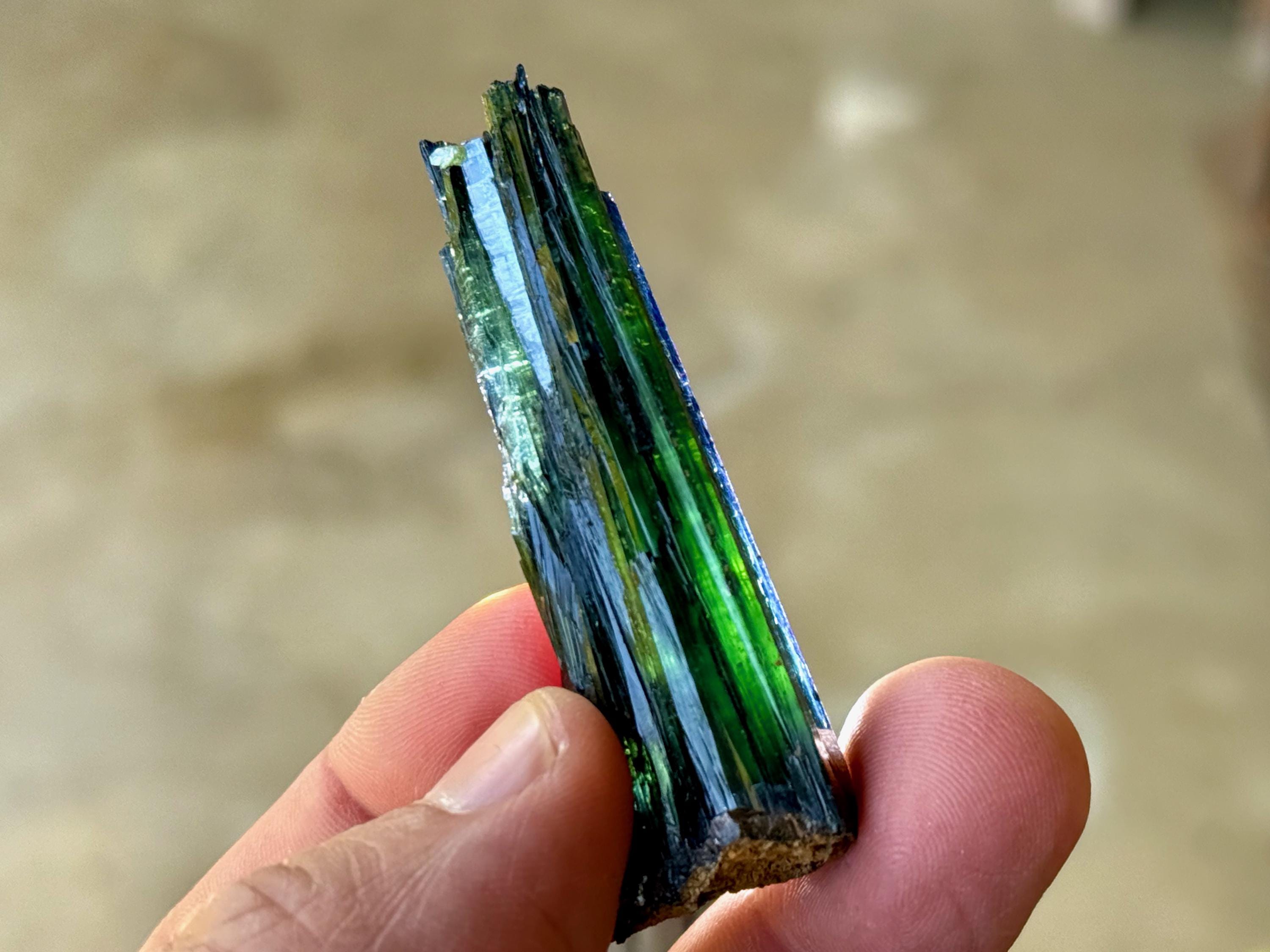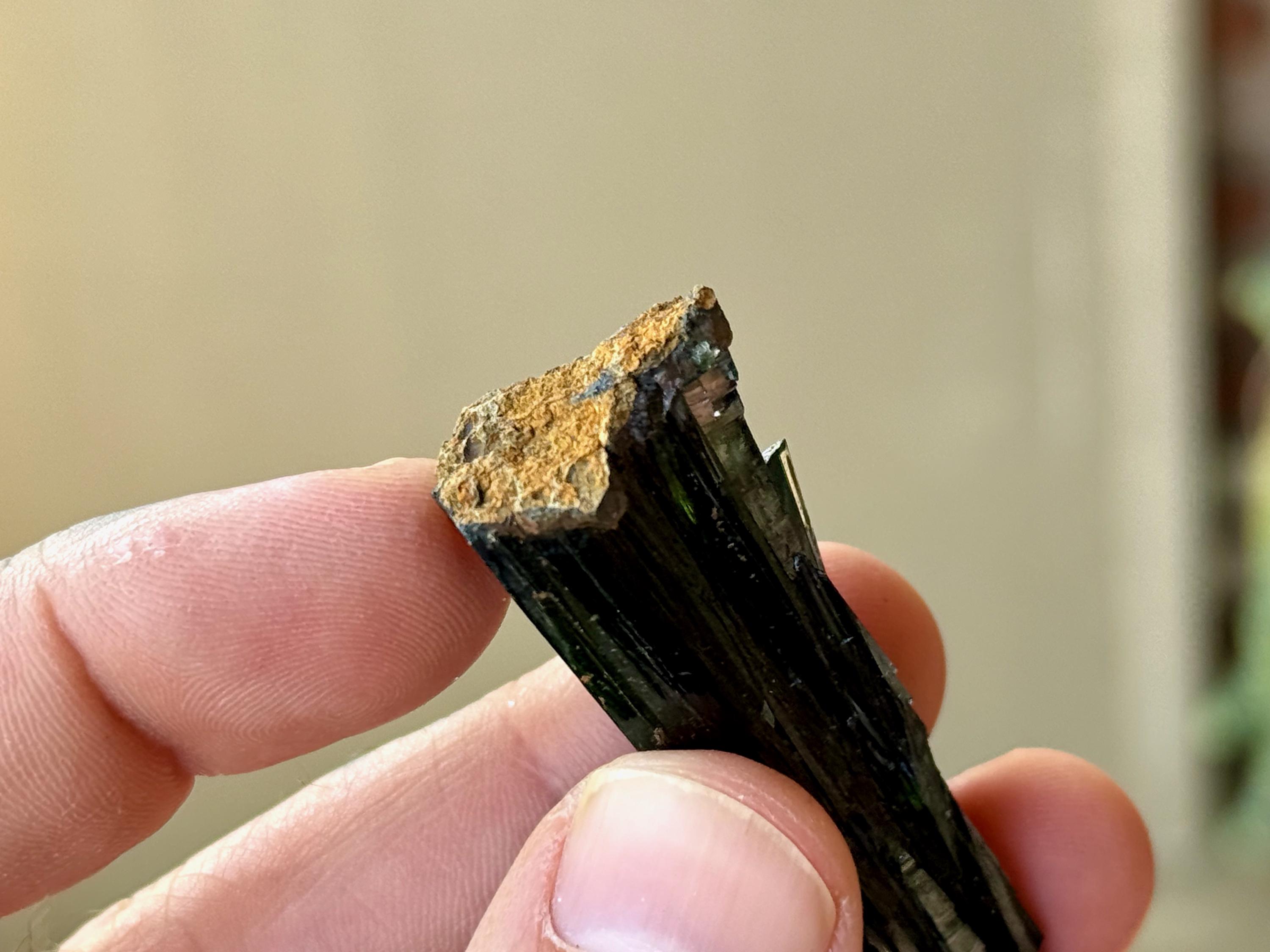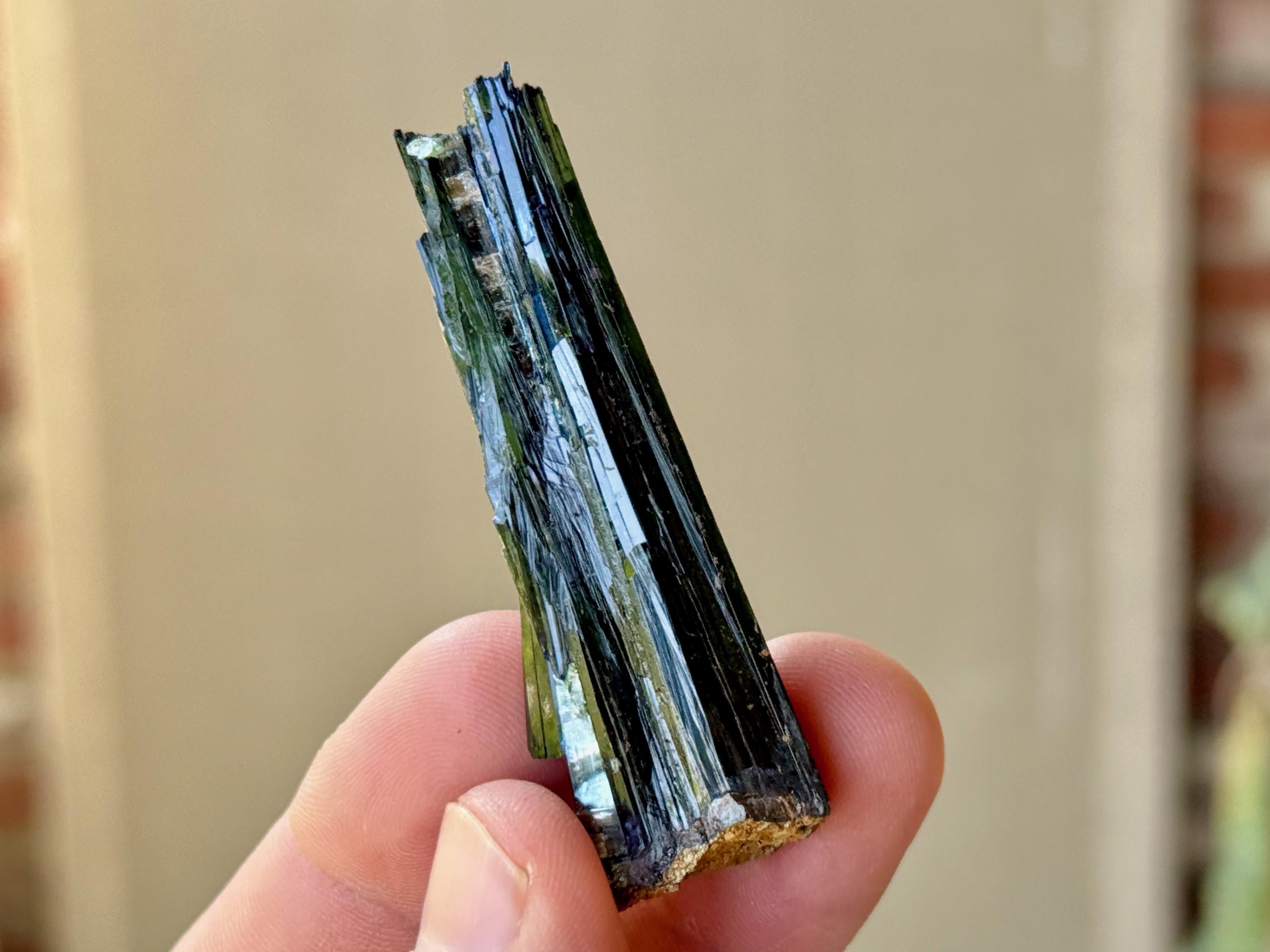 PLEASE NOTE: Vivianite should not be kept on permanent display or in direct sunlight for extended periods of time, as it will darken in color to almost black. This is due to the oxidation of the iron content in the crystal.