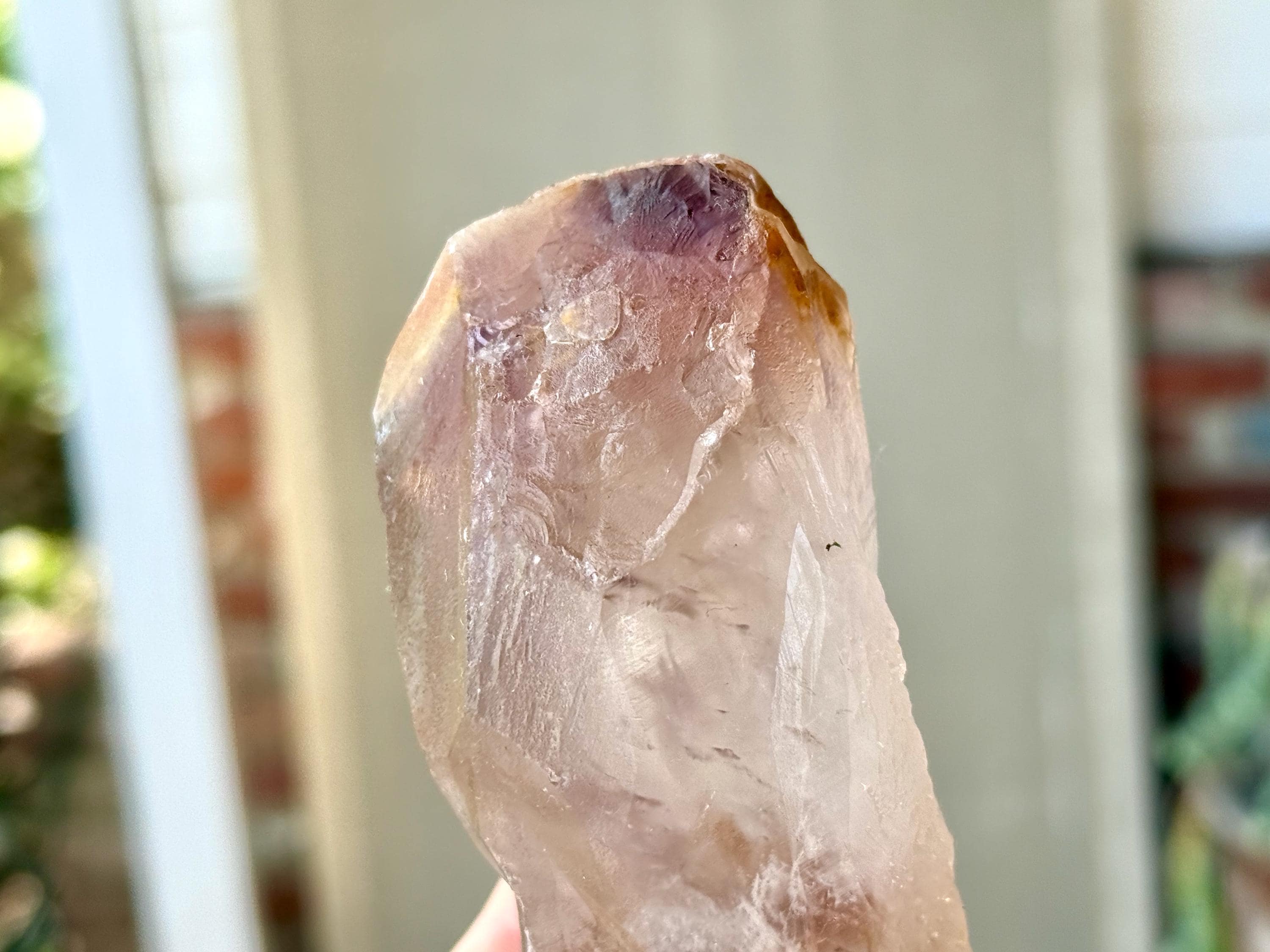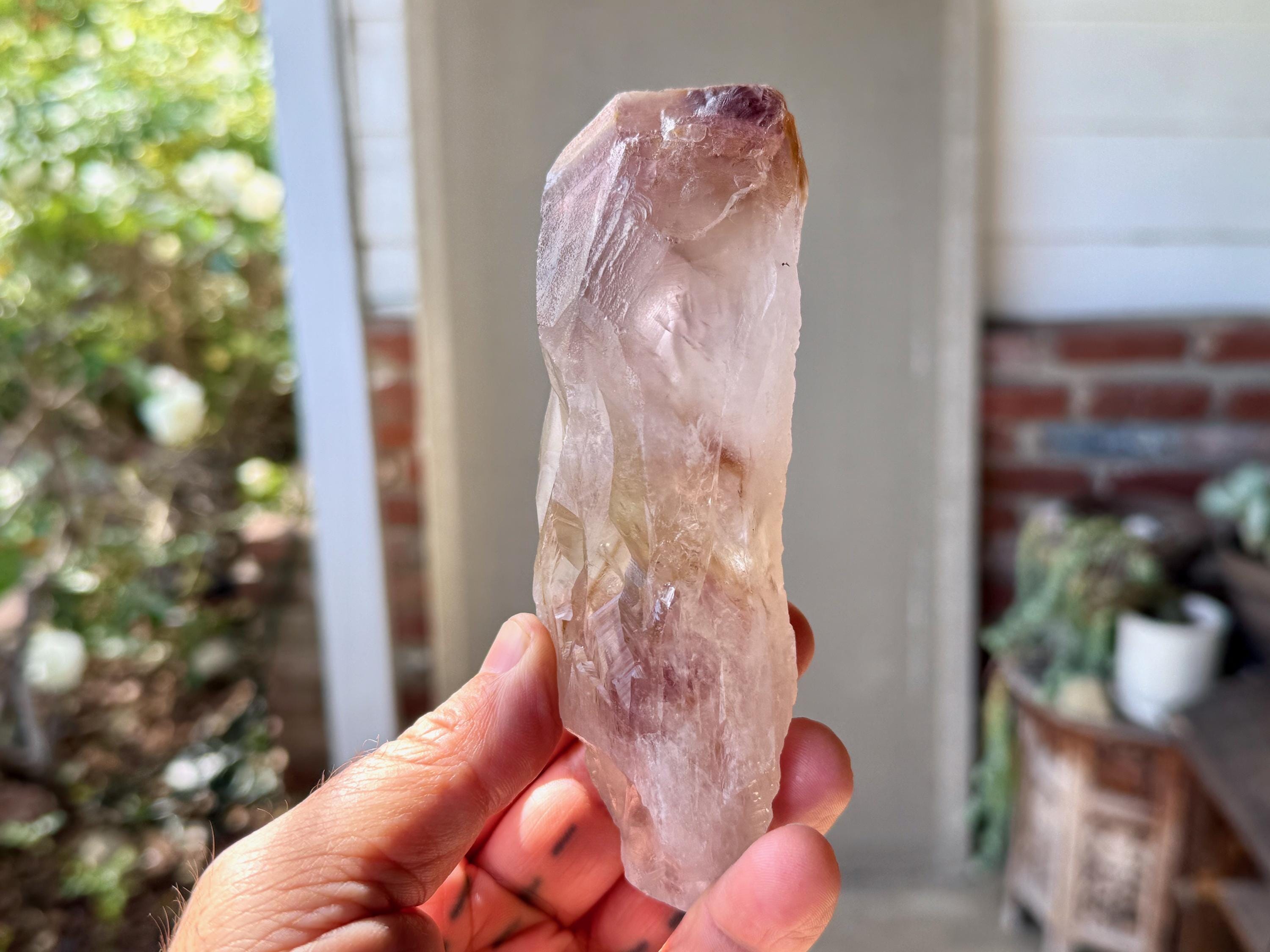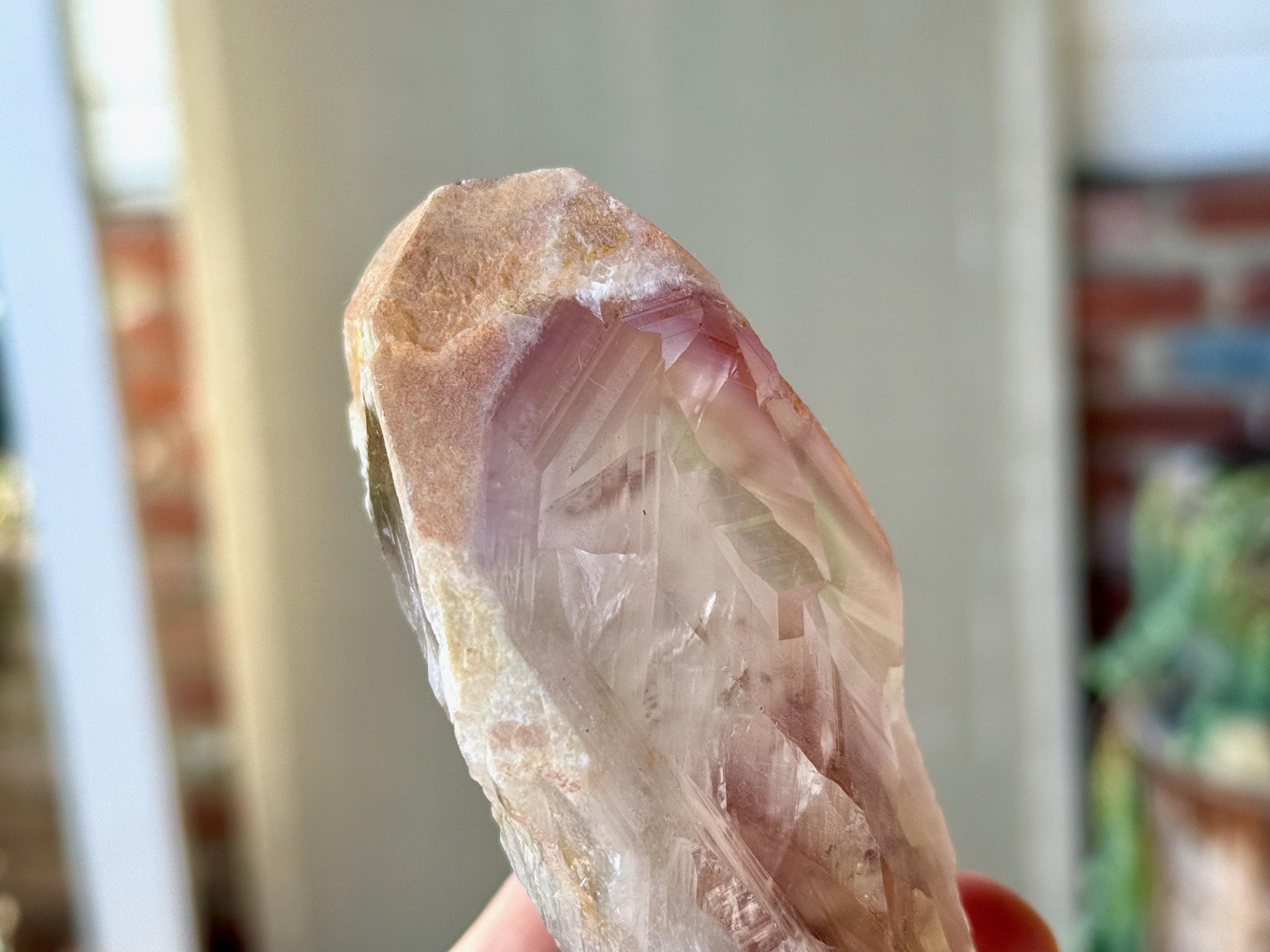 **Please note, the inclusions in this crystal are all natural/untreated. A UV light is necessary to see the phantoms glow, and they can be found affordably at Amazon or any other online outlet. Also, please note that the dark purple hues in the UV-lit photos are a result of the UV light itself and not the color of the crystal. The natural color is shown in the natural-light photos included in this listing.