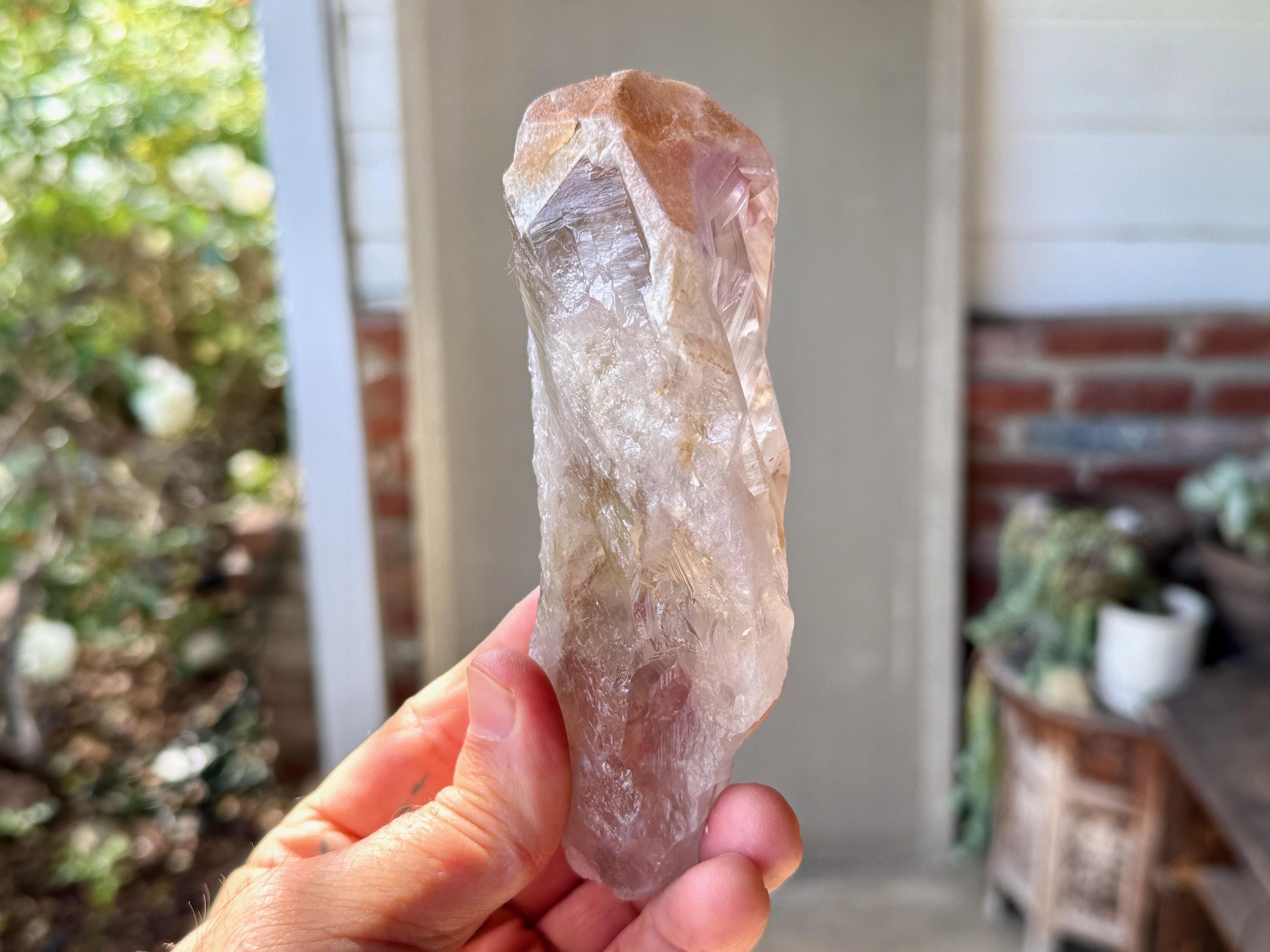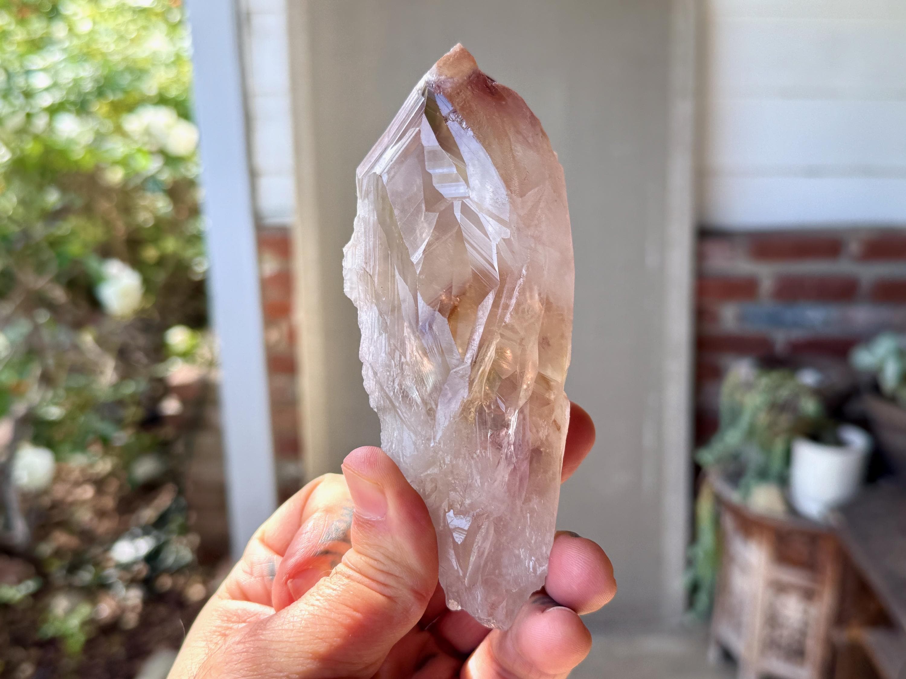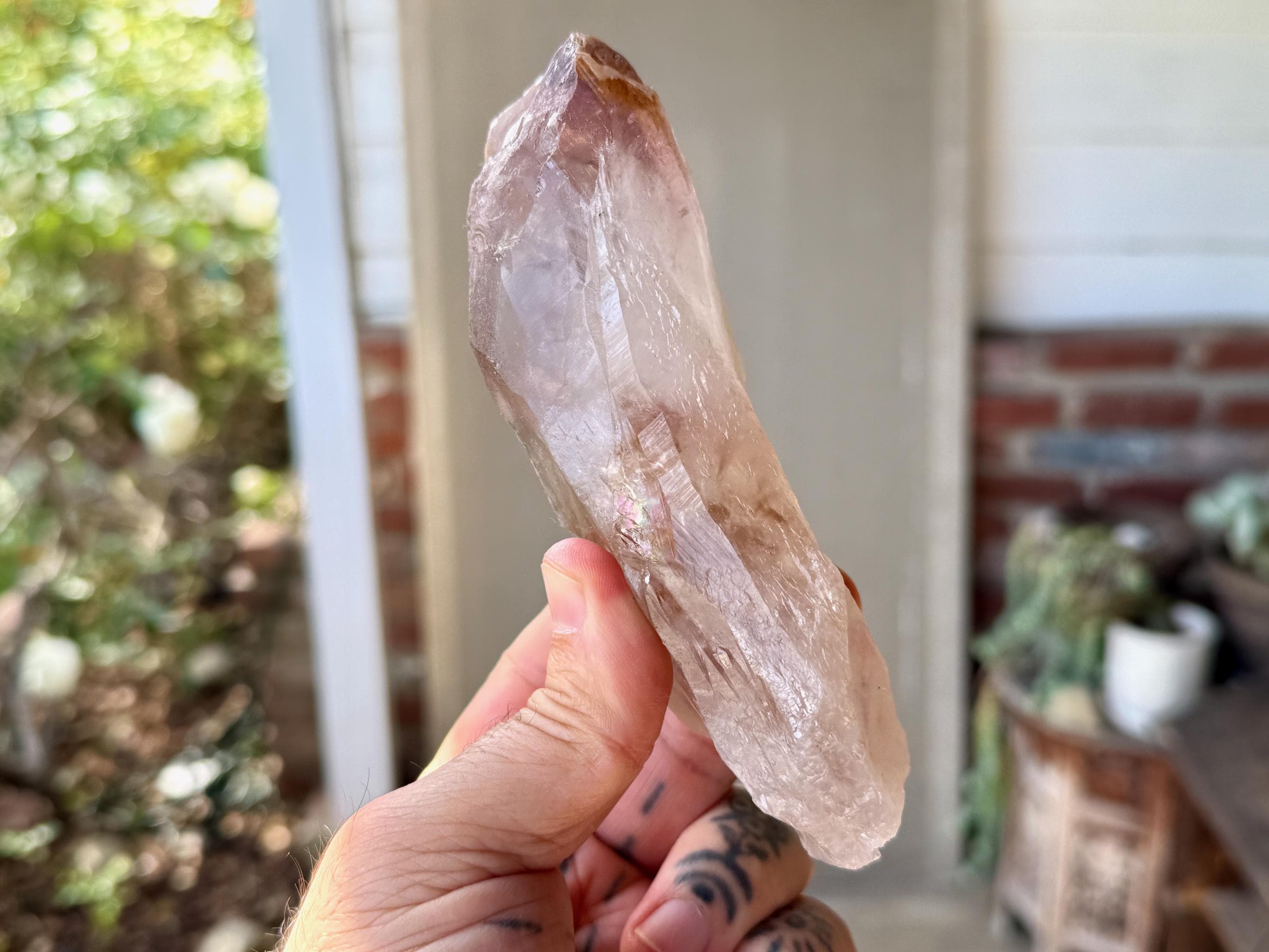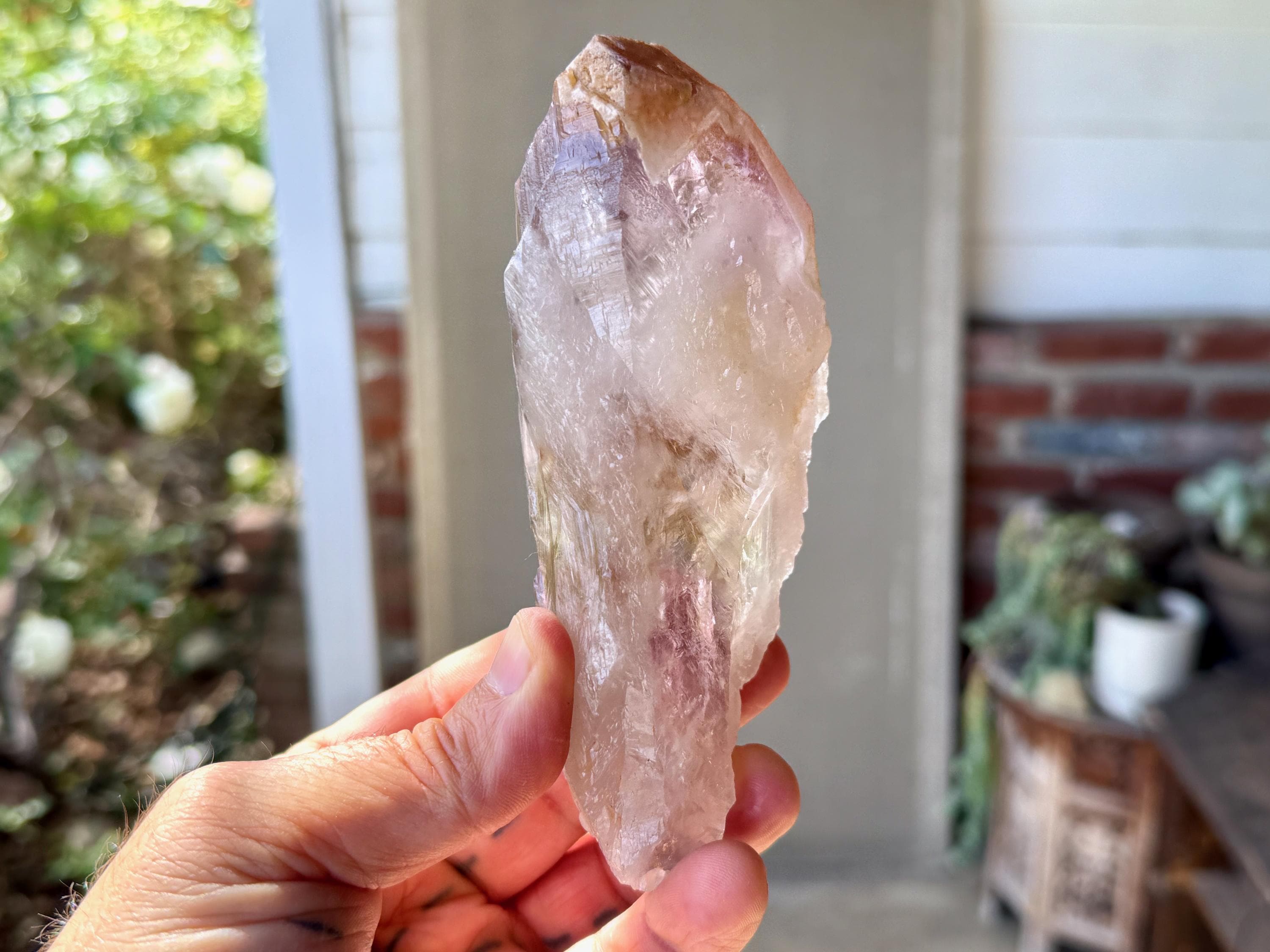 **Please note, the inclusions in this crystal are all natural/untreated. A UV light is necessary to see the phantoms glow, and they can be found affordably at Amazon or any other online outlet. Also, please note that the dark purple hues in the UV-lit photos are a result of the UV light itself and not the color of the crystal. The natural color is shown in the natural-light photos included in this listing.