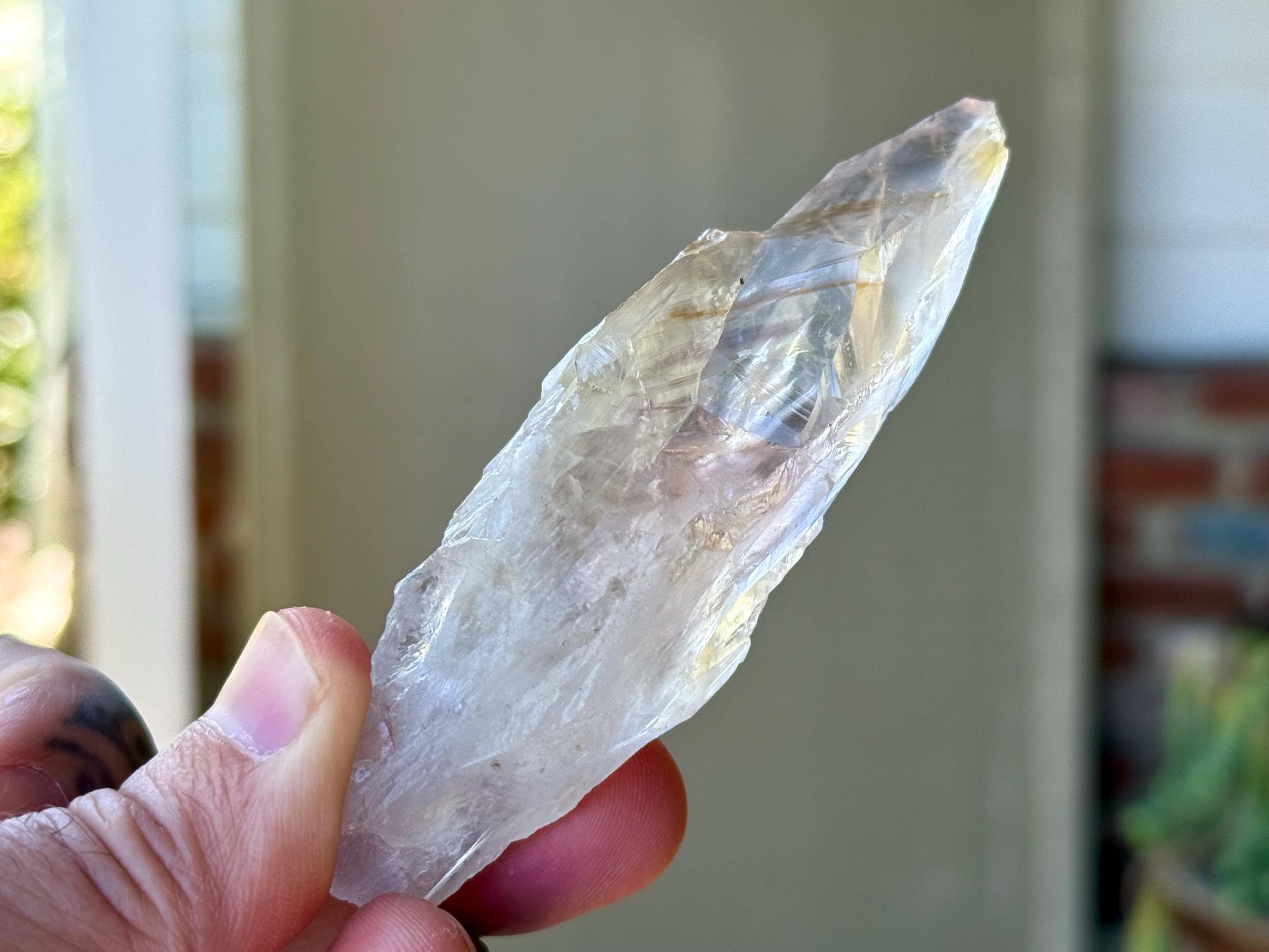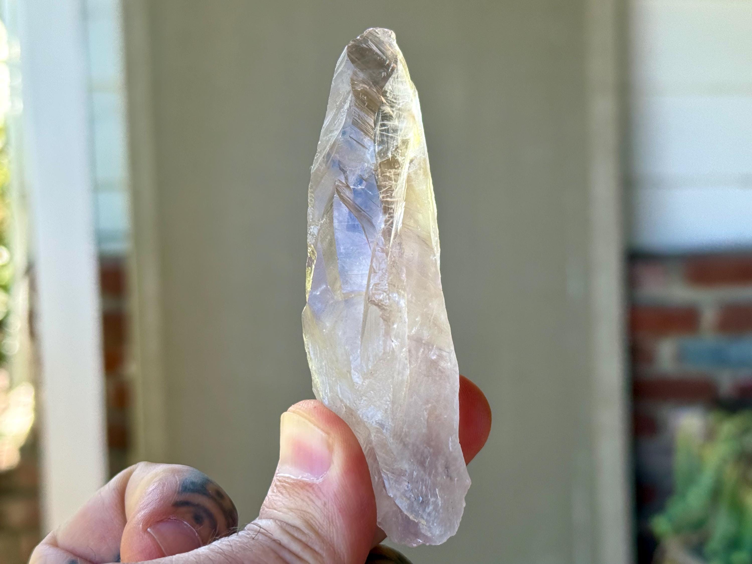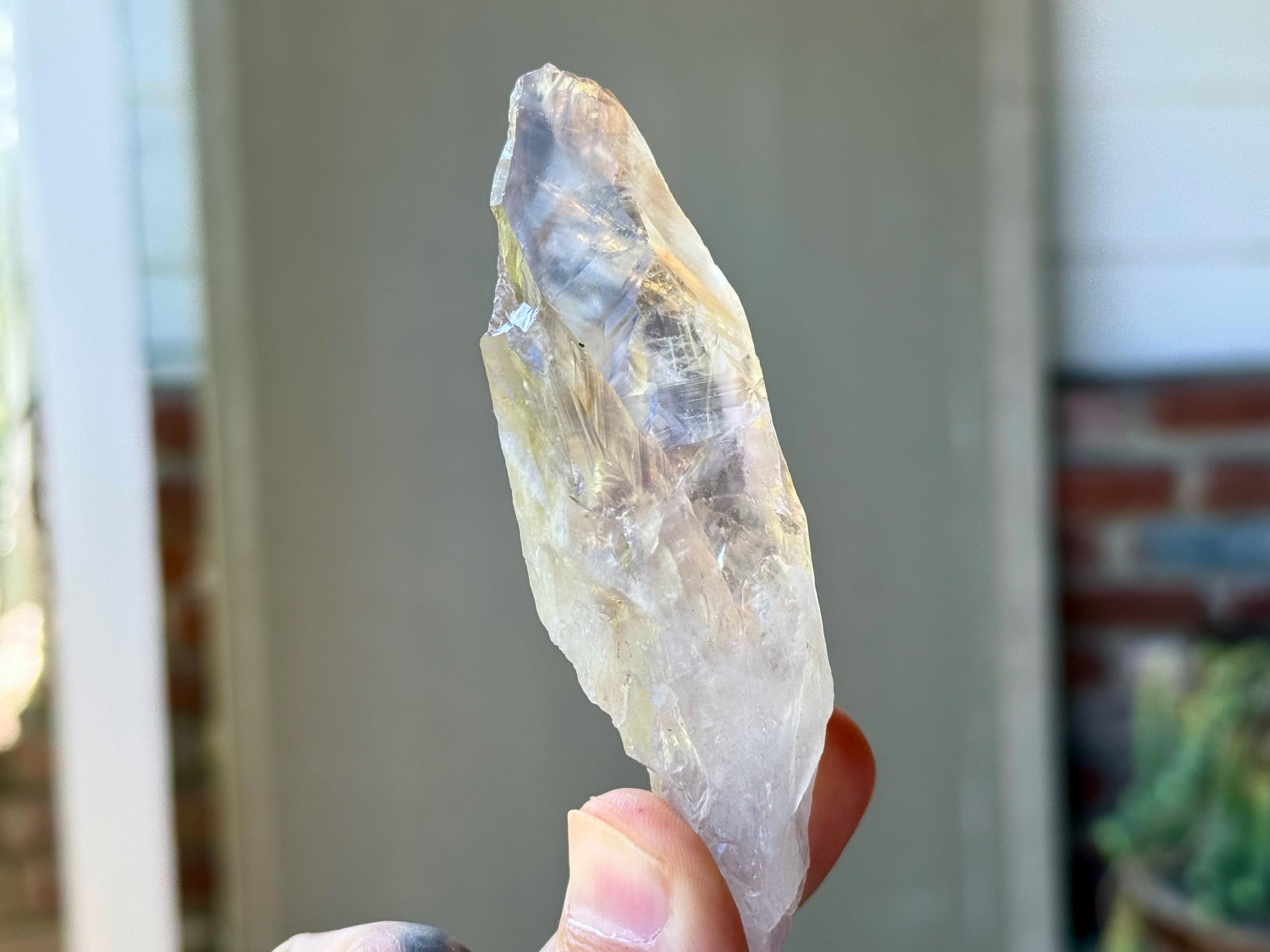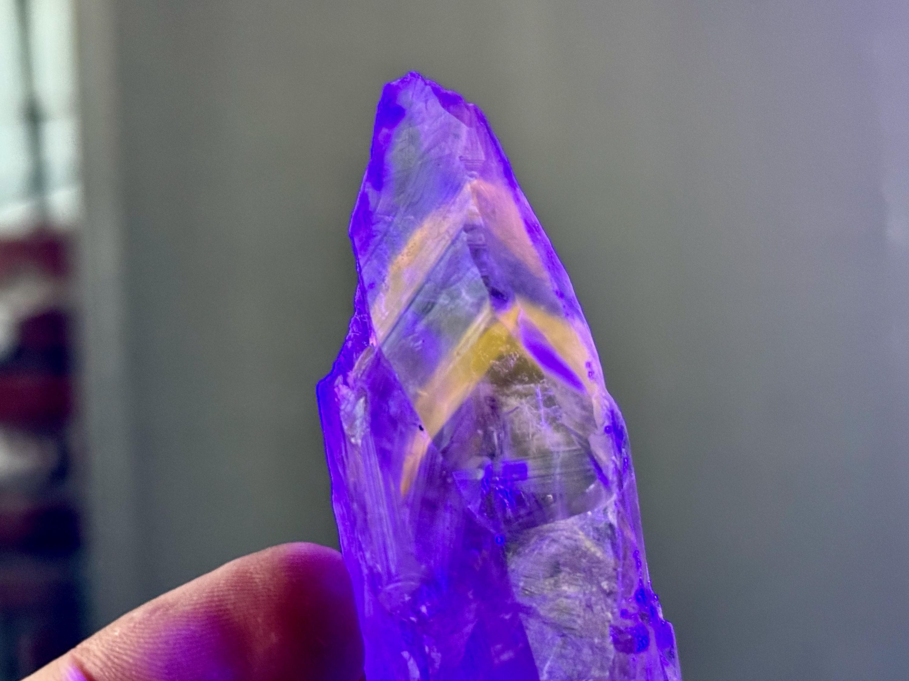 **Please note, the inclusions in this crystal are all natural/untreated. A UV light is necessary to see the phantoms glow, and they can be found affordably at Amazon or any other online outlet. Also, please note that the dark purple hues in the UV-lit photos are a result of the UV light itself and not the color of the crystal. The natural color is shown in the natural-light photos included in this listing.