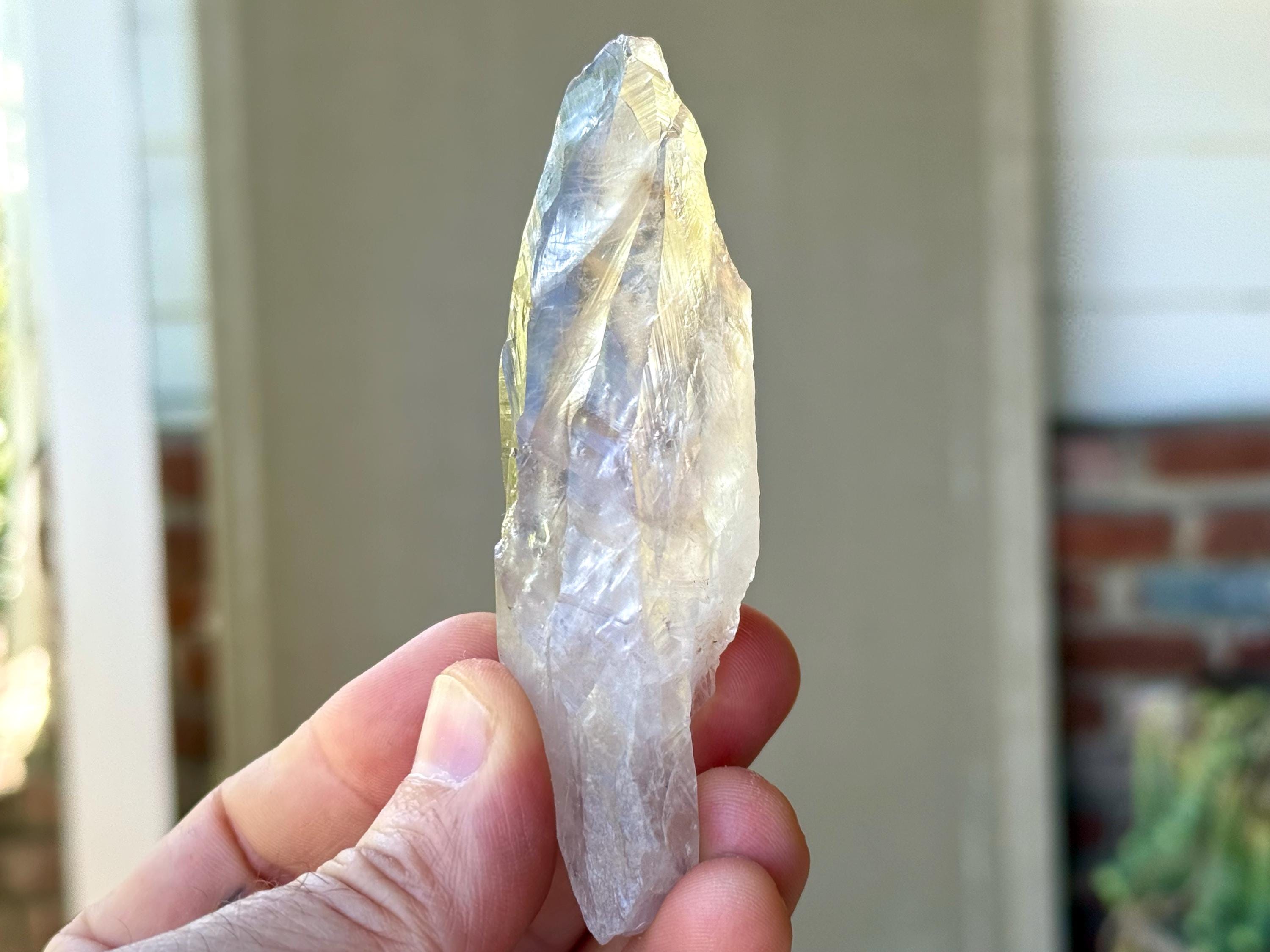This natural Powellite Phantom Root Quartz comes from a new find in Bahia, Brazil. While most of the crystals from this find were cut and polished at the source, this crystal is completely raw, natural and unpolished!
