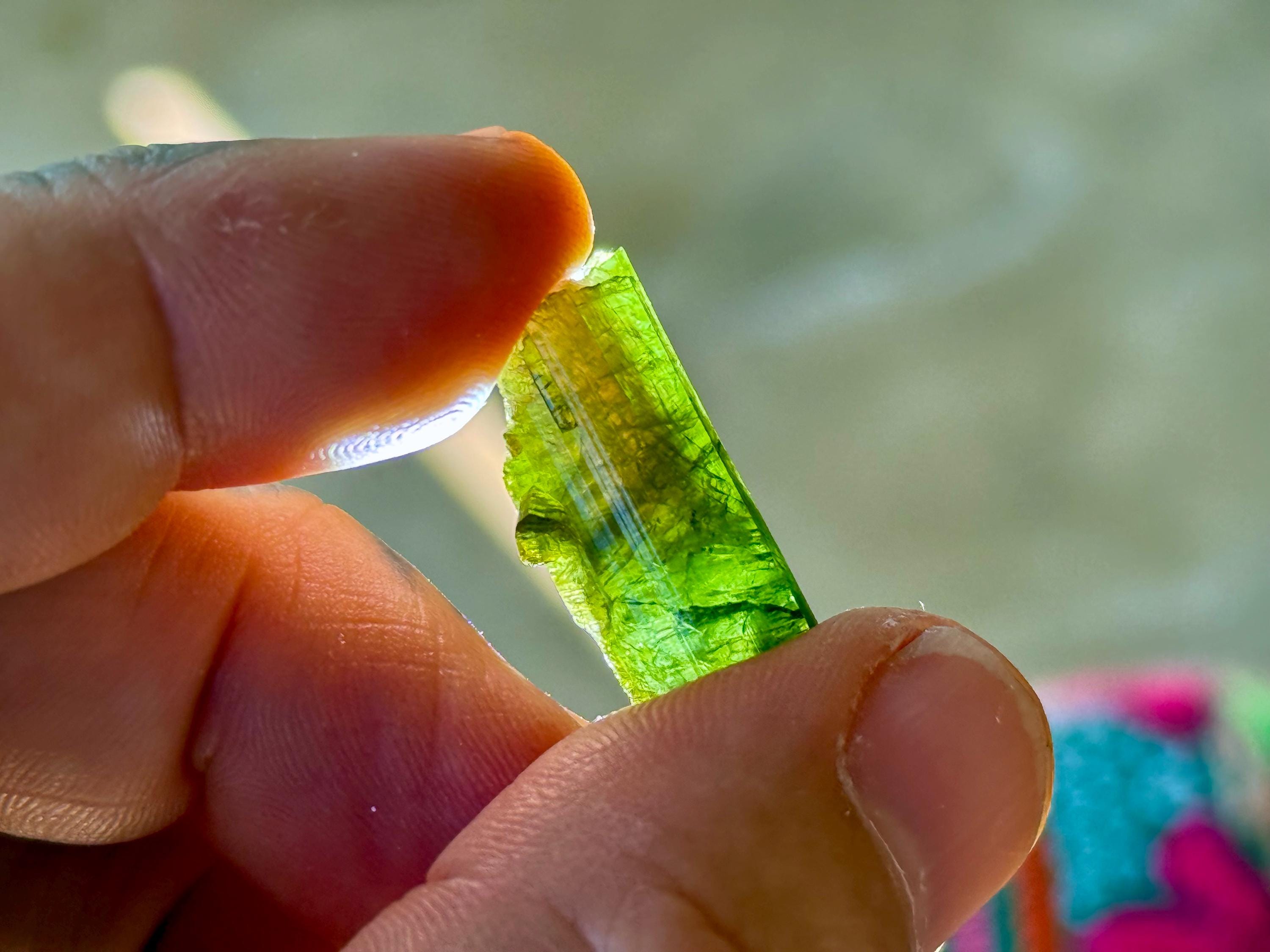 Green Tourmaline purifies and strengthens, allowing one to energetically carry greater amounts of Life Force (Prana Energy). As more energy is carried within the physical body, higher degrees of consciousness can be maintained. It is a wonderful protection stone, deal for sealing holes in the aura that leave one vulnerable to negativity.