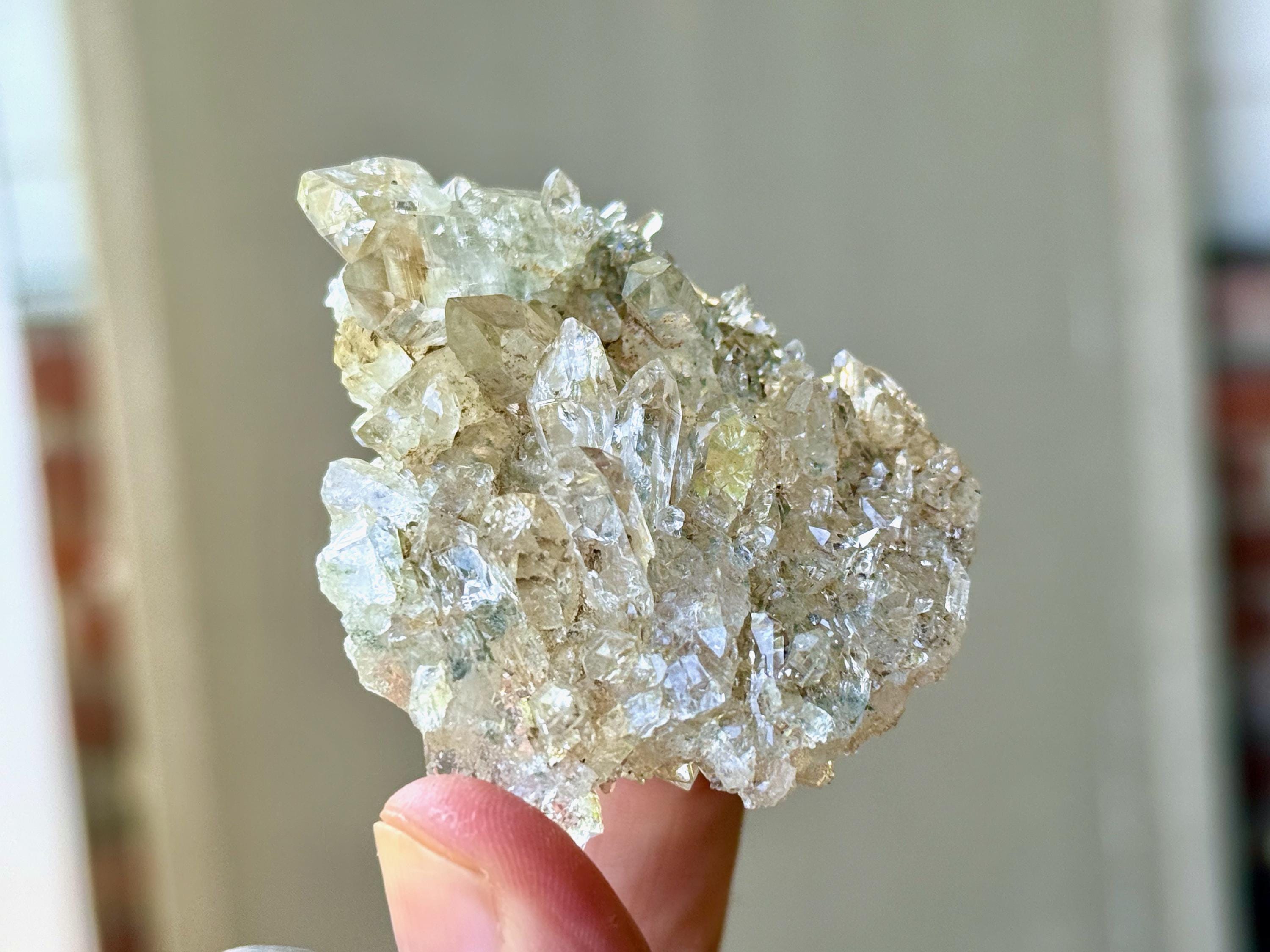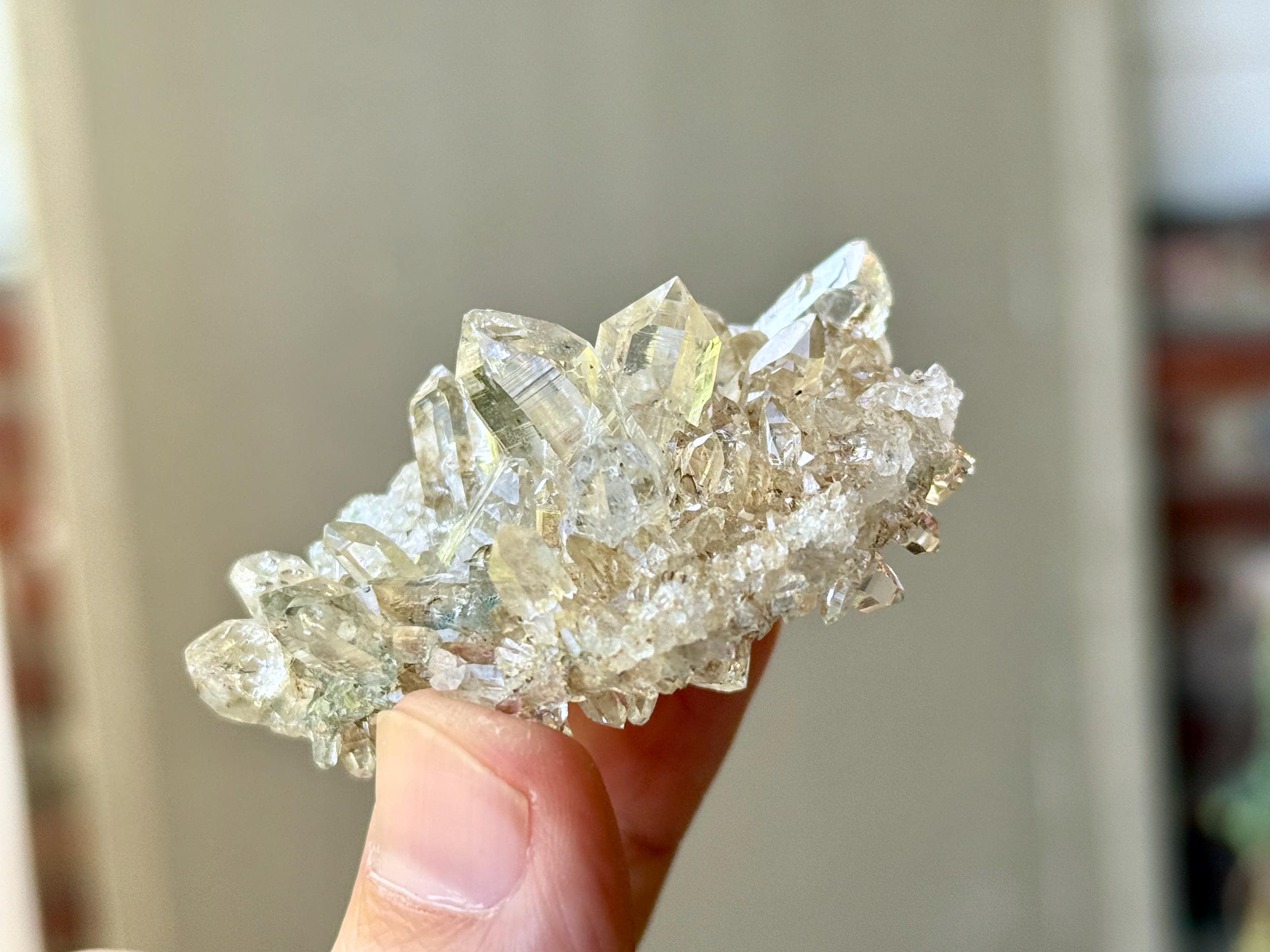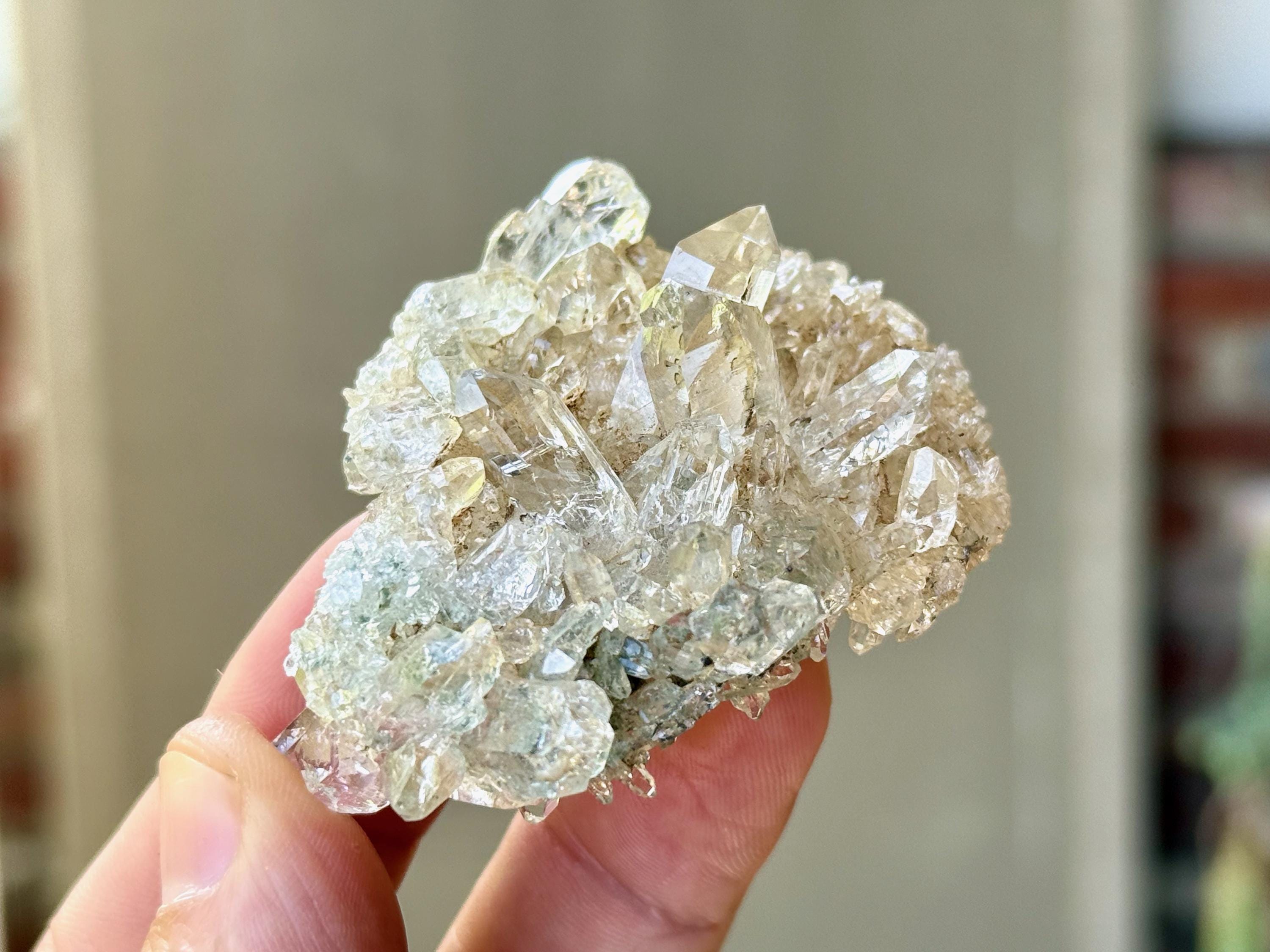 This natural Himalayan Quartz with Green Chlorite comes from a new find in the Himalayan Mountains of India. Our source for these rare crystals are fourth generation miners who gather these crystals ethically by hand at altitudes of 12,000 feet (and sometimes up to 18,000 feet) with no power tools or explosives.