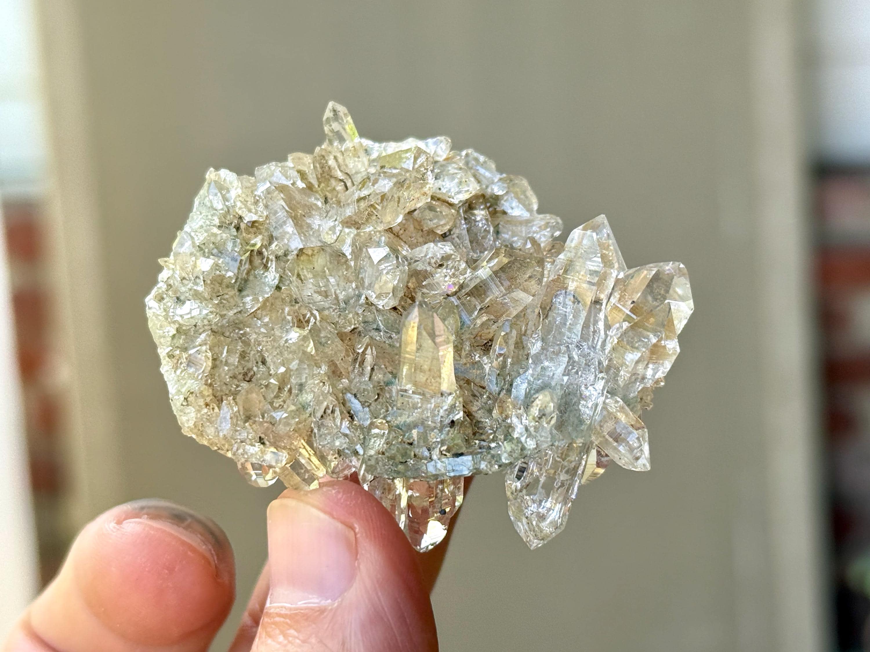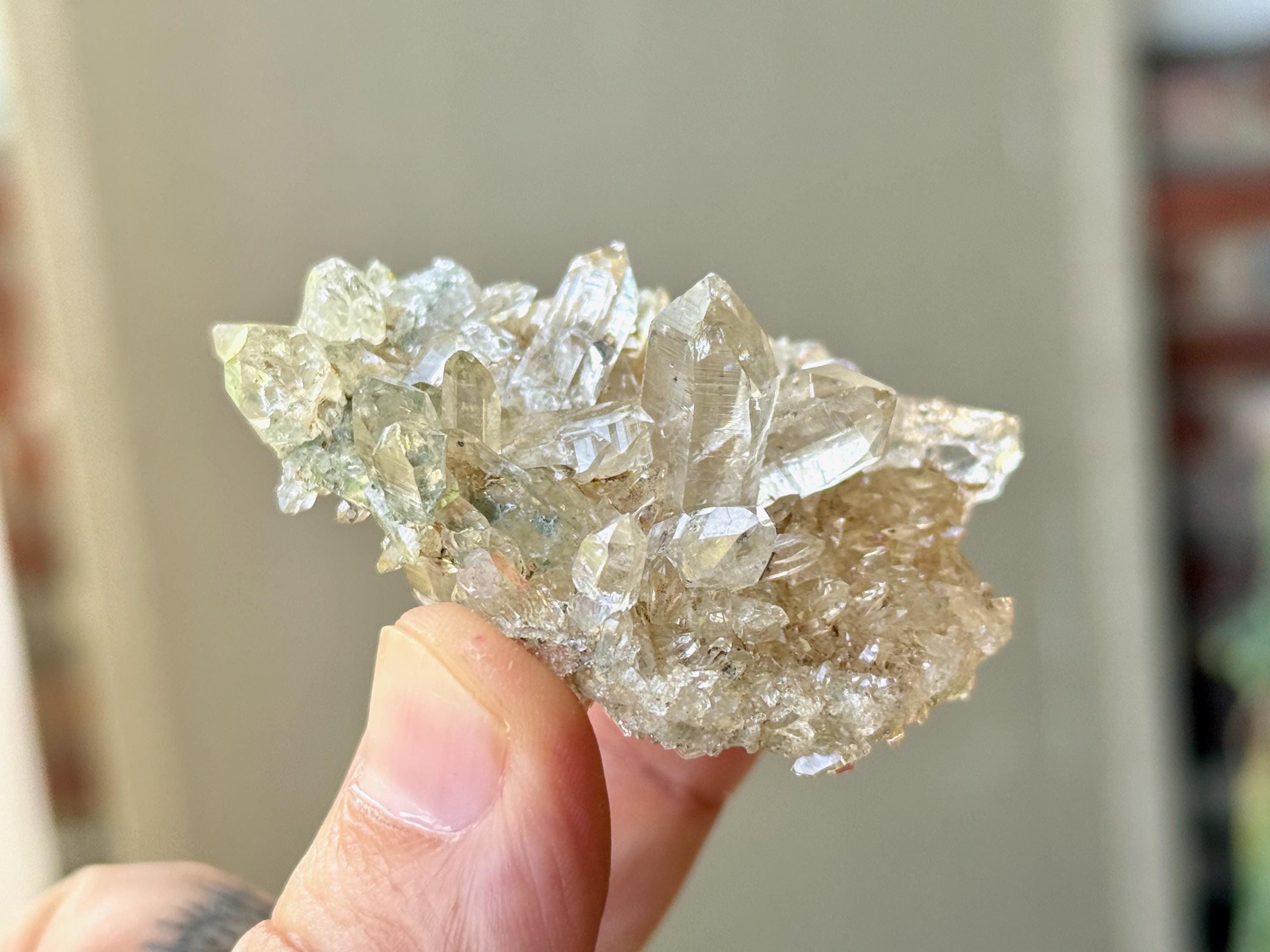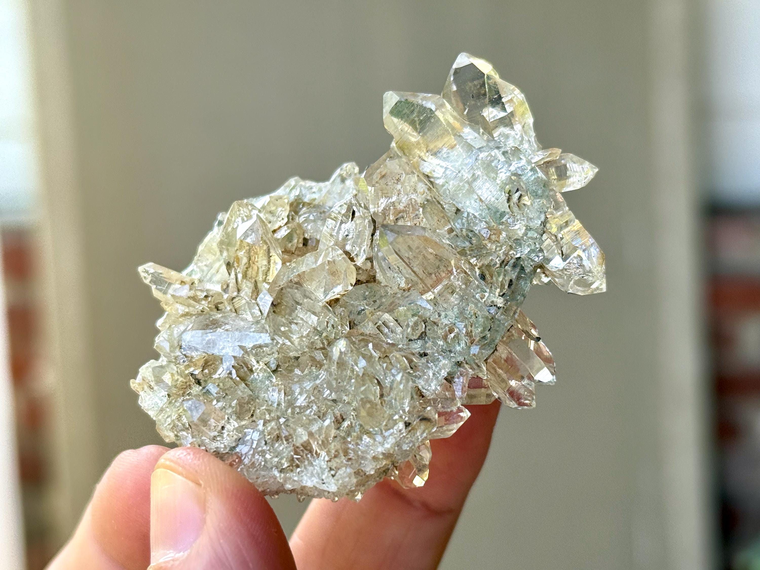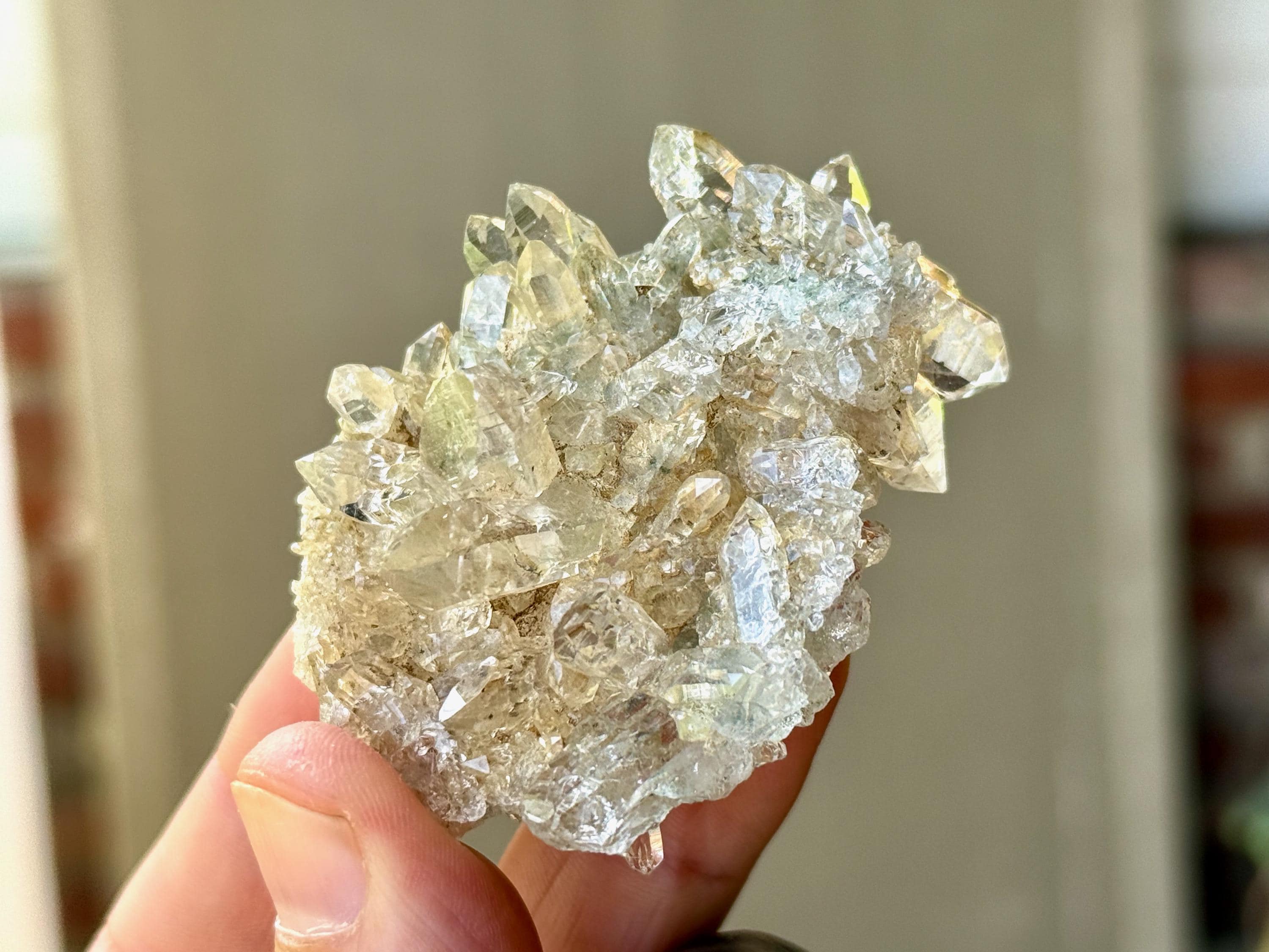 This natural Himalayan Quartz with Green Chlorite comes from a new find in the Himalayan Mountains of India. Our source for these rare crystals are fourth generation miners who gather these crystals ethically by hand at altitudes of 12,000 feet (and sometimes up to 18,000 feet) with no power tools or explosives.