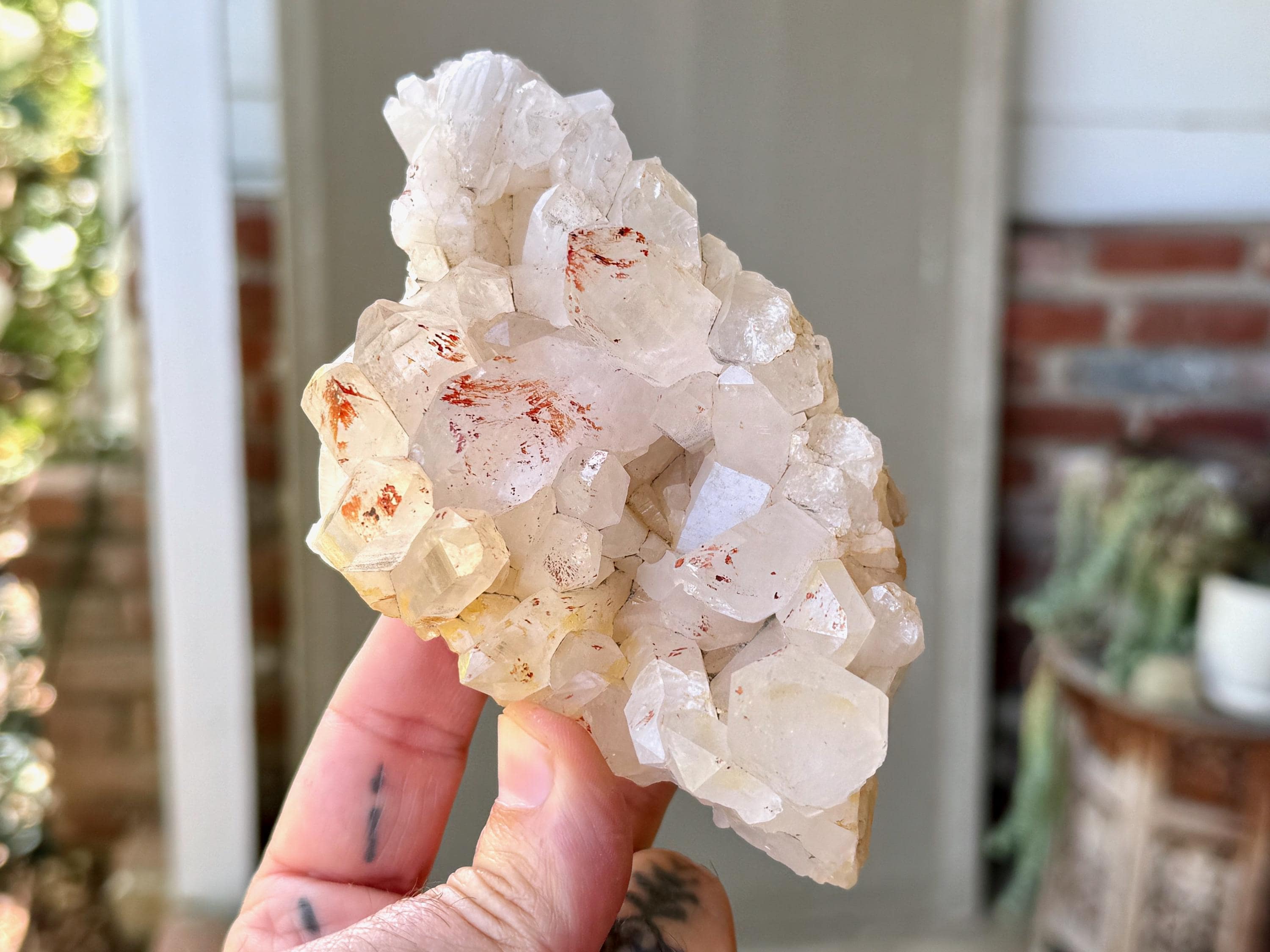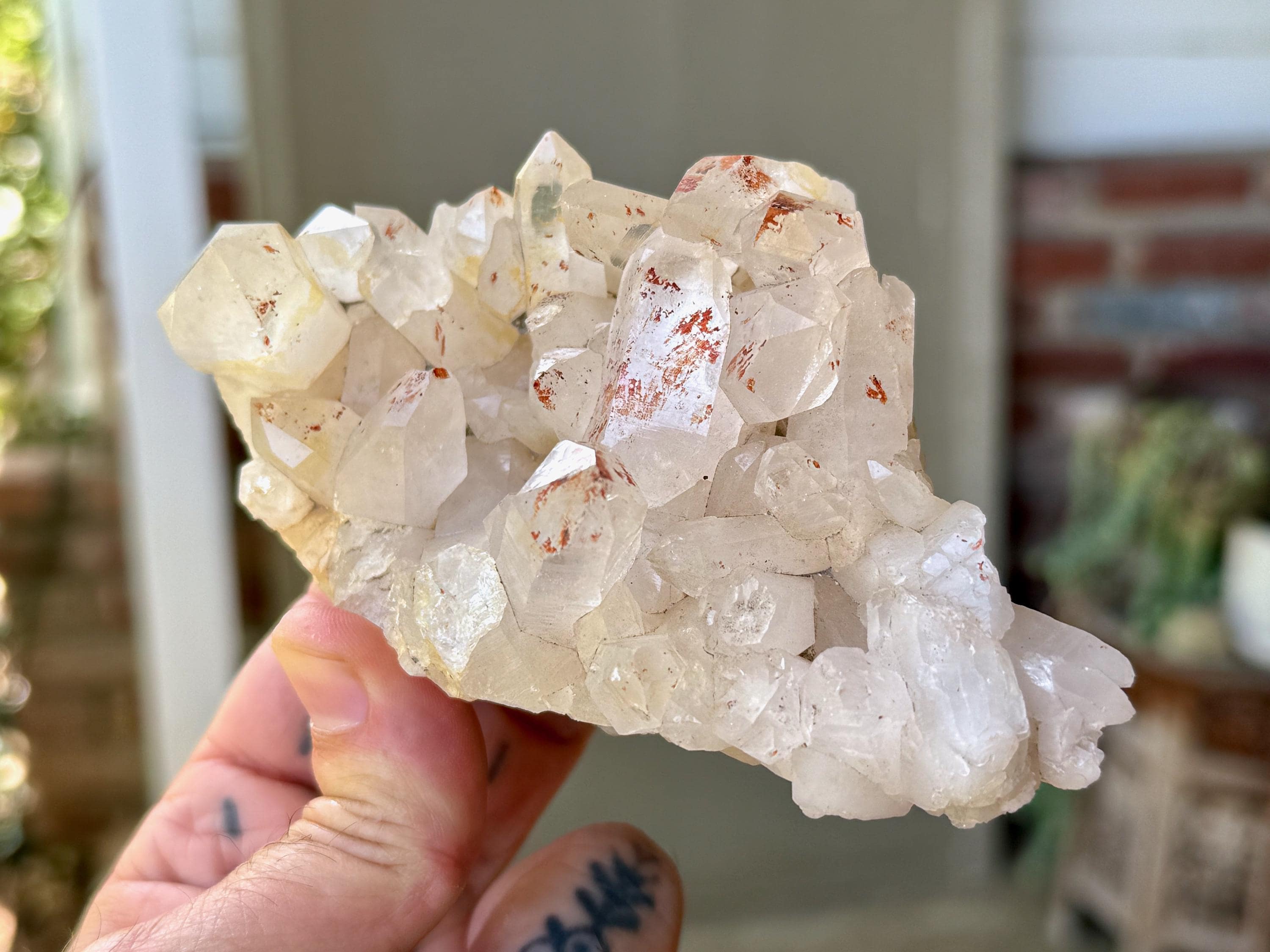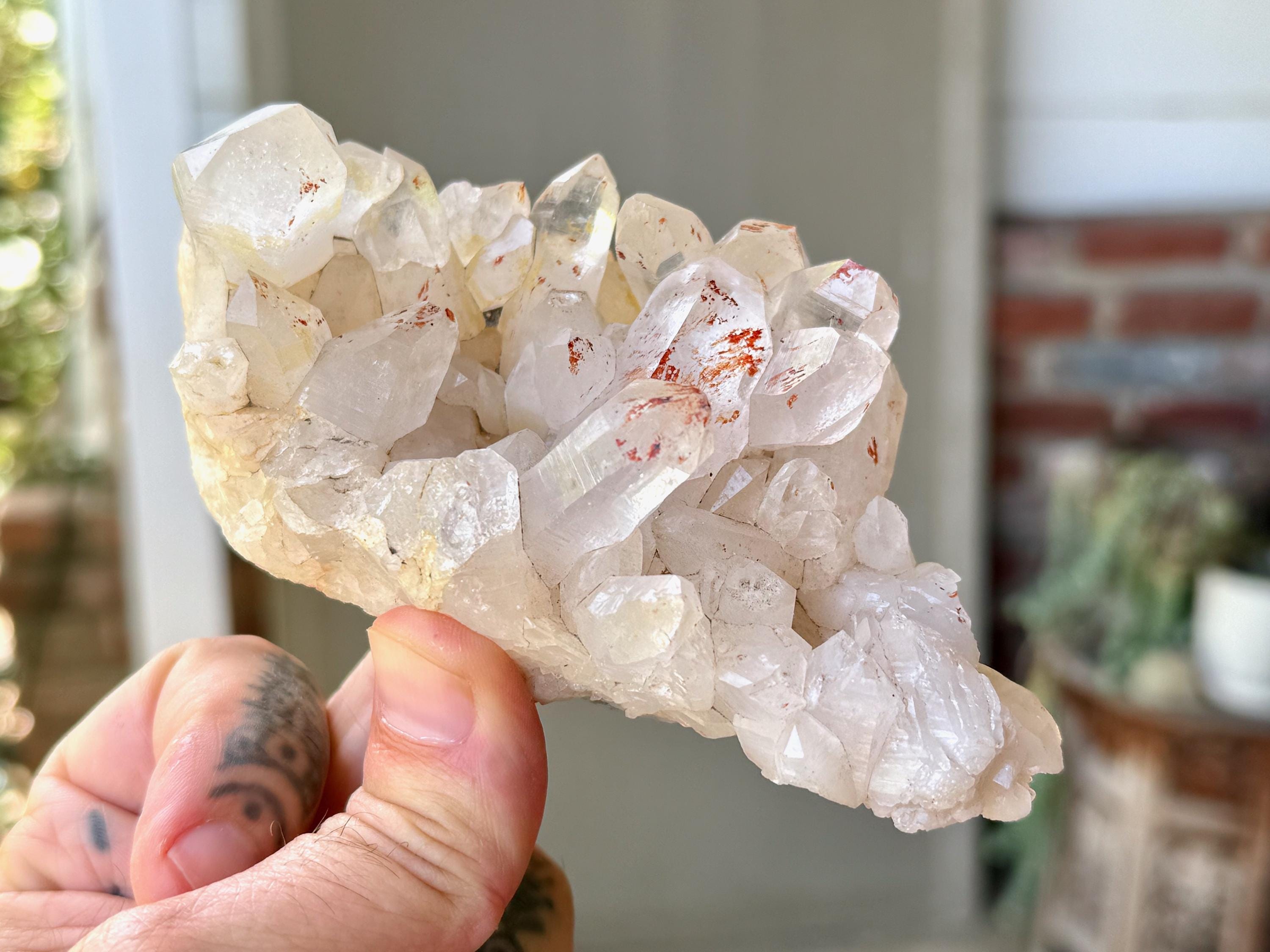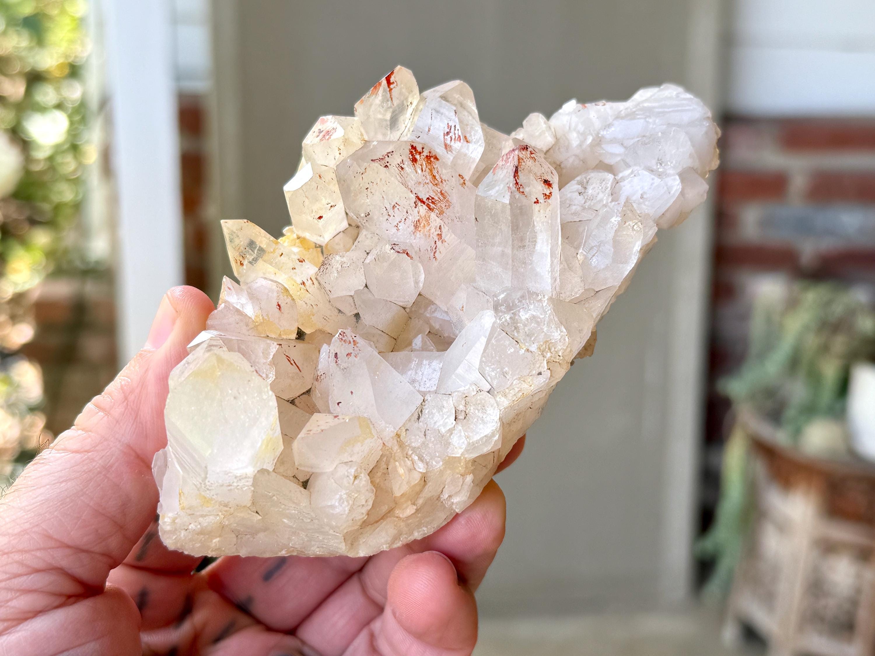 This natural Golden Healer Himalayan Quartz with Red Hematite comes from a new find in the Himalayan Mountains of India. Our source for these rare crystals are fourth generation miners who gather these crystals ethically by hand at altitudes of 12,000 feet (and sometimes up to 18,000 feet) with no power tools or explosives.