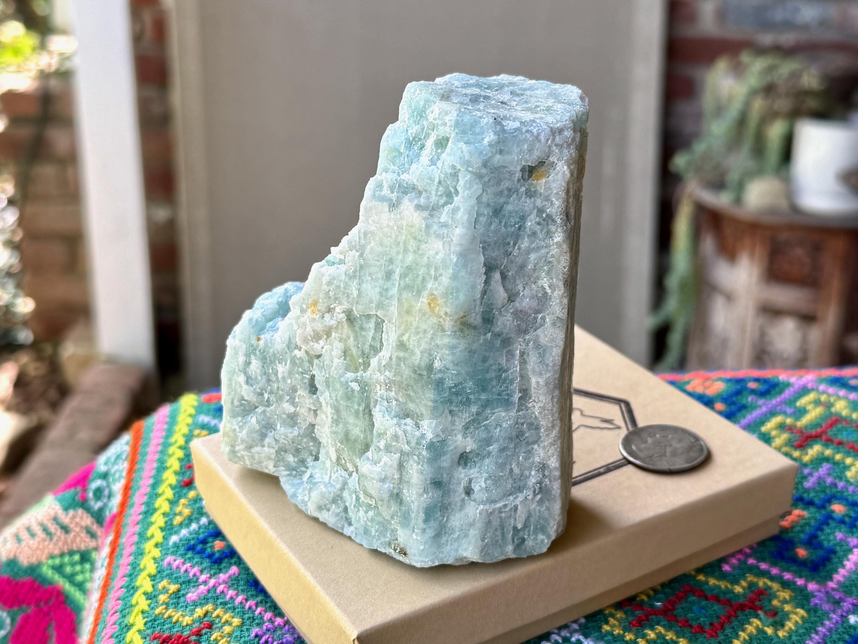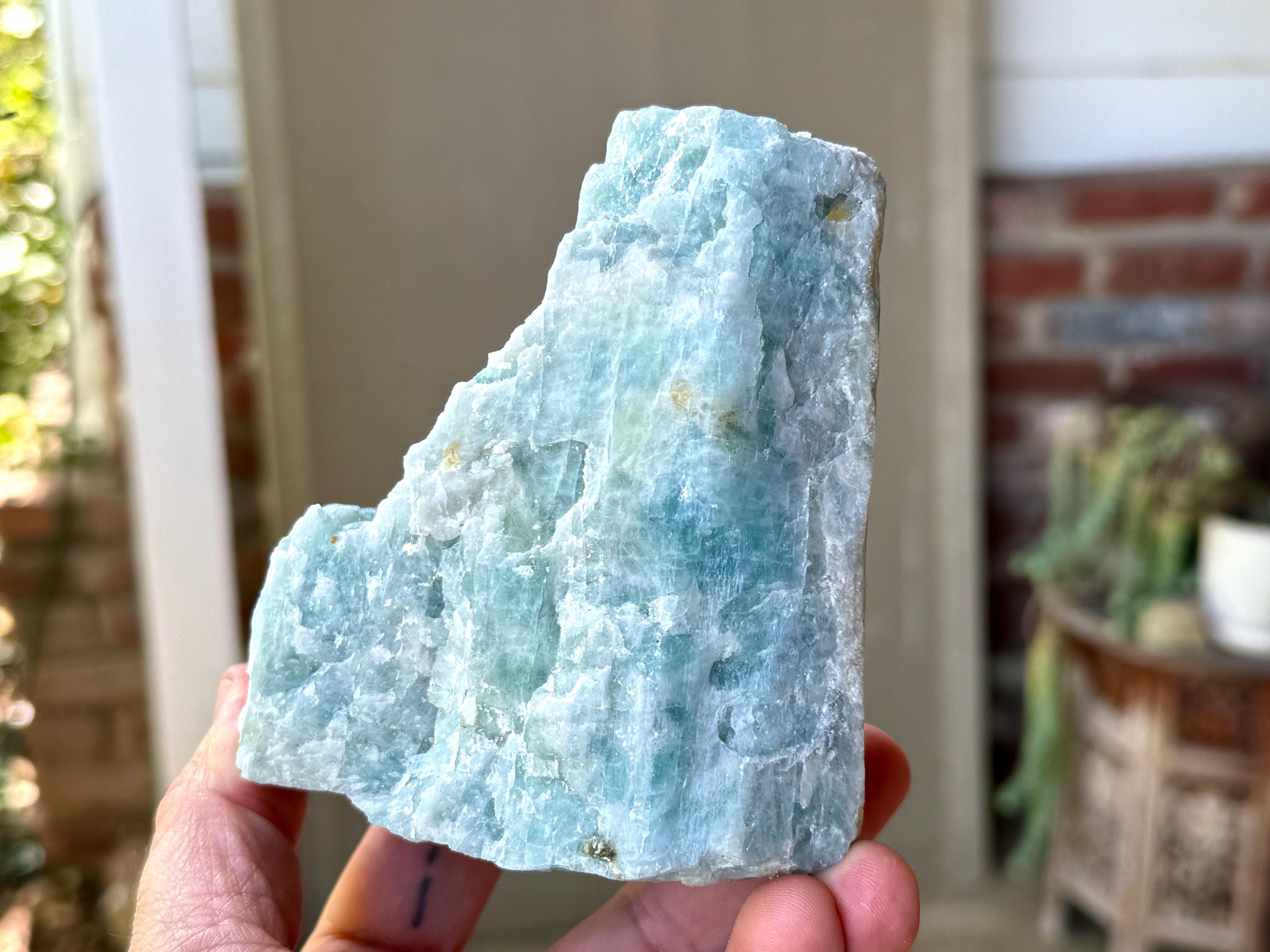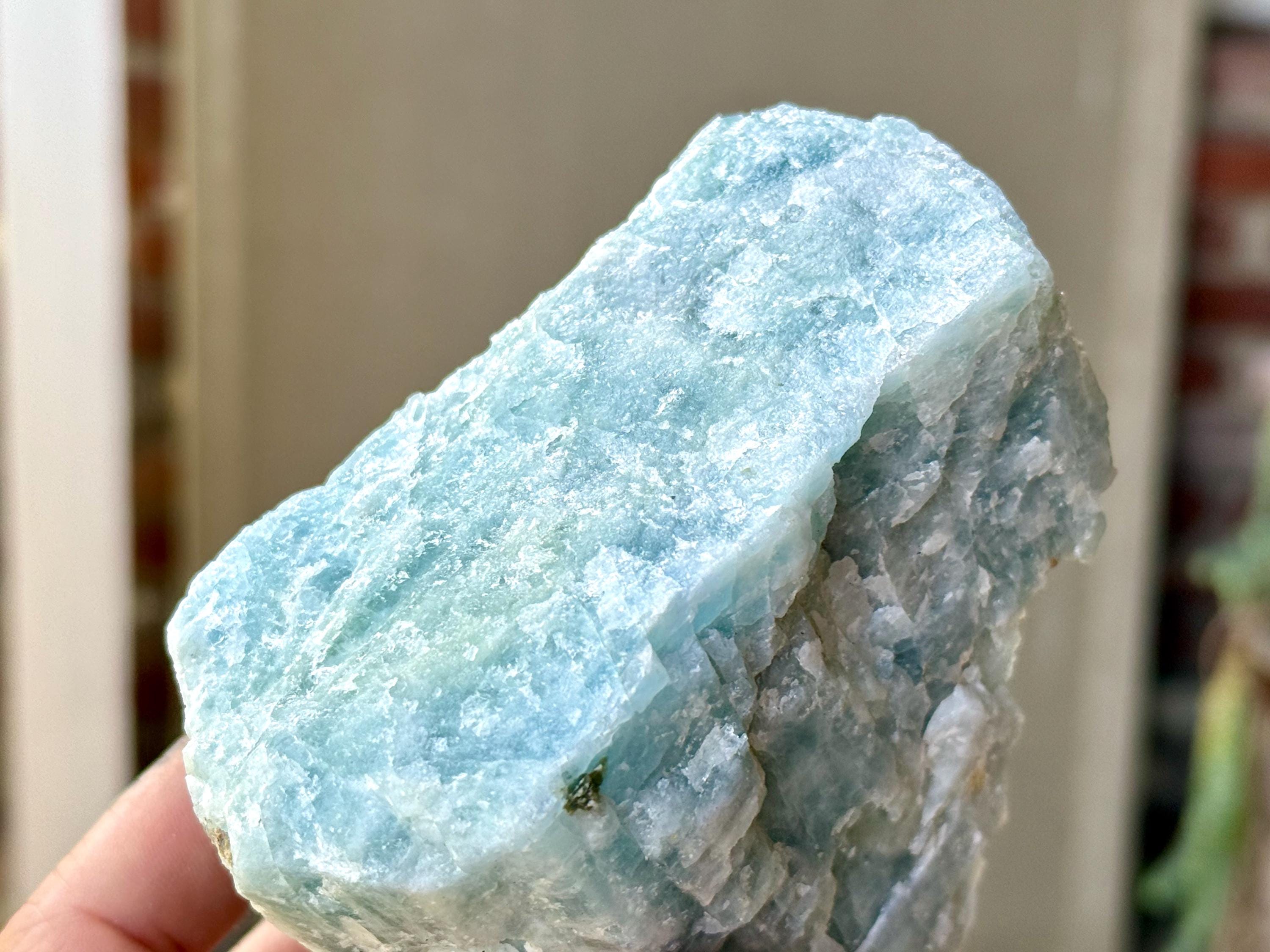 This natural Aquamarine crystal comes from a recent find in Bahia, Brazil. Aquamarine is the blue mineral in the Beryl family and is a powerful crystal for aiding in self-expression and emotional cleansing.