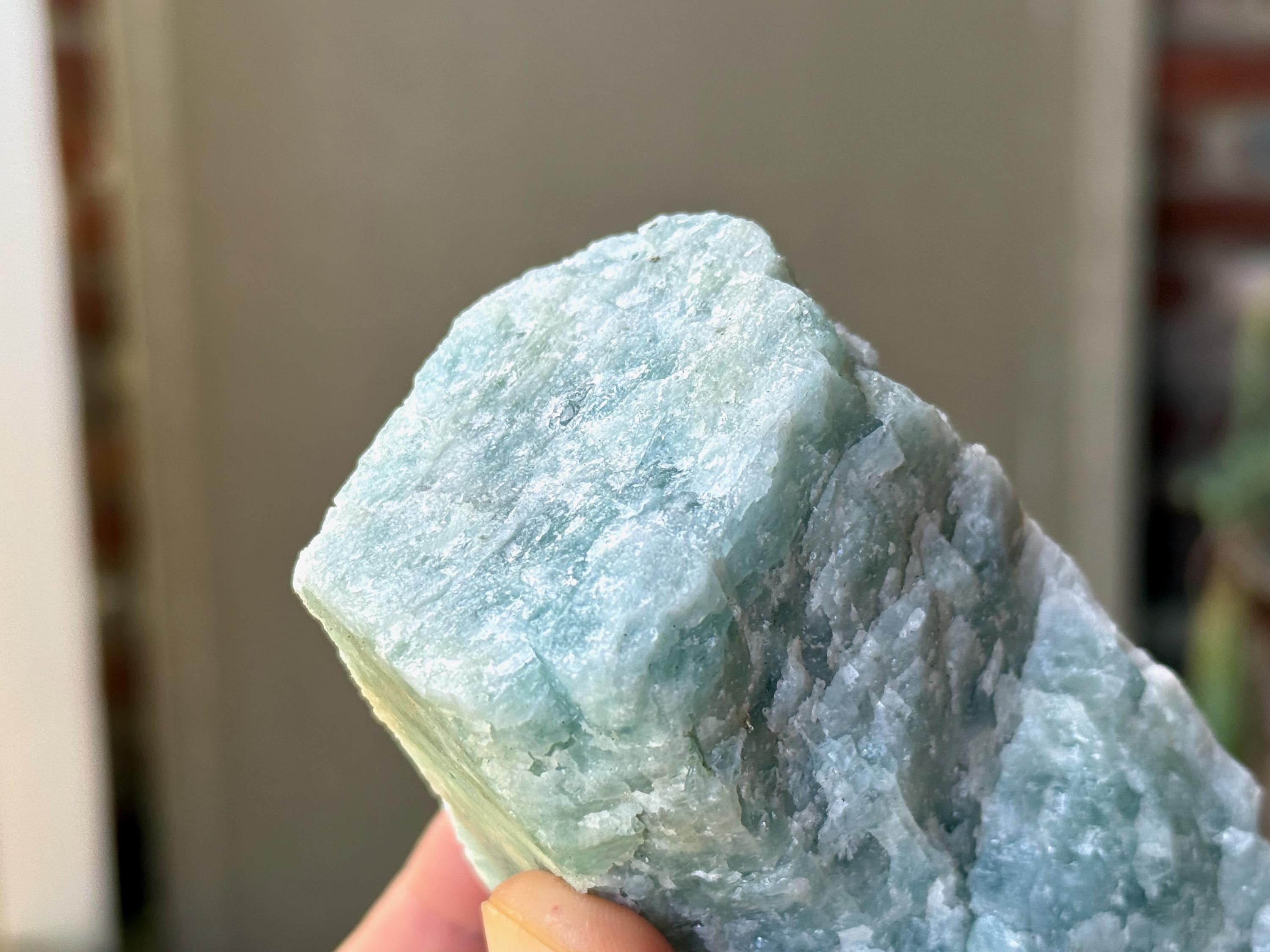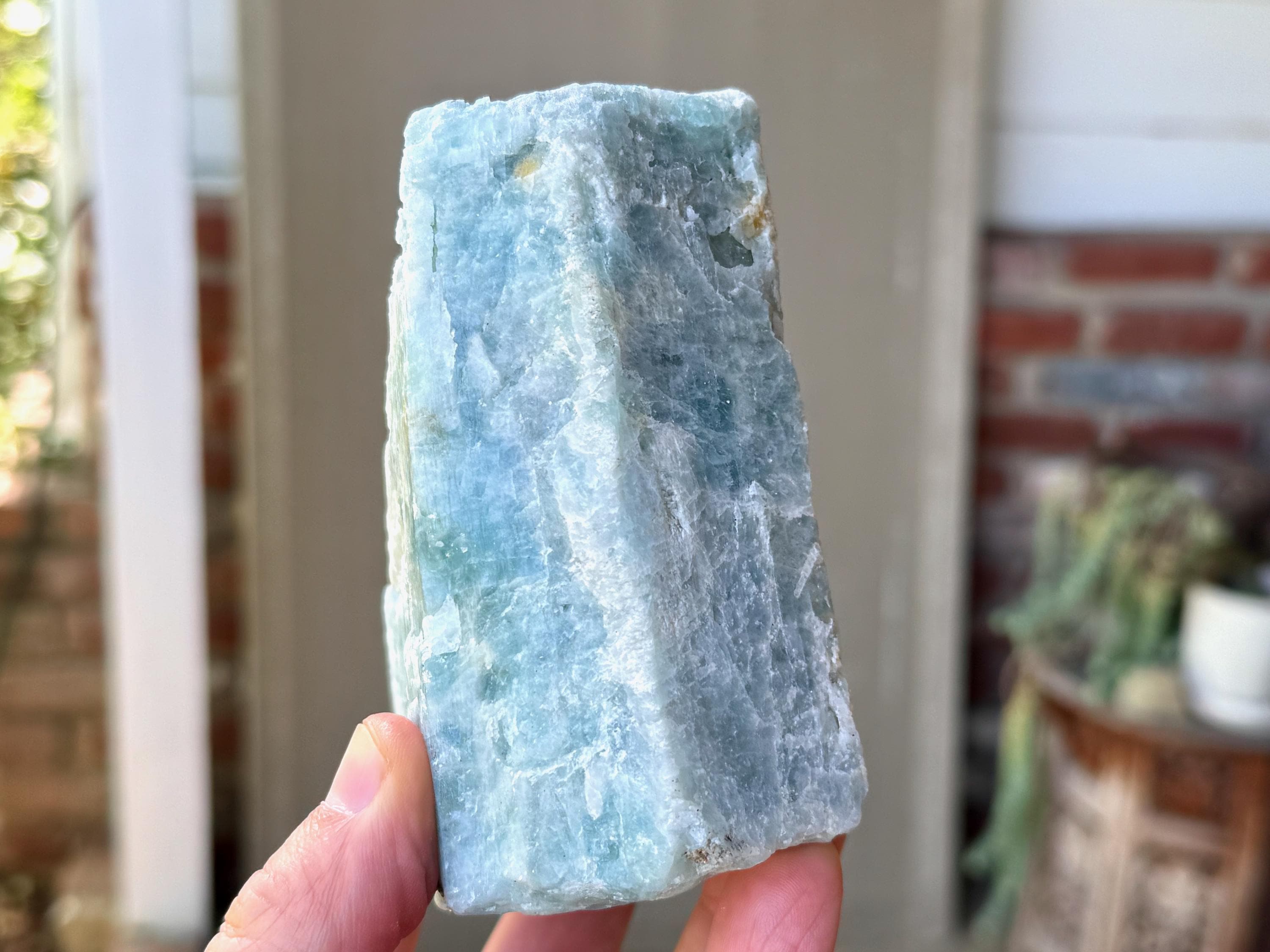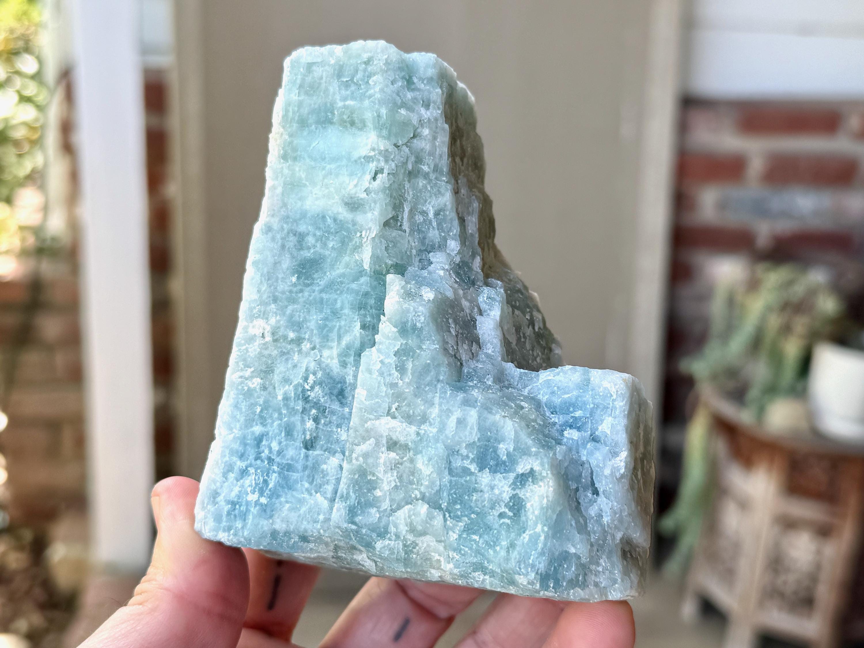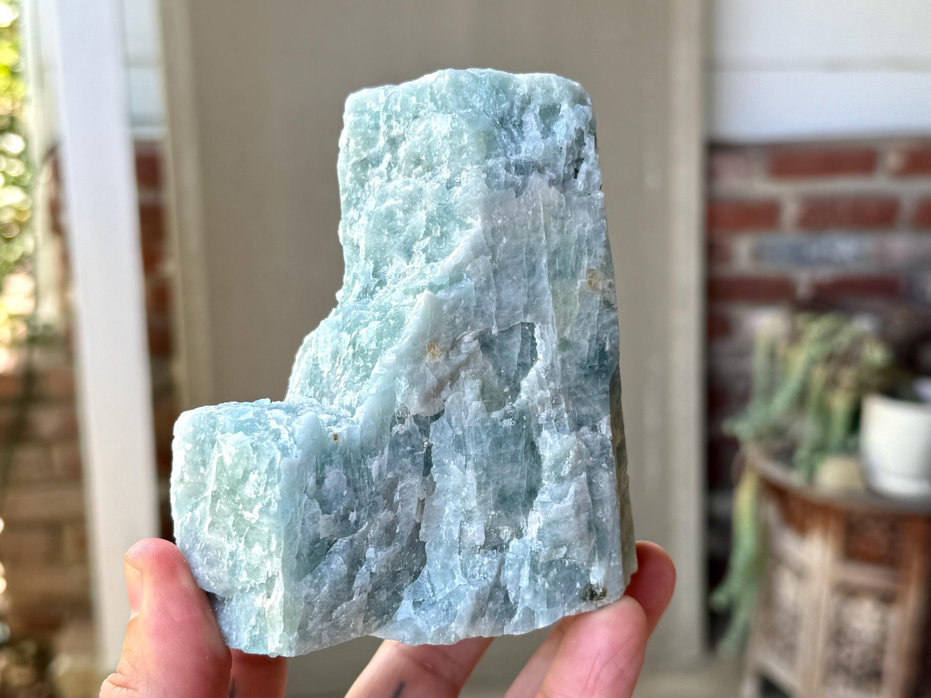 This natural Aquamarine crystal comes from a recent find in Bahia, Brazil. Aquamarine is the blue mineral in the Beryl family and is a powerful crystal for aiding in self-expression and emotional cleansing.