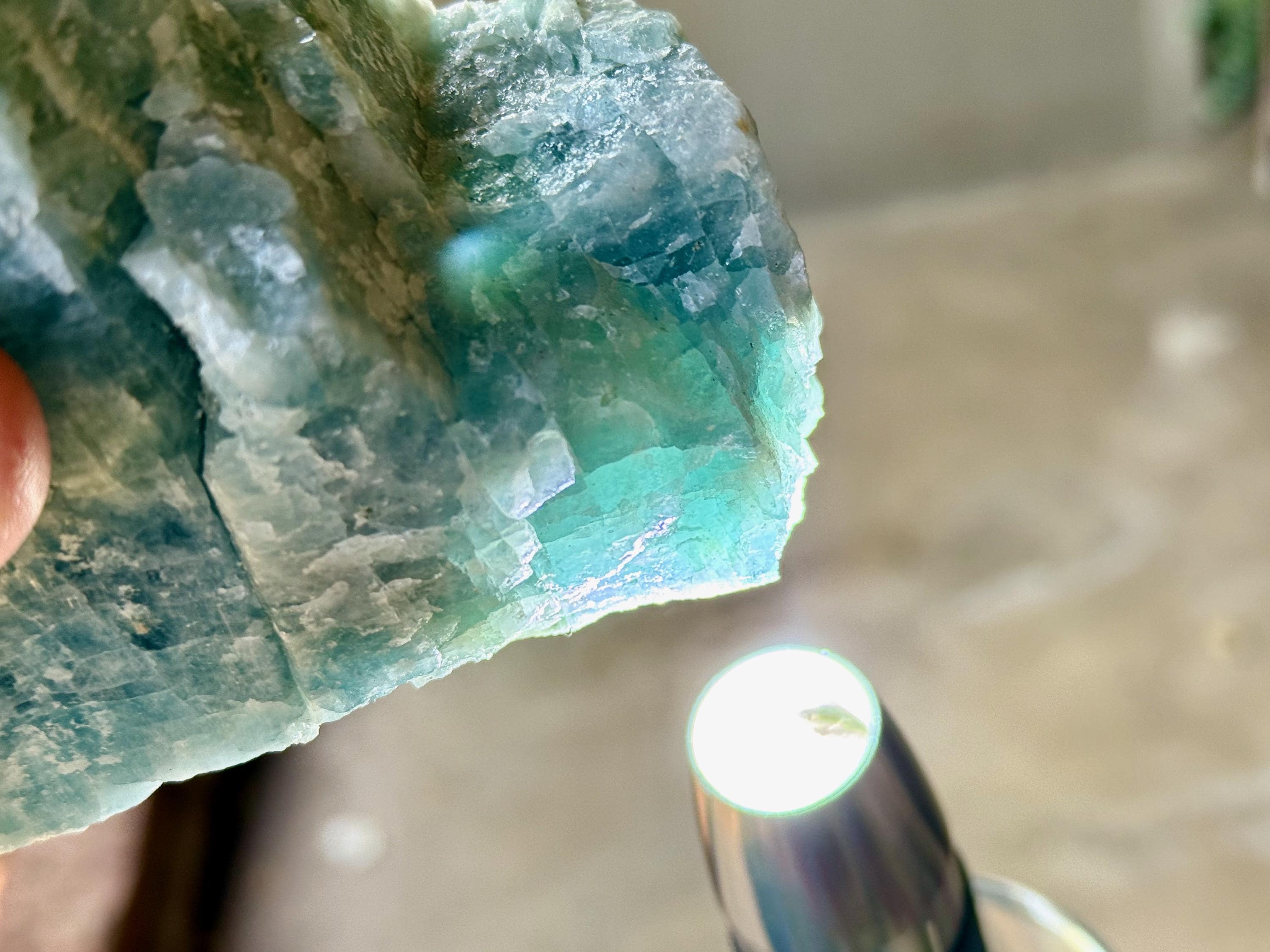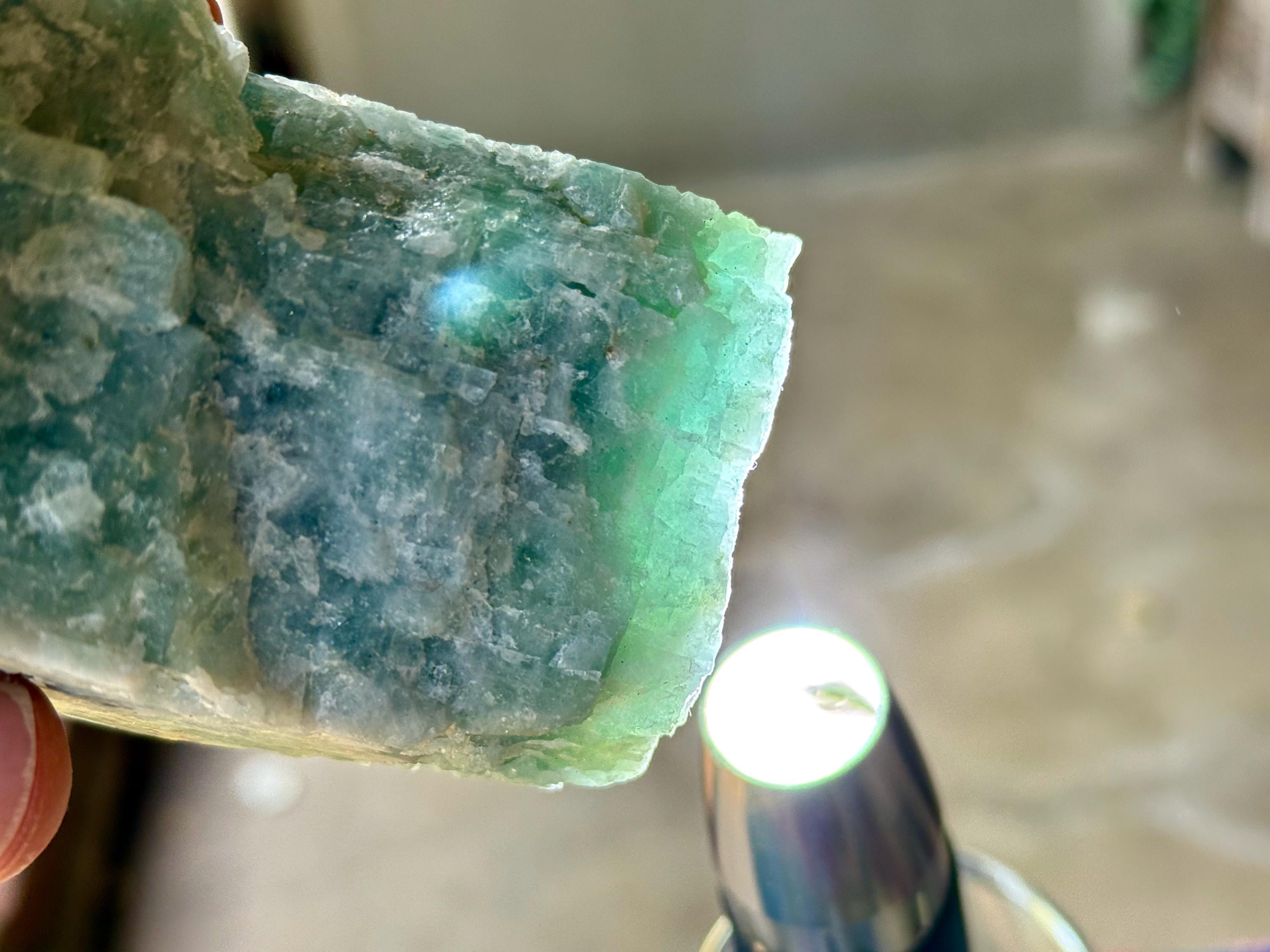This piece surprised us with some nice translucency around some of its edges when backlit (Photos 3-4). Nice, natural termination at the top to this one as well!