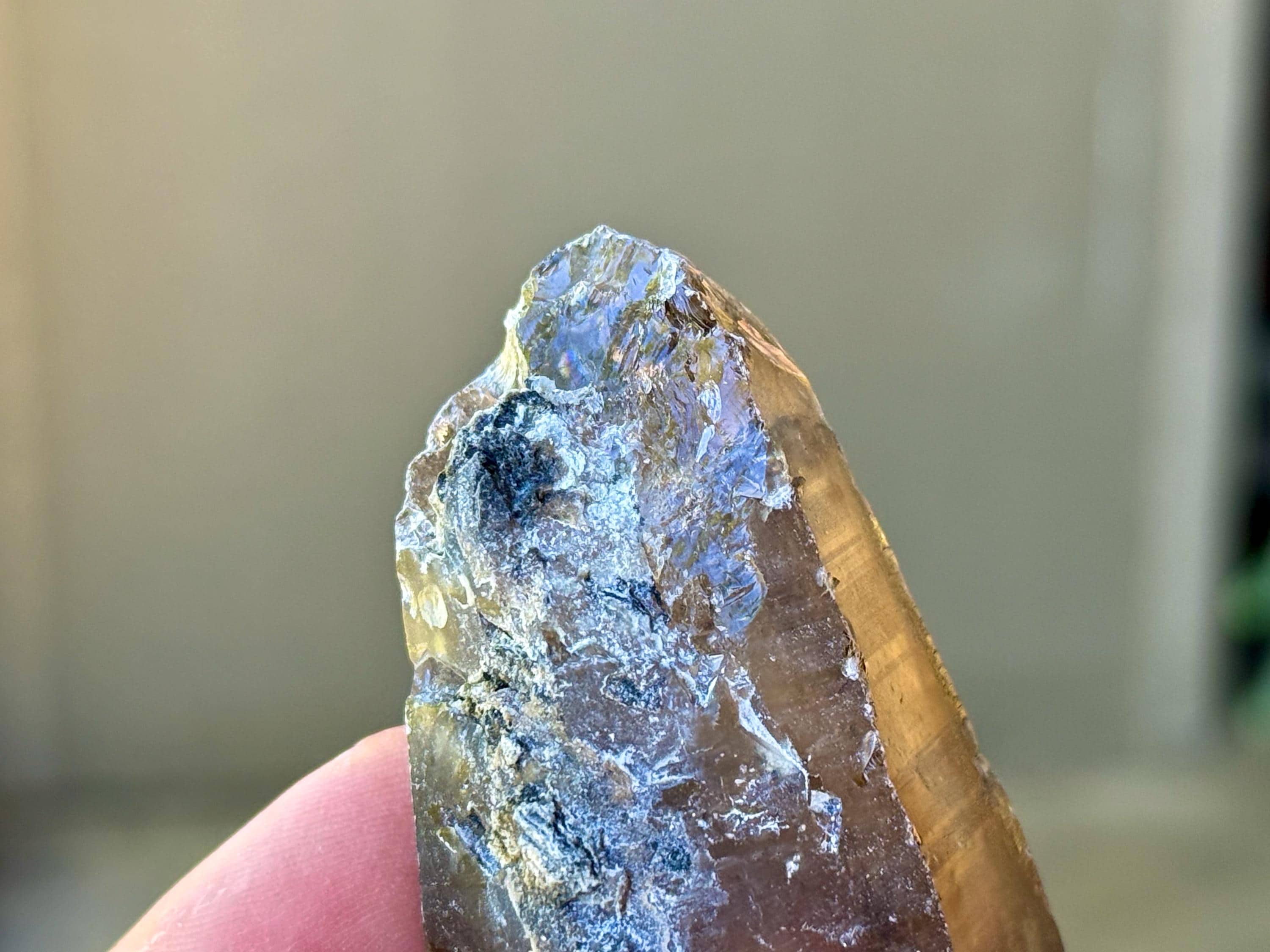 In terms of condition, this crystal has one or two minor dings to the body, and one large chip to the back-right side on the top of the crystal, which affects most of the termination (Photos 10-11).