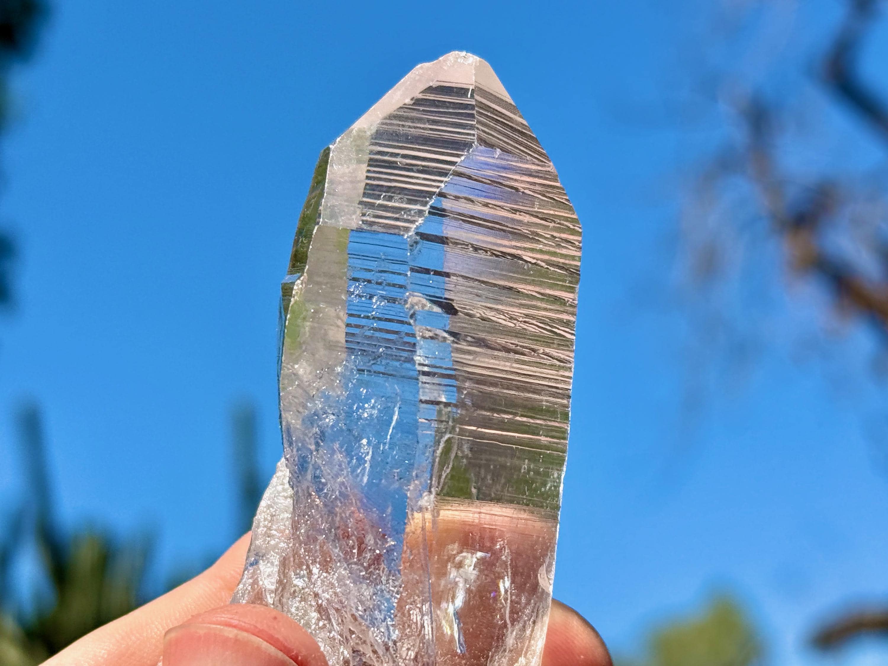 This exceptional Lemurian Quartz crystal comes from a 2023 find in Bahia, Brazil.