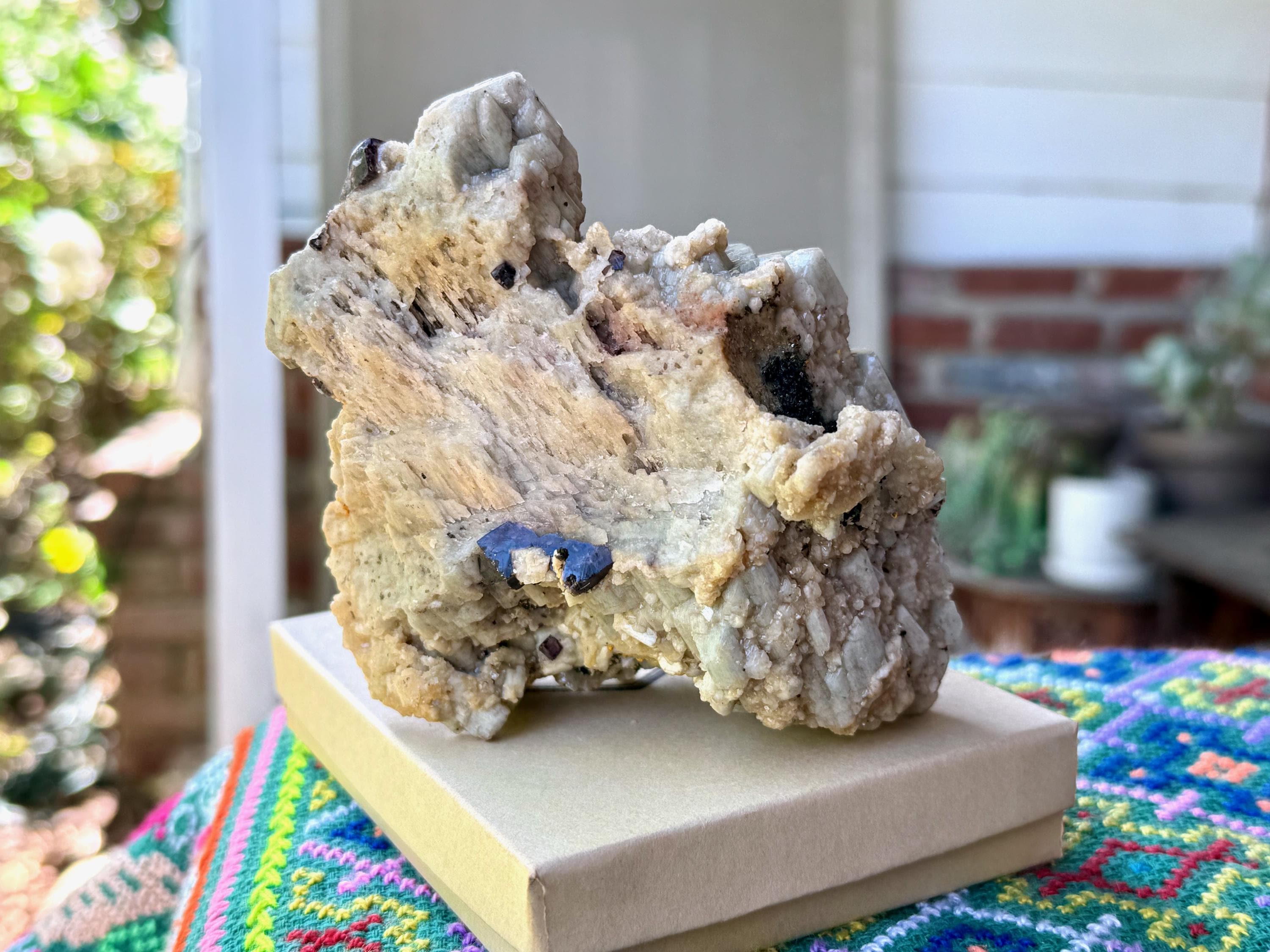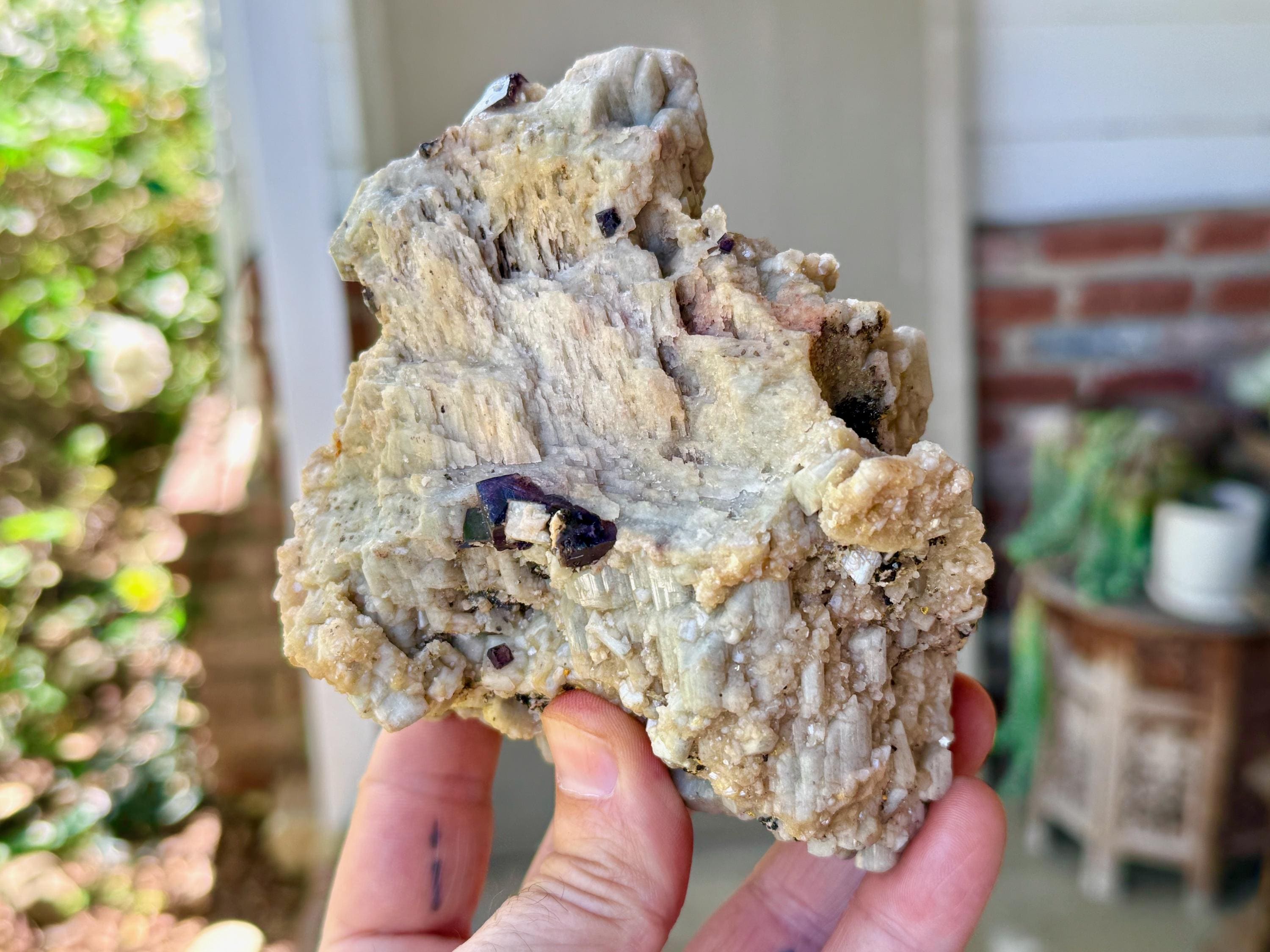 This natural Orthoclase Feldspar with Purple Fluorite inclusions comes from a 2024 find in Divino Das Laranjeiras (Divine of the Orange Trees), Minas Gerais, Brazil.