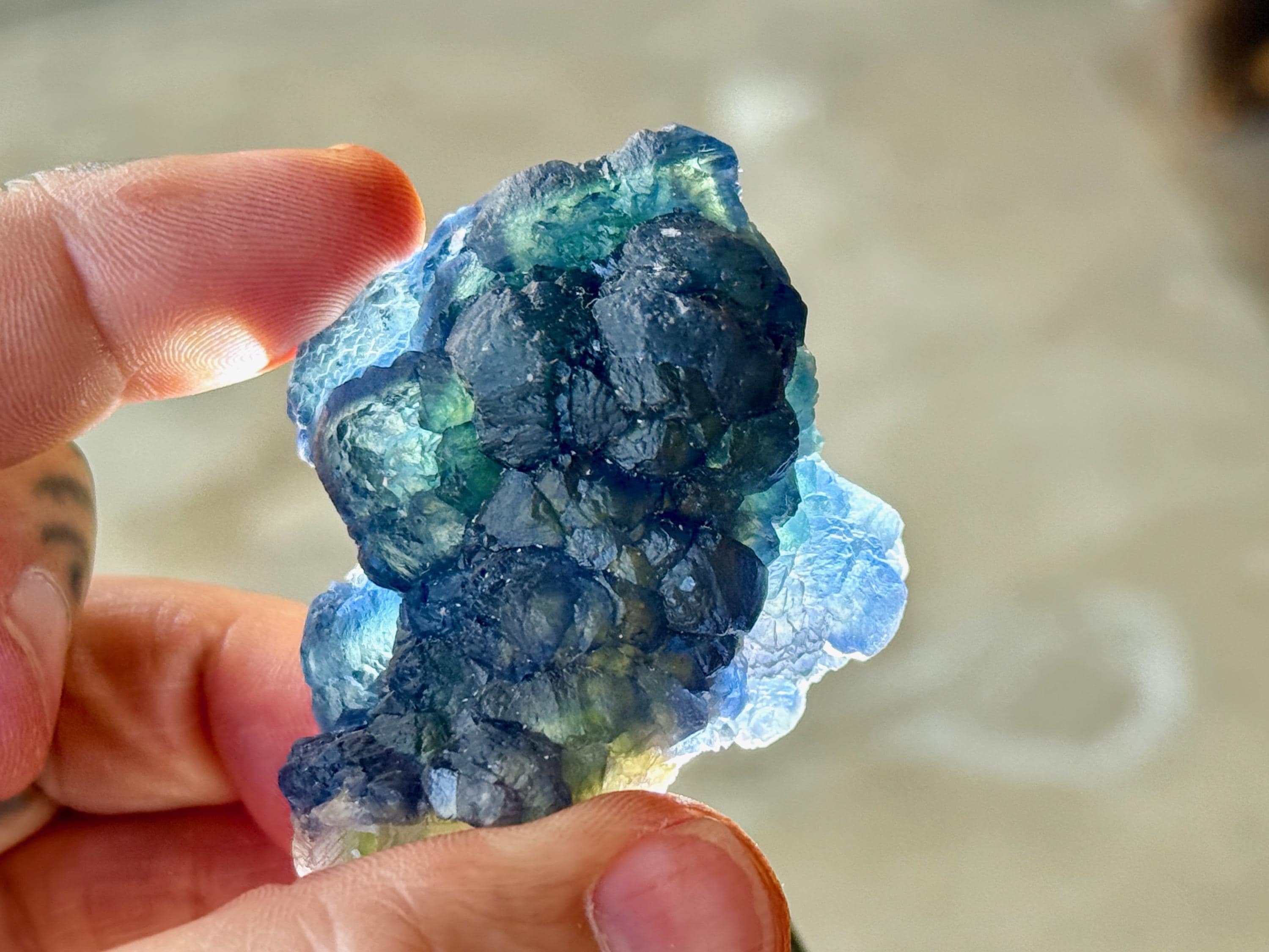 Blueberry Fluorite is a relatively new find (2010's) and distinctive for its vibrant, dark indigo-navy blue hues and octahedral formations. Energetically, it carries a calming and serene energy and is a wonderful ally for meditation.