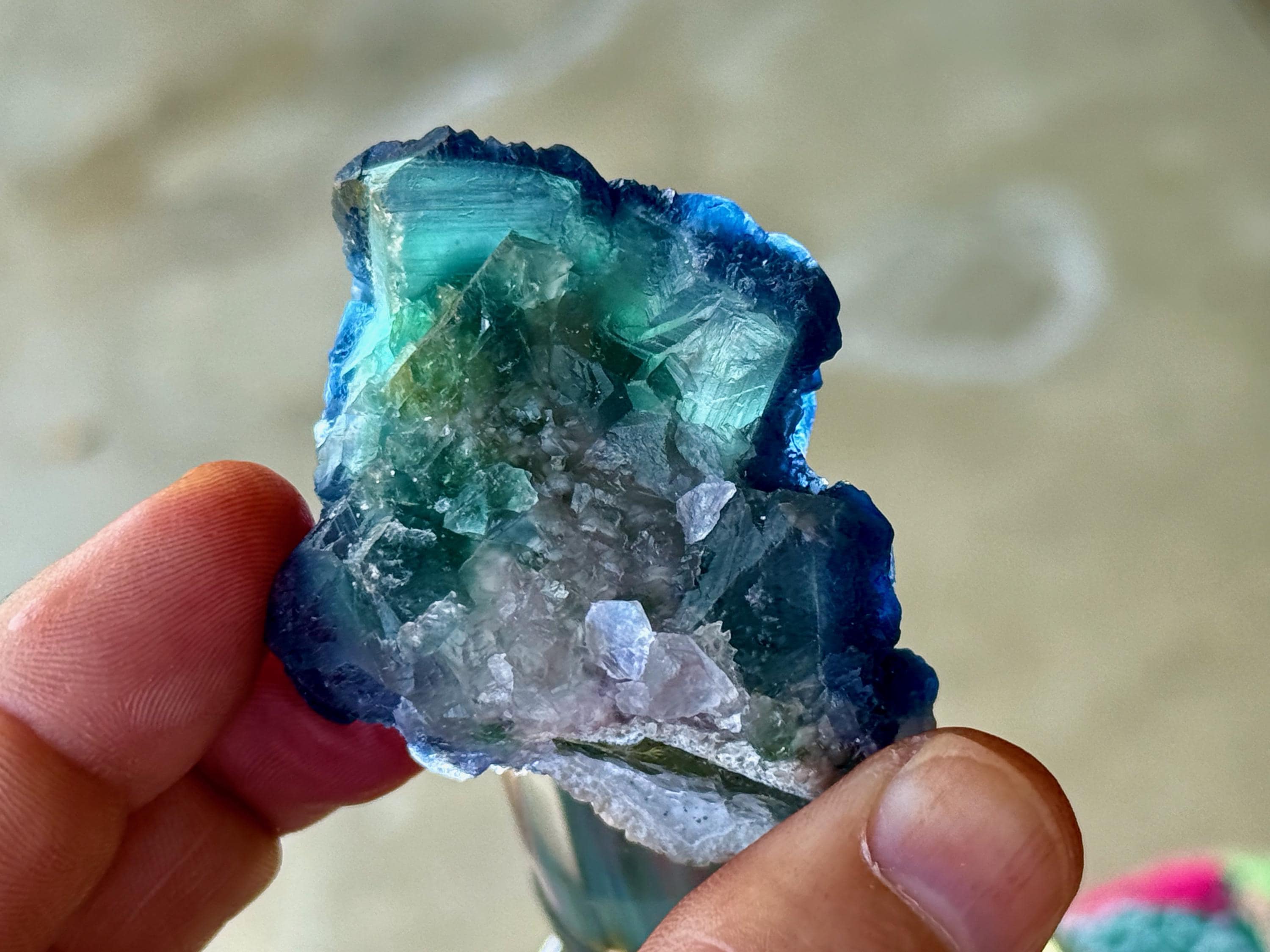 This exceptional Blueberry Fluorite Quartz crystal comes from a recent find in Inner Mongolia.