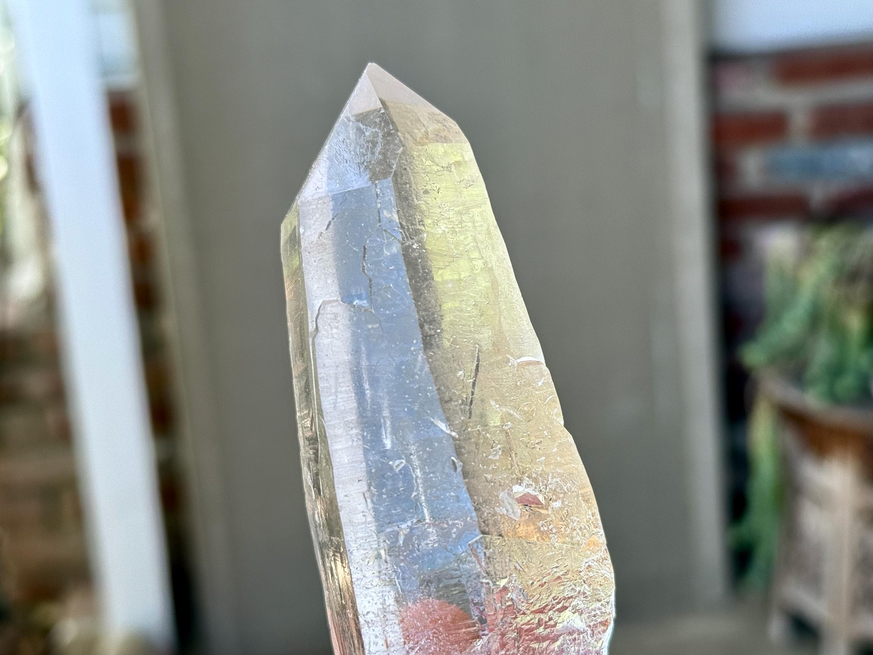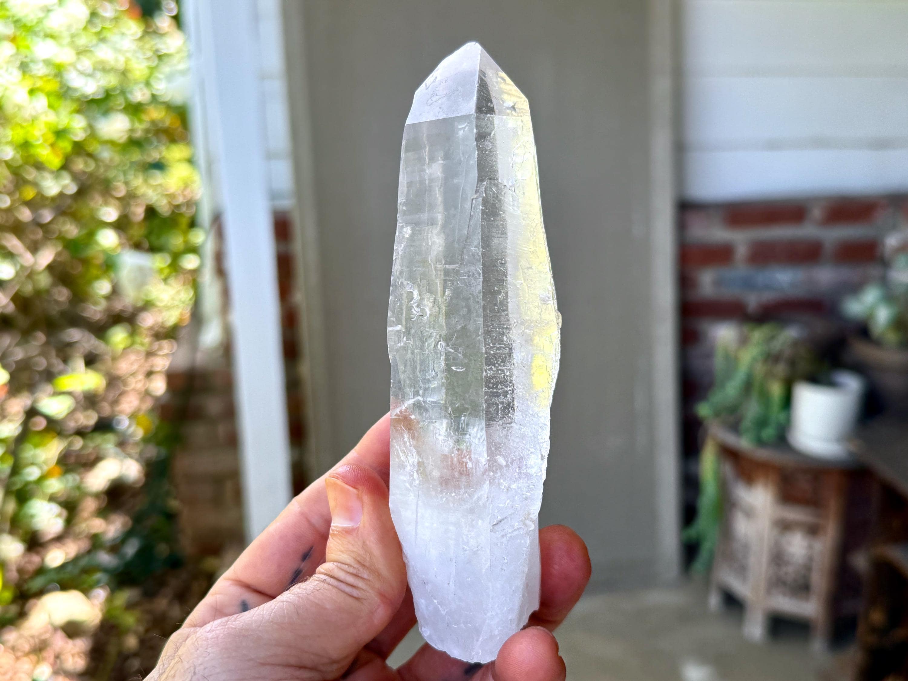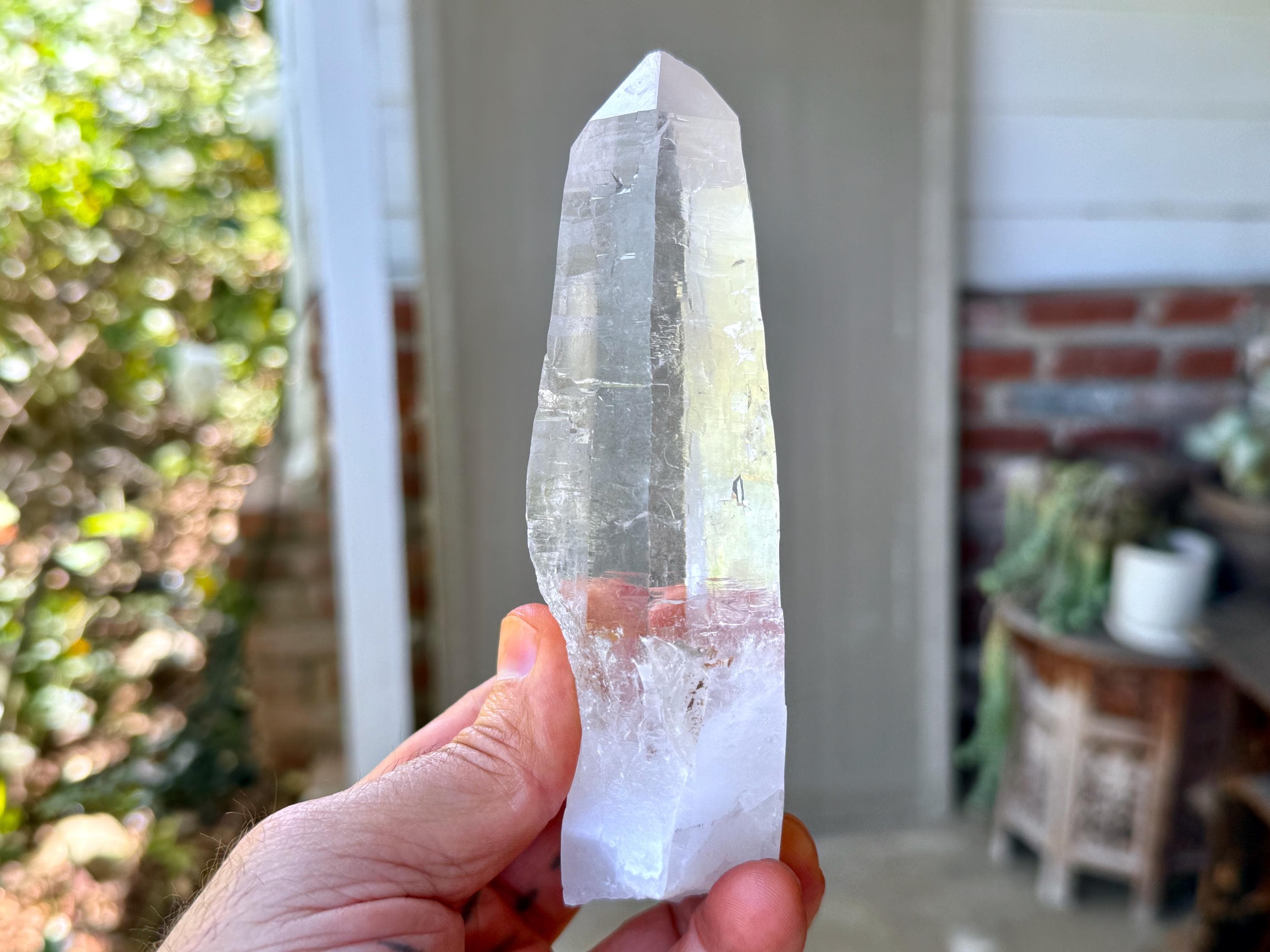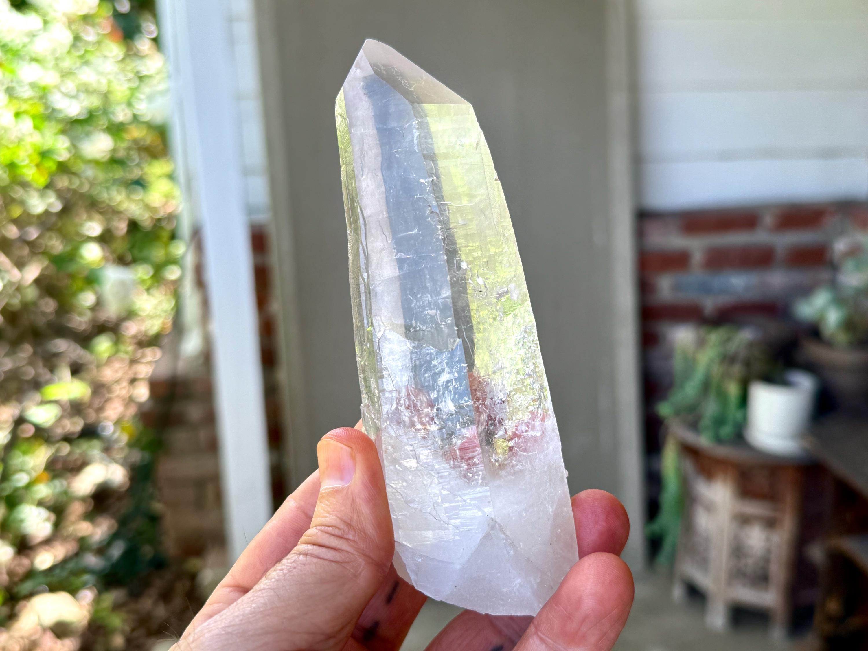 *Please note this crystal is clear and colorless. Any yellow hues in the photos are a result of the natural sunlight or surrounding environment reflecting off the crystal.