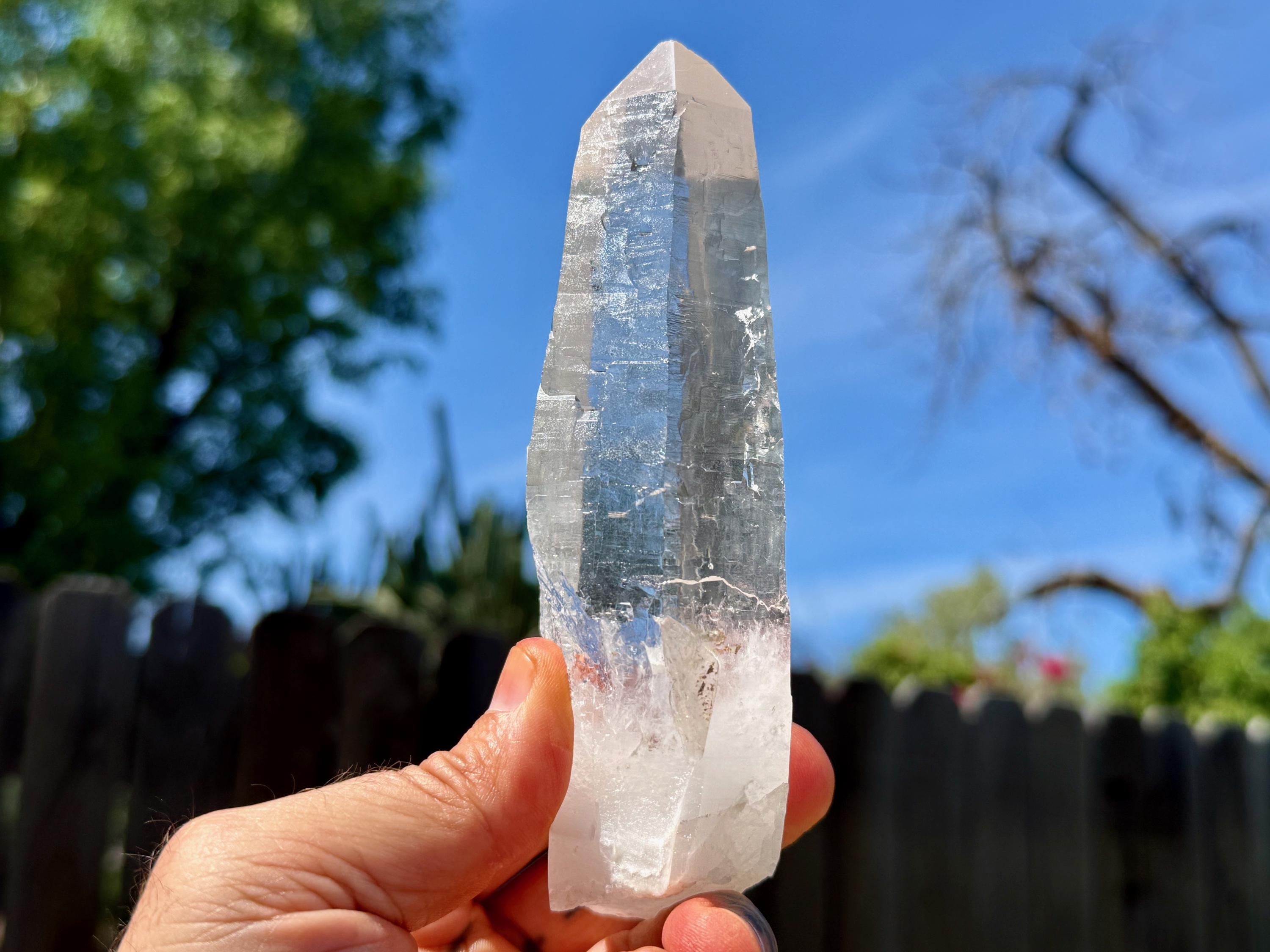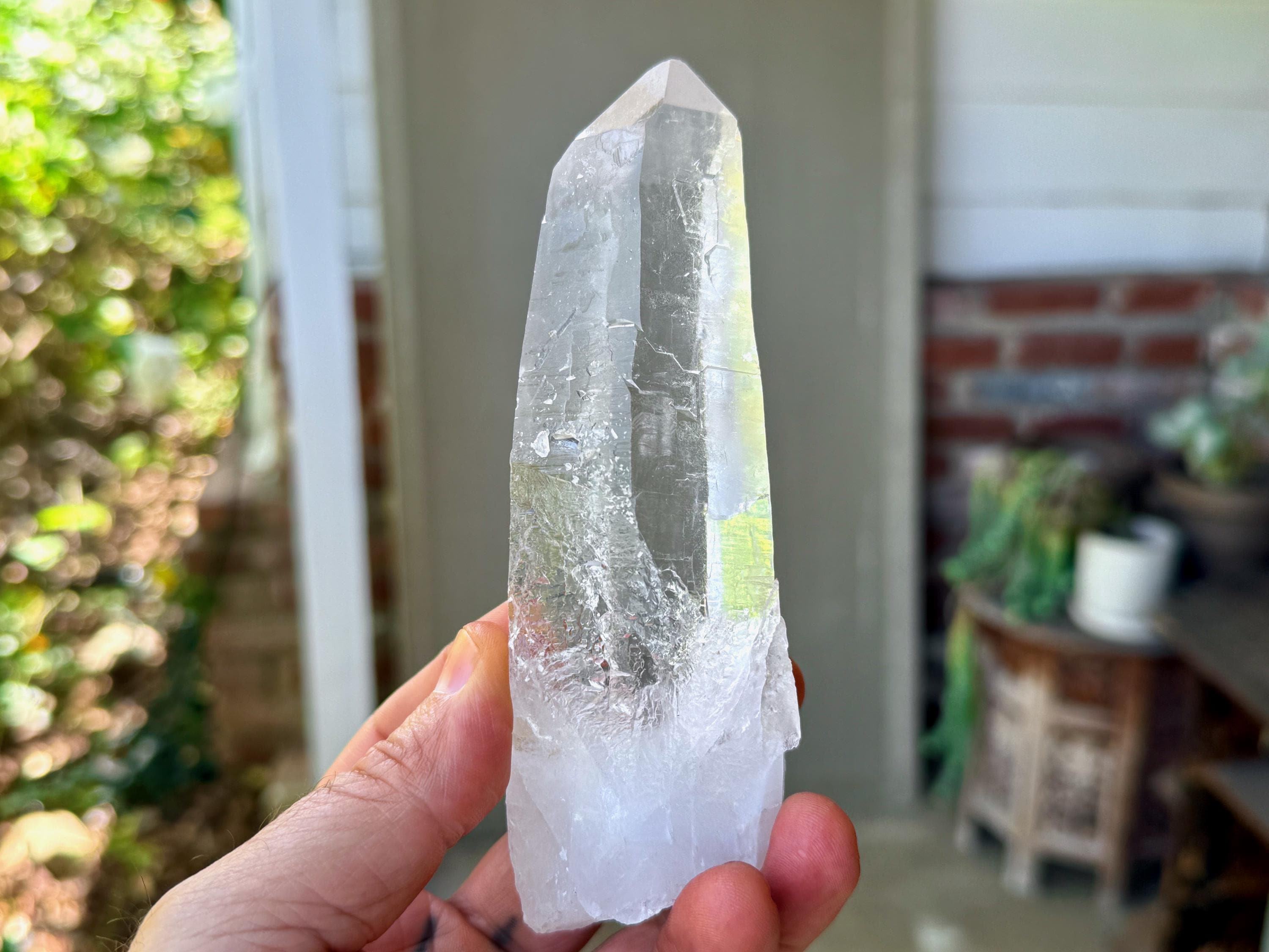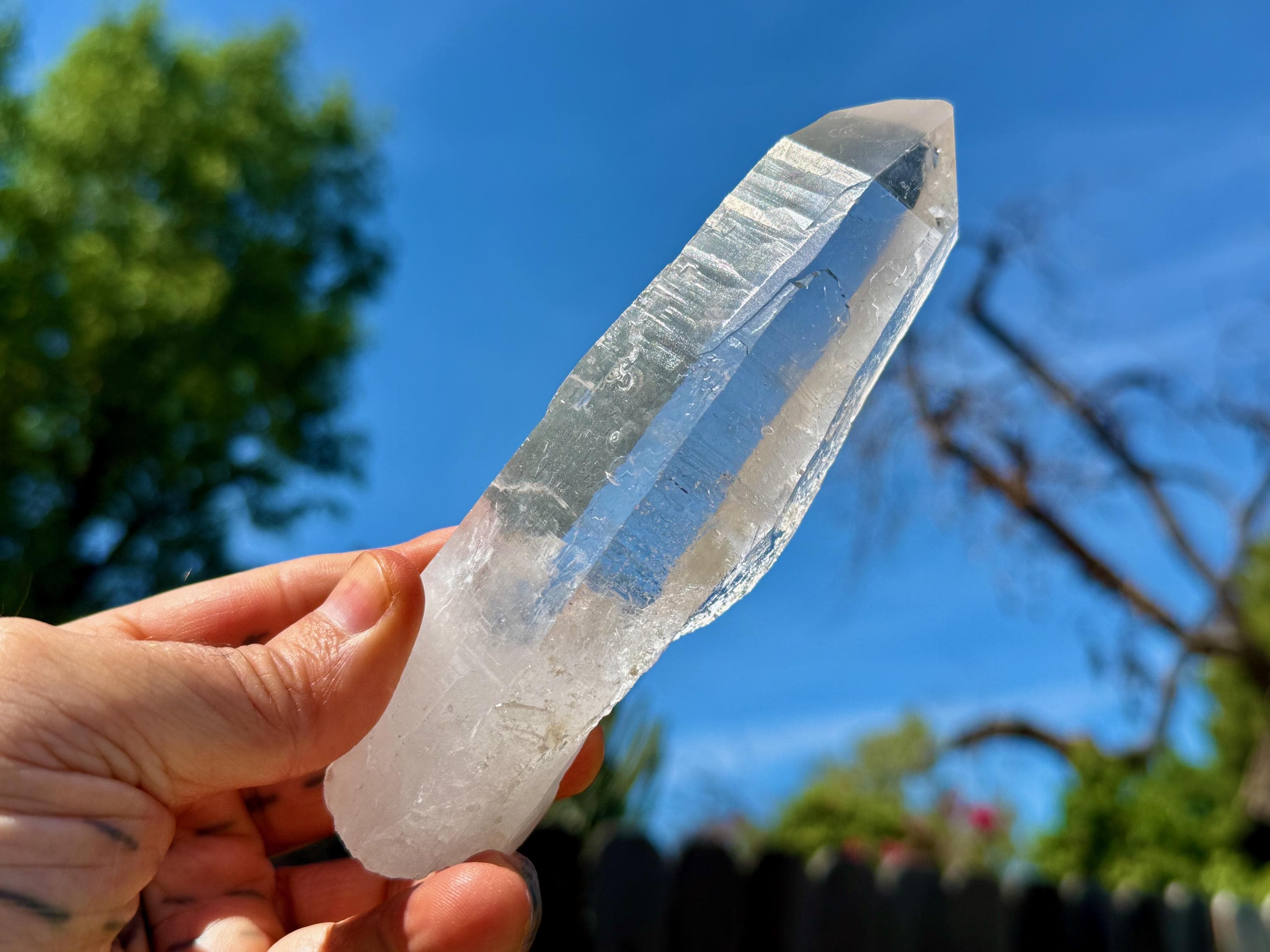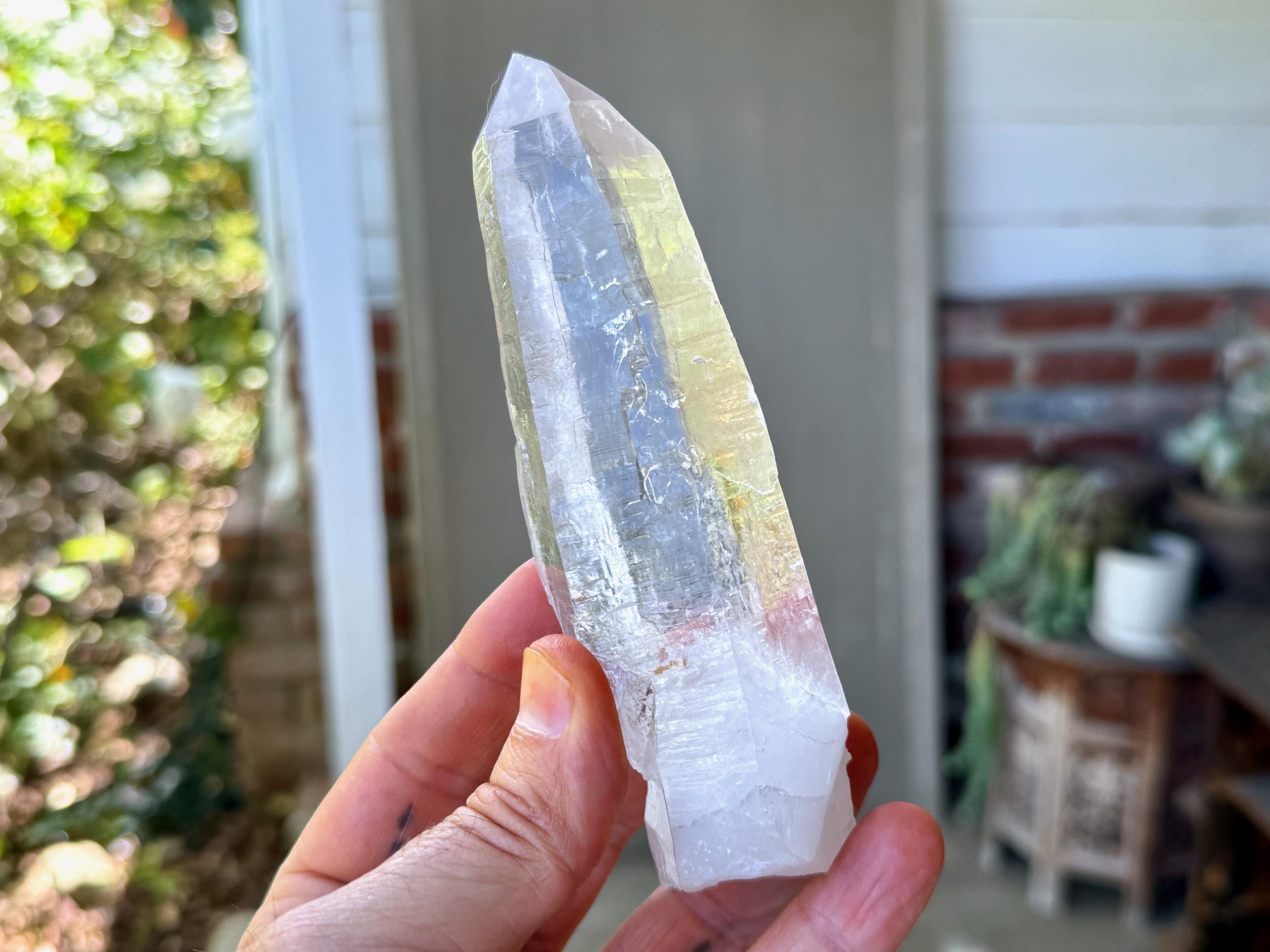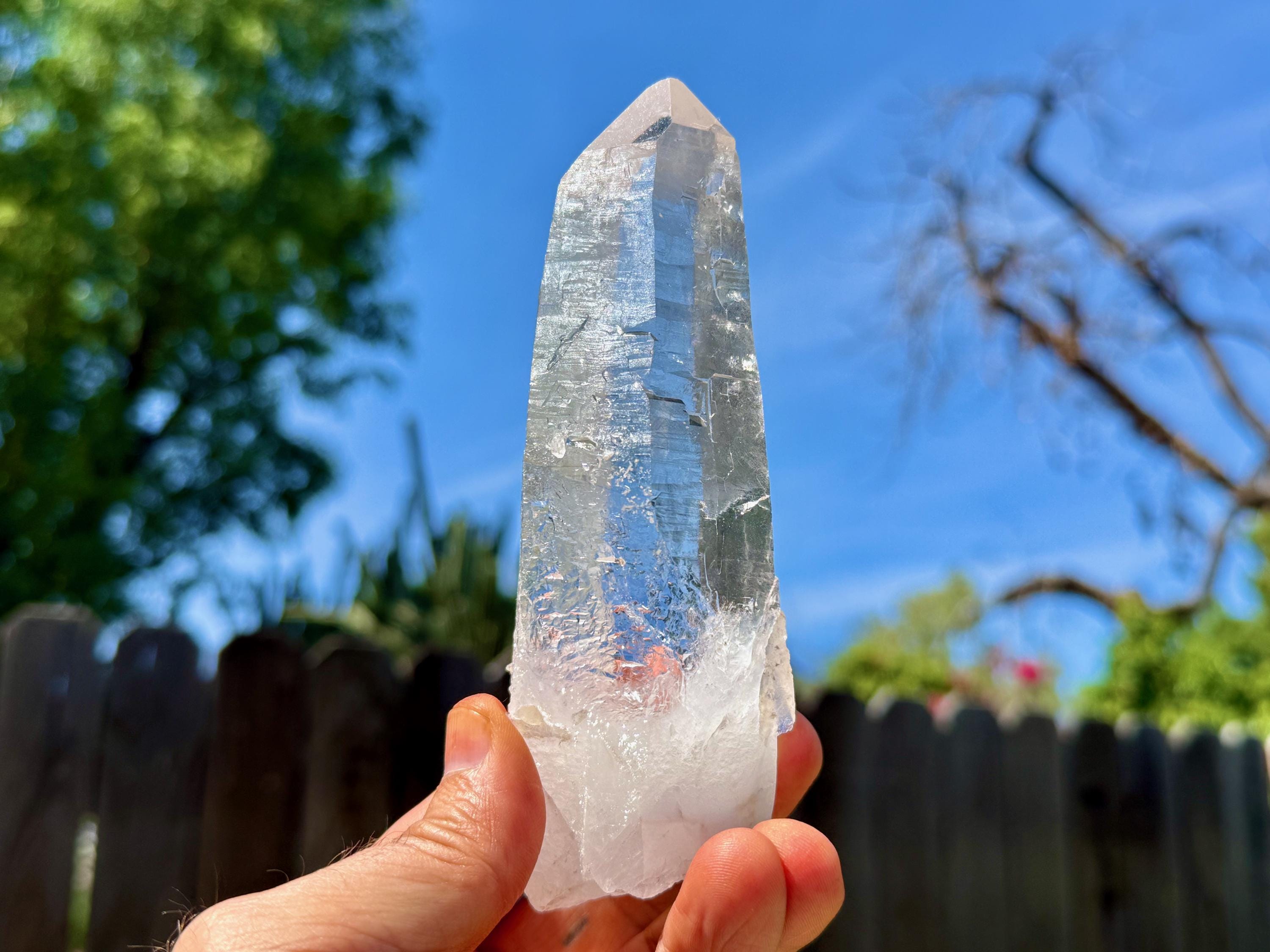 *Please note this crystal is clear and colorless. Any yellow hues in the photos are a result of the natural sunlight or surrounding environment reflecting off the crystal.