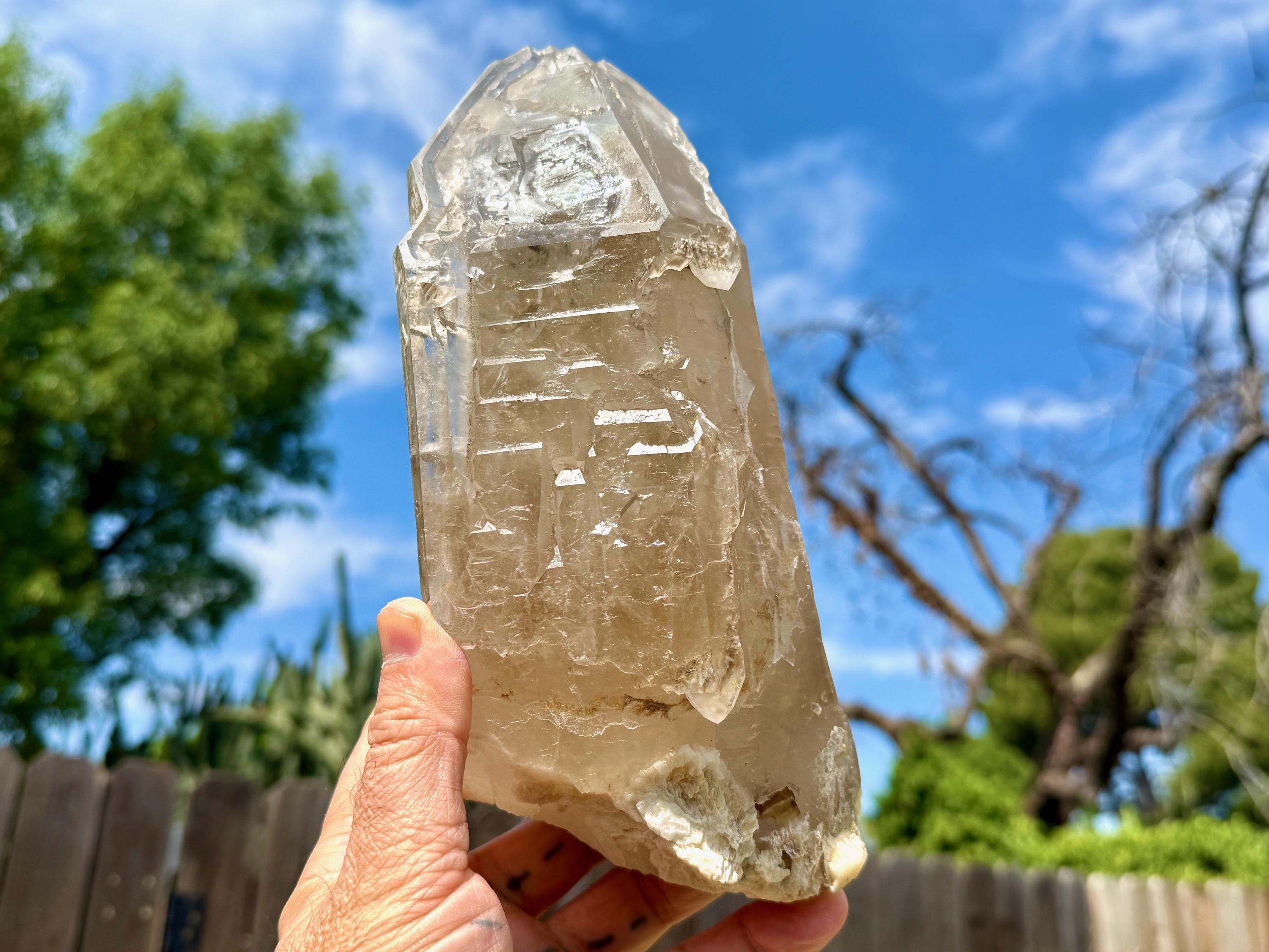 Trigonic Quartz refers to crystals that have "trigons" or upside down triangles deeply etched into the face of the crystal. They are similar to Record Keepers, except Record Keepers are upright triangles and trigons are pointing downward.