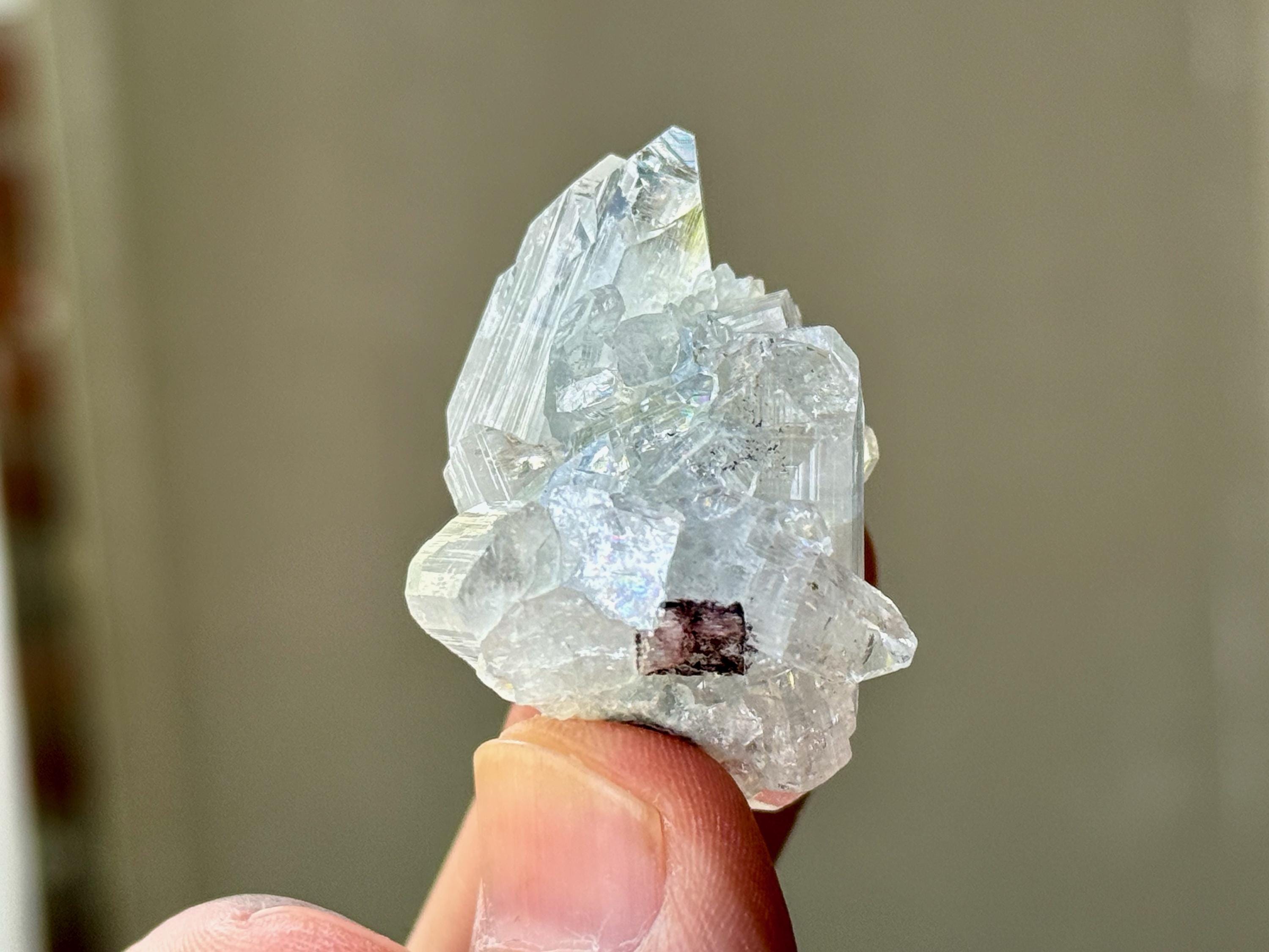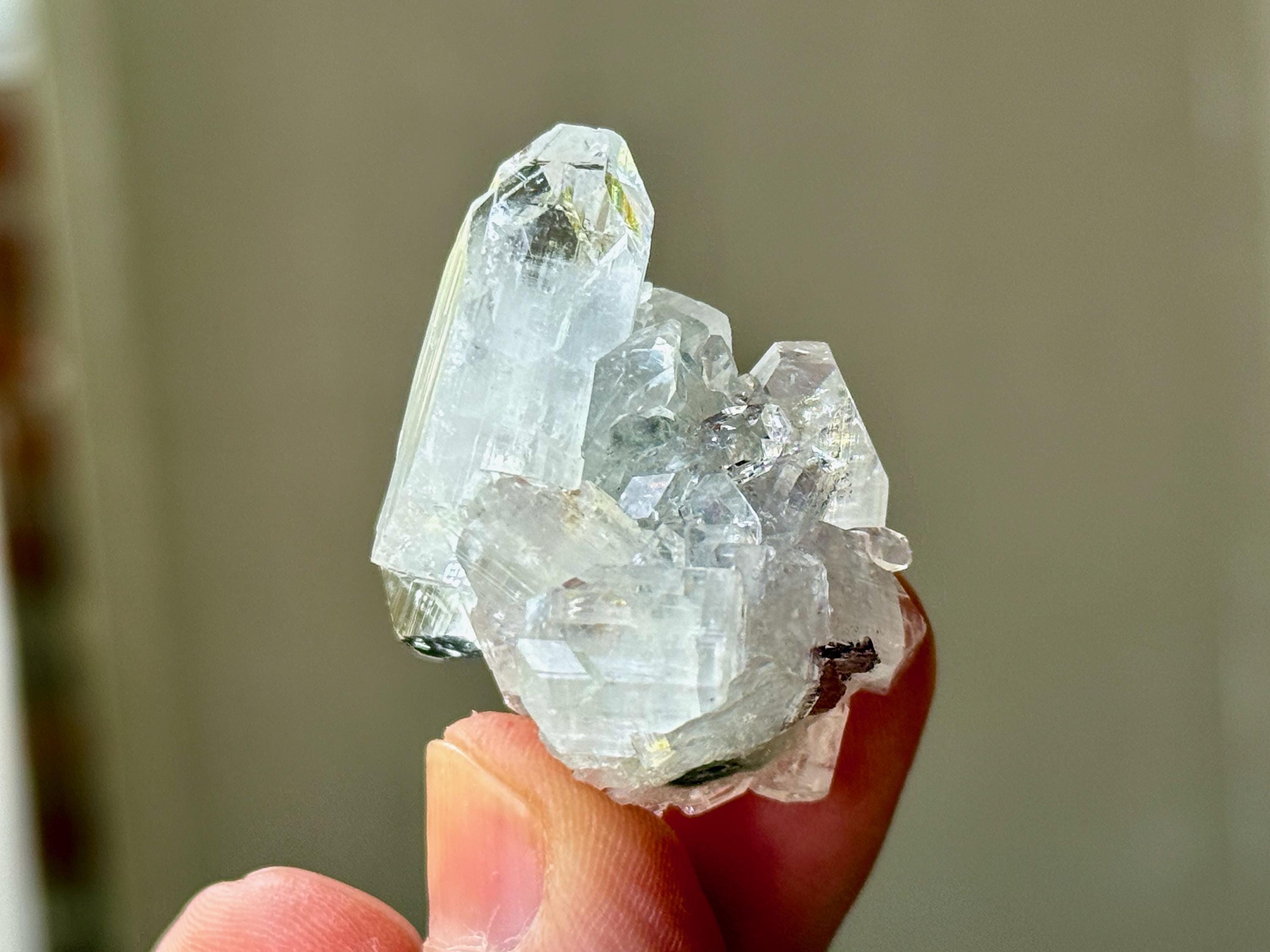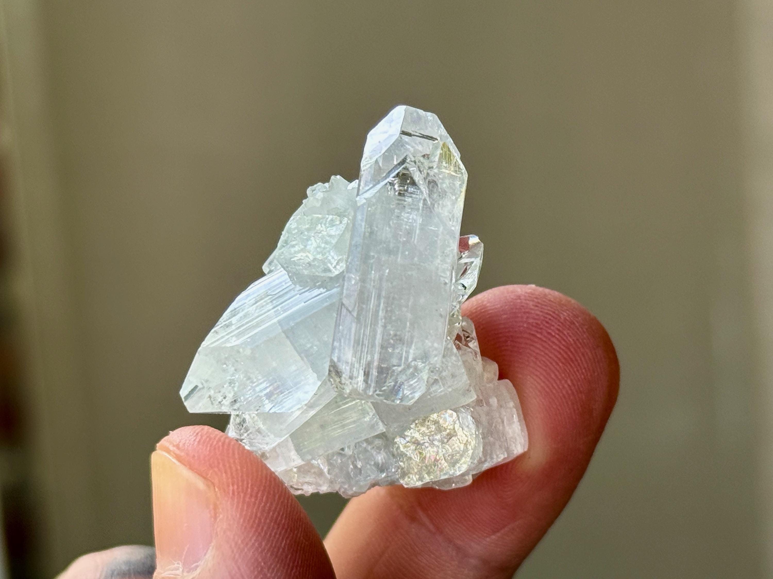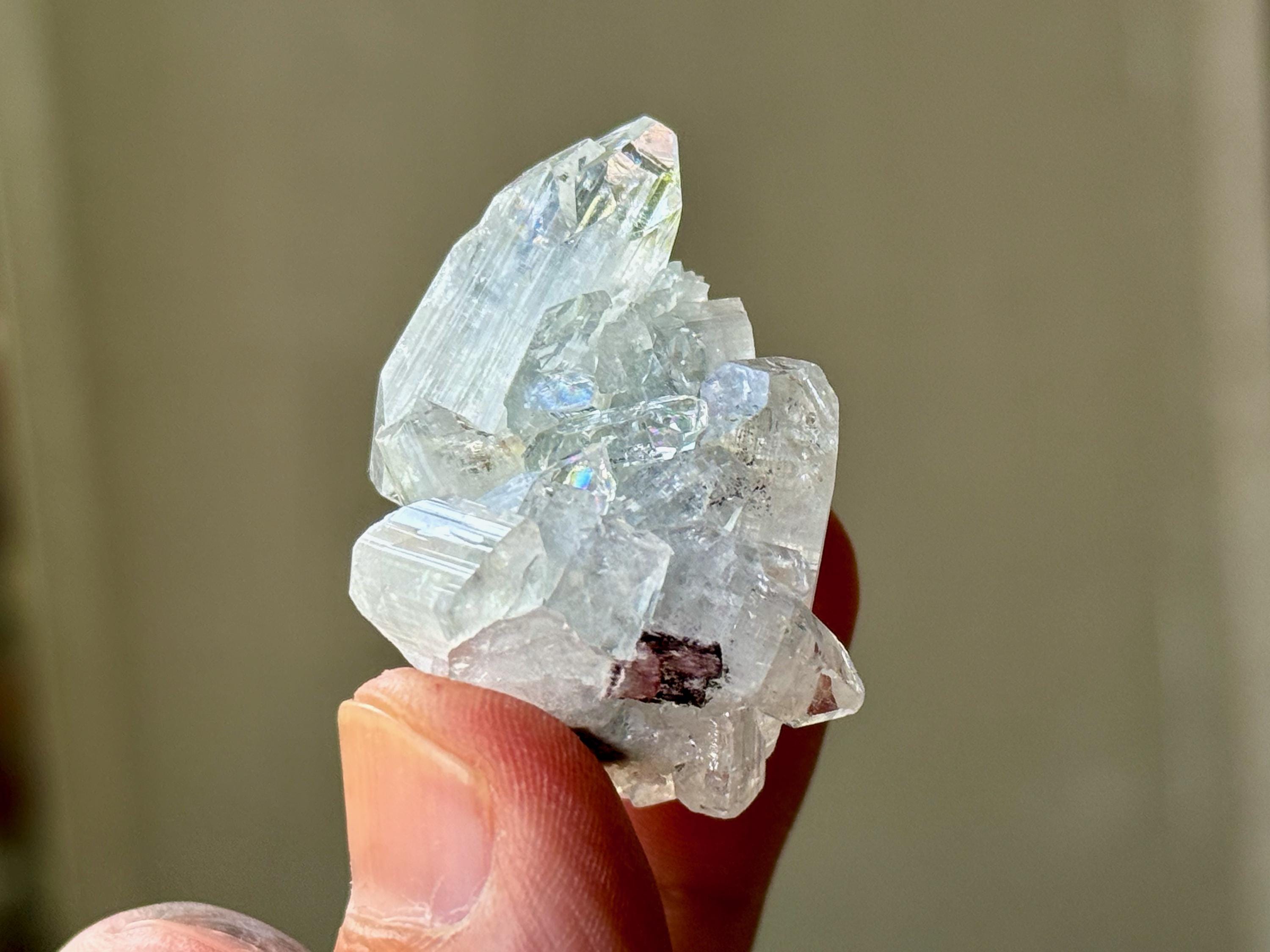 A supremely ethereal quality to this stunning Apophyllite Quartz crystal! This is a cluster formation that possesses superb clarity and brilliant luster, with tiny rainbows that flash in the light. Excellent terminations to this one as well.