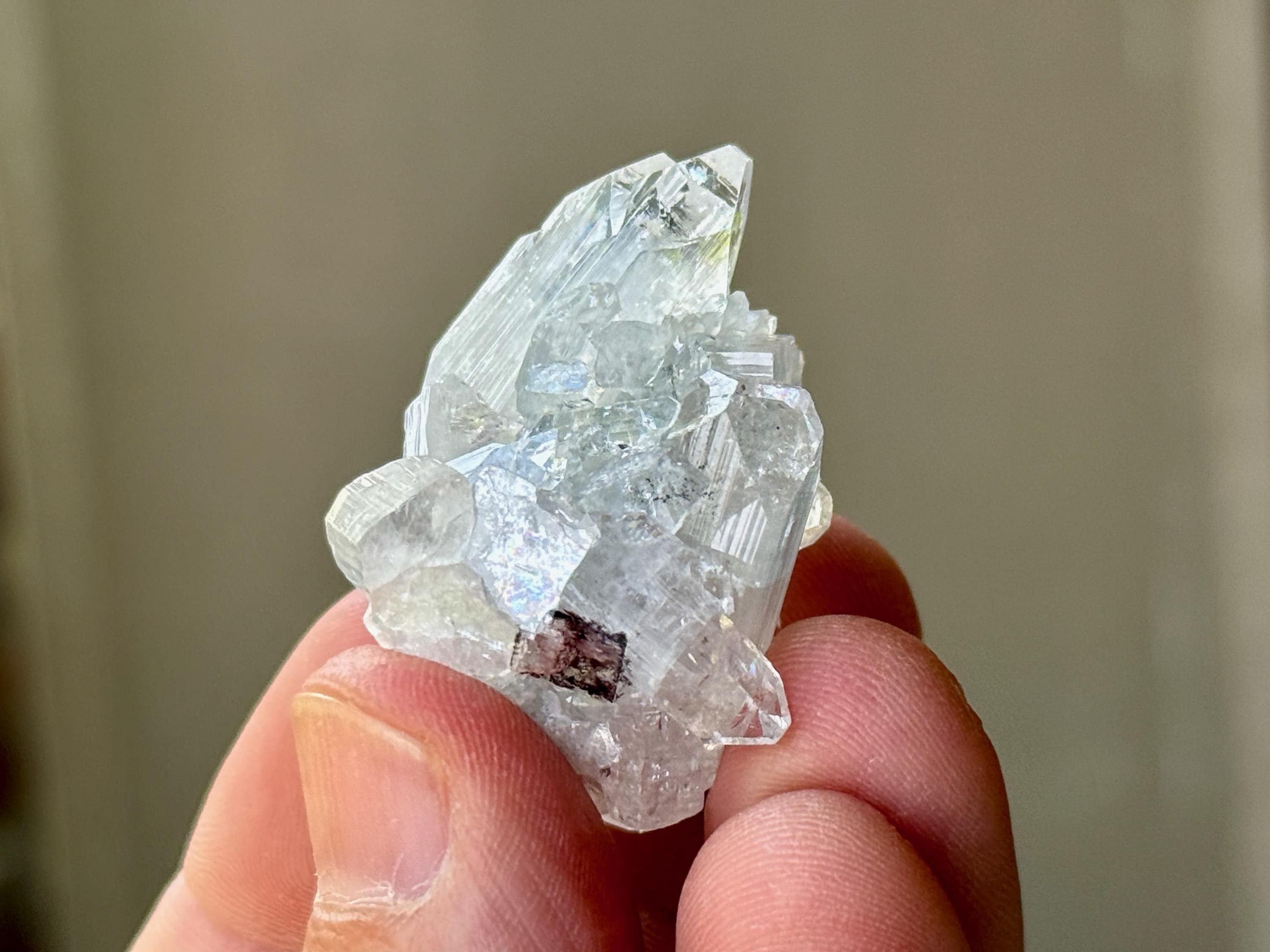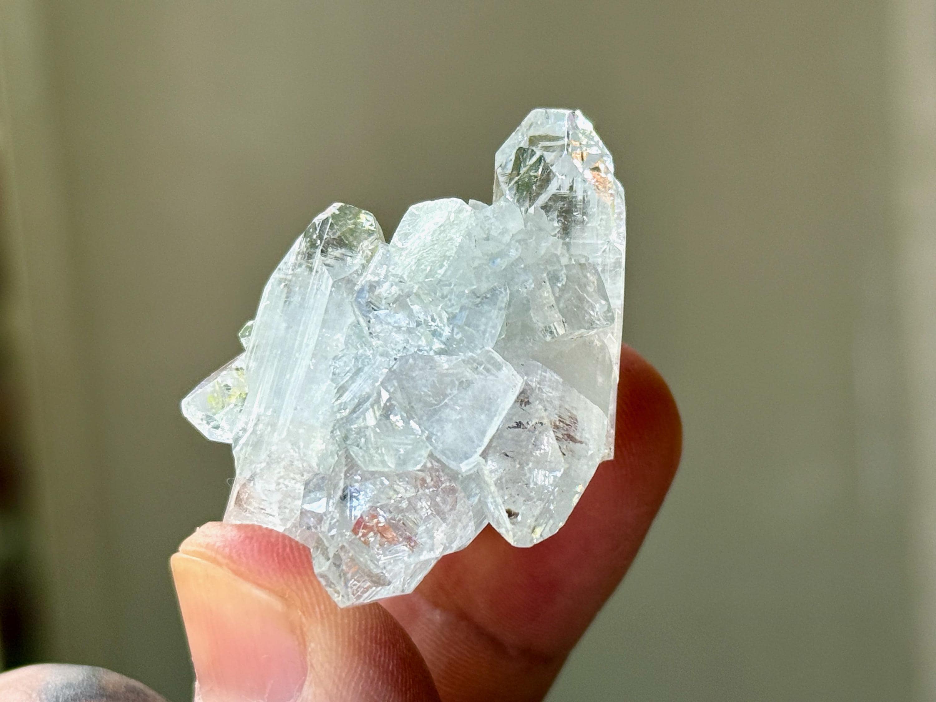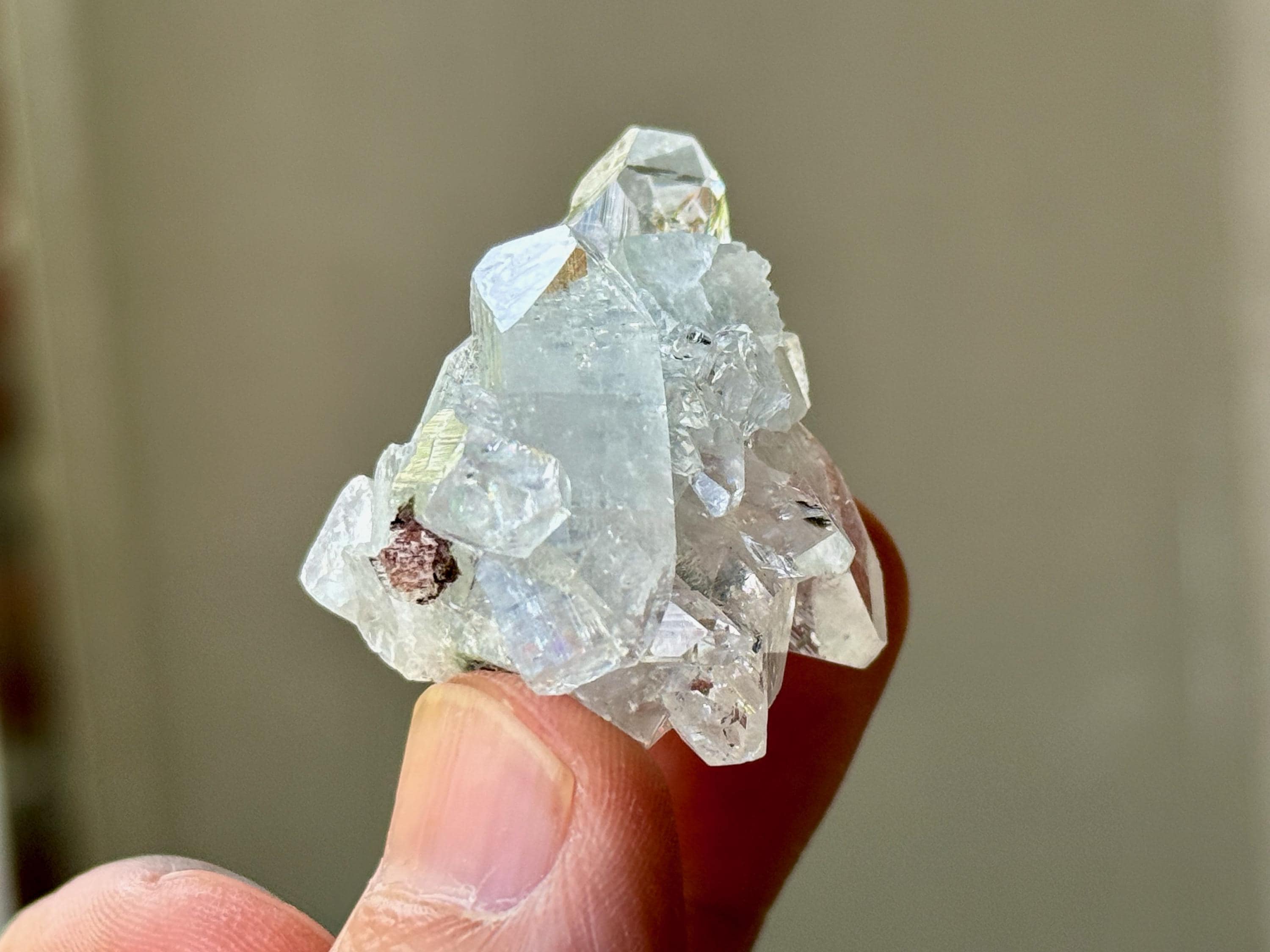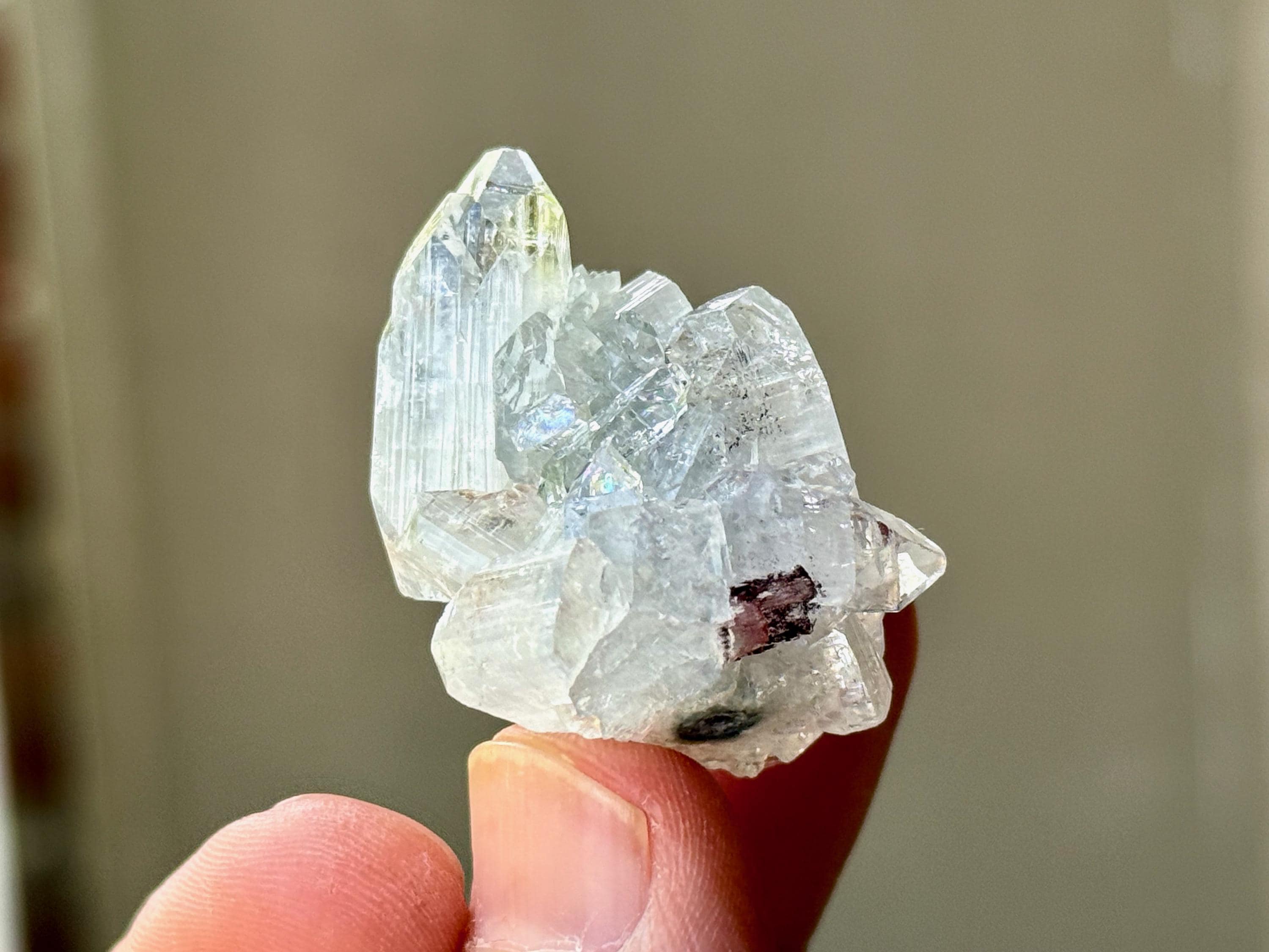 A supremely ethereal quality to this stunning Apophyllite Quartz crystal! This is a cluster formation that possesses superb clarity and brilliant luster, with tiny rainbows that flash in the light. Excellent terminations to this one as well.