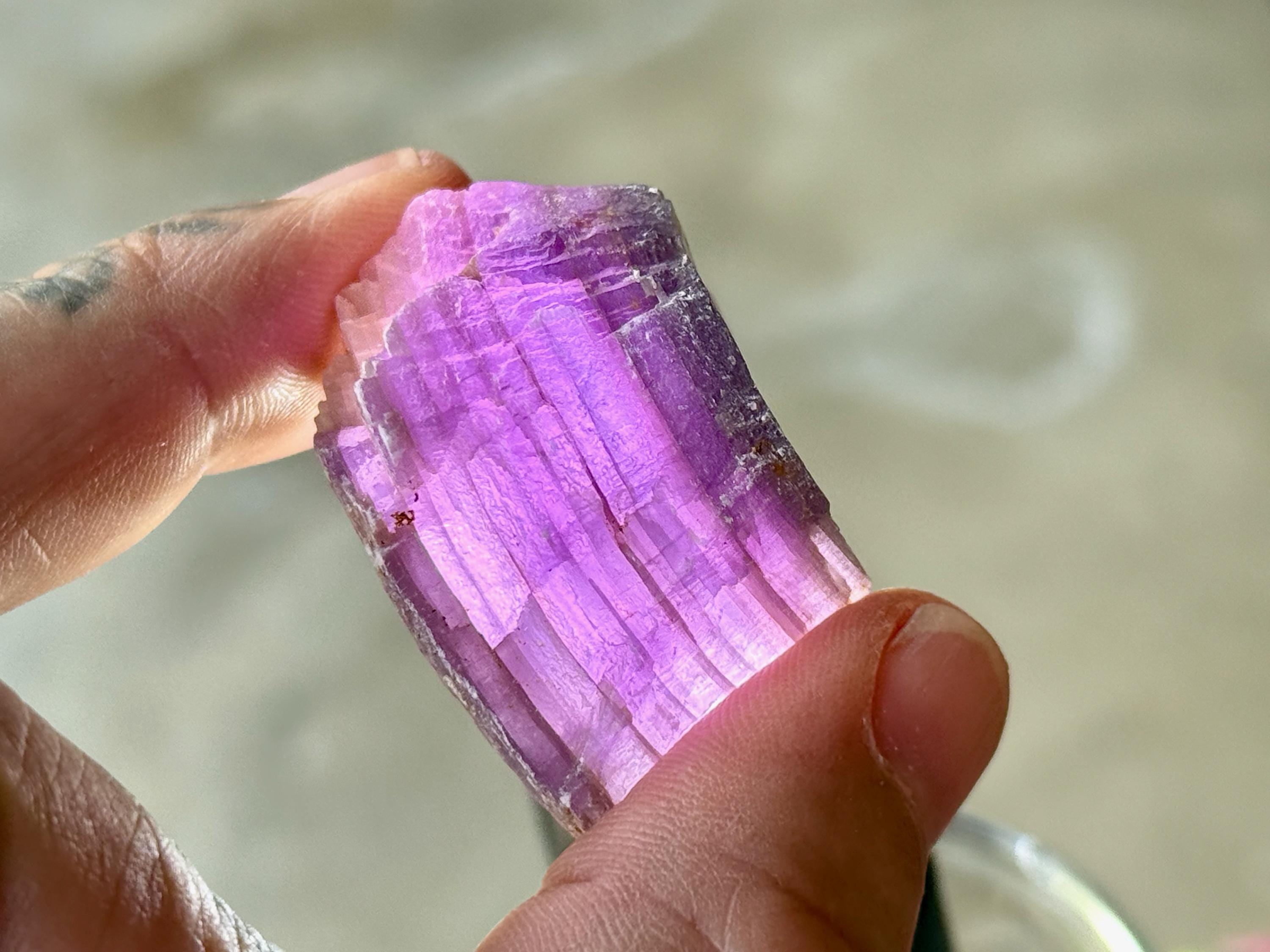 These natural Purple Lepidolite crystals come from a recent find in Minas Gerais, Brazil. Lepidolite is a lithium-rich mineral that has a strong relaxing, balancing and calming effect.
