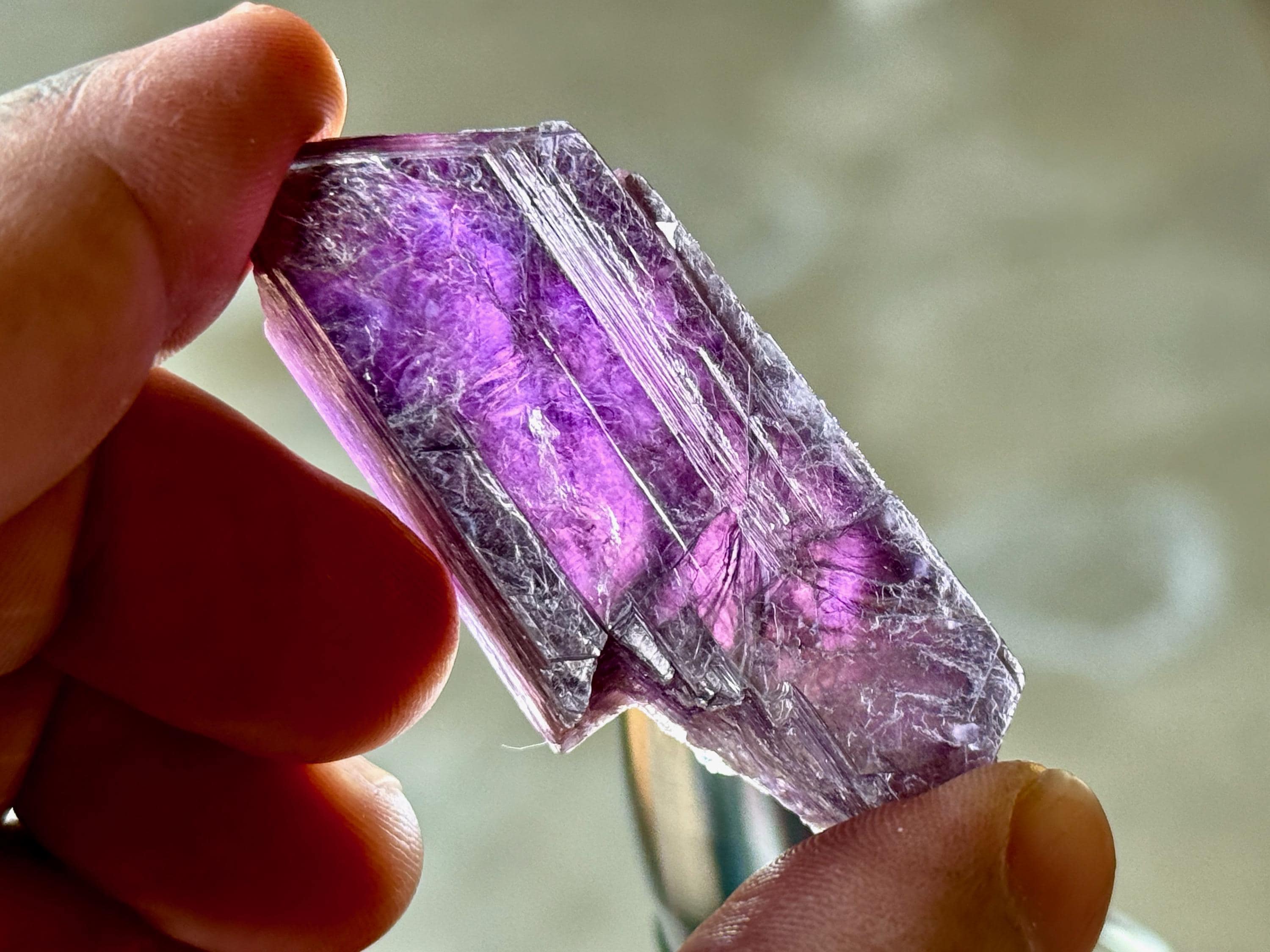 Vibrant, metallic purple hues to each of these Purple Lepidolite crystals! These are "gem" Lepidolites and each has marvelous translucency when backlit, as pictured.