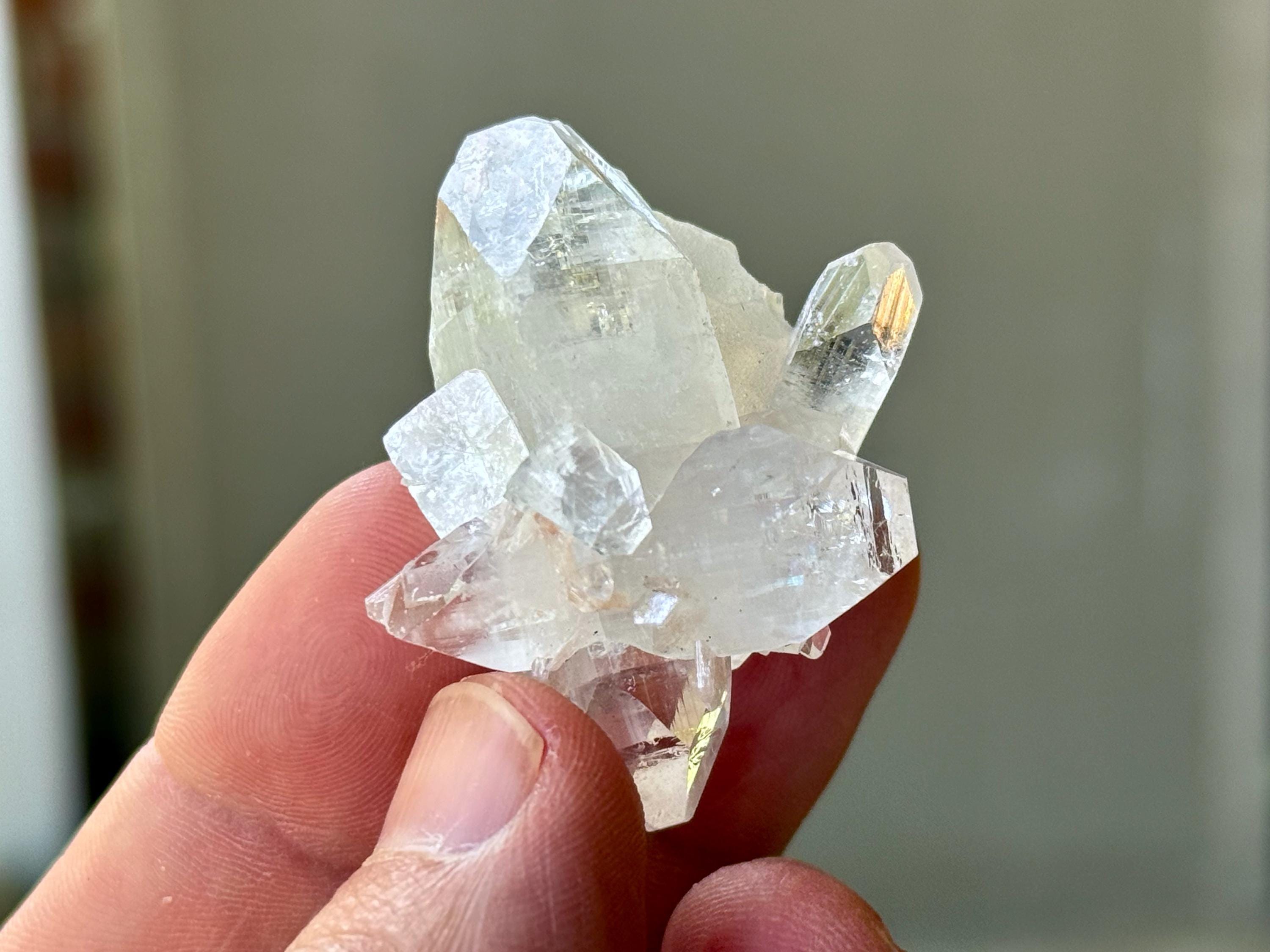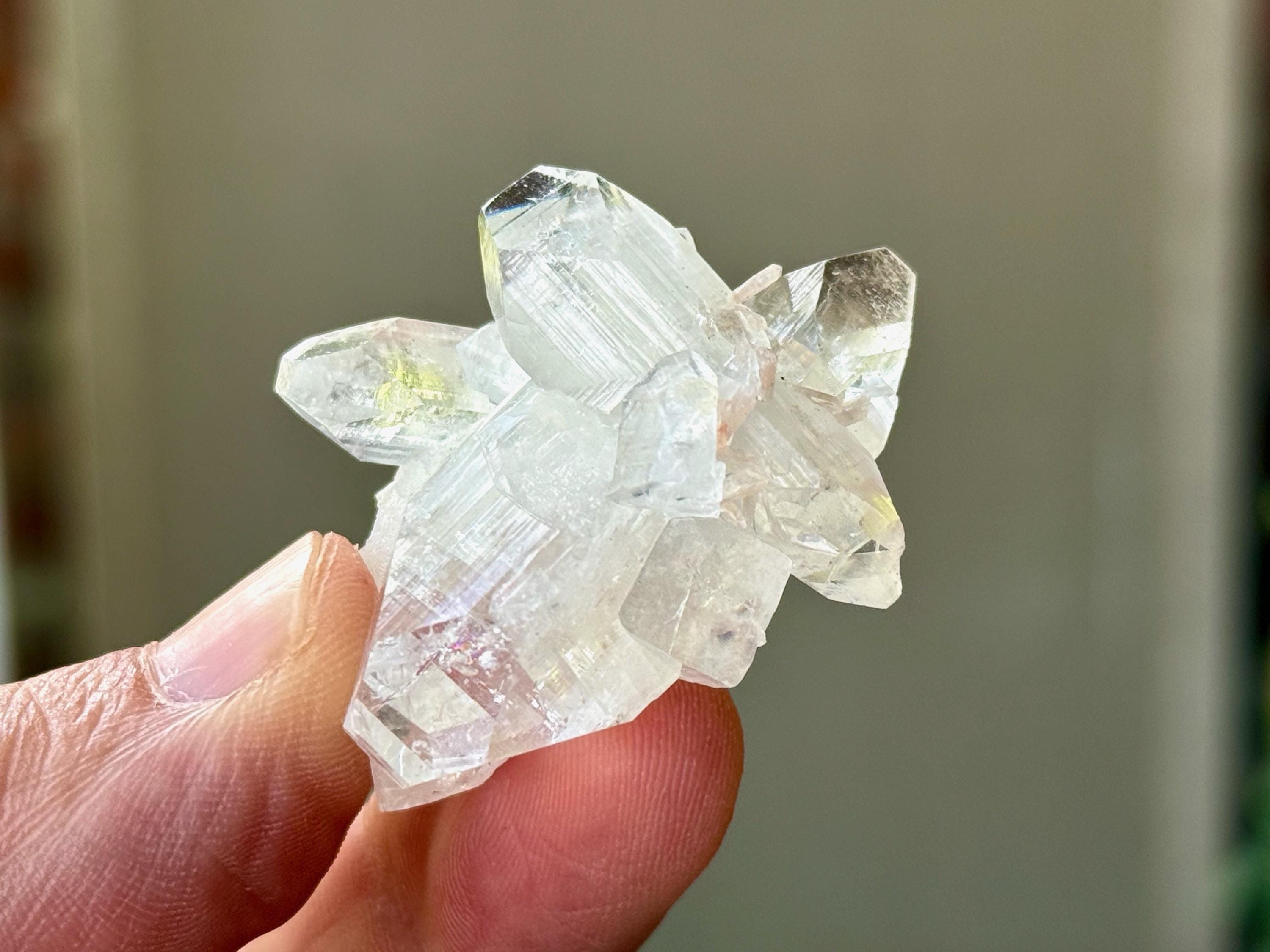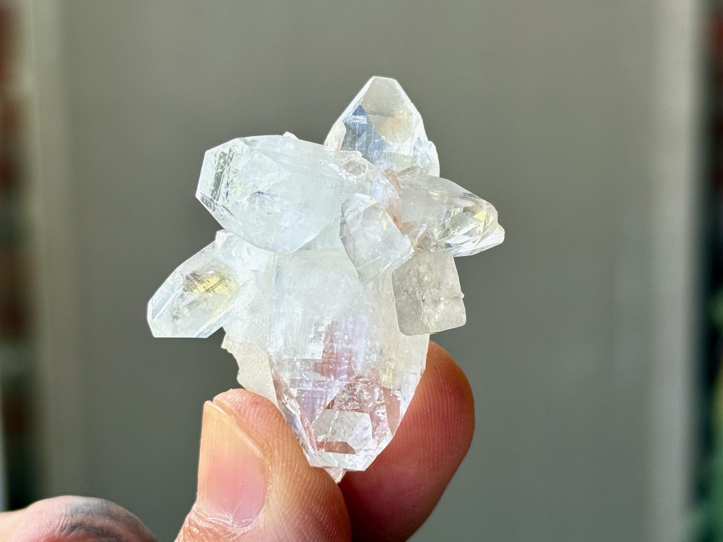 An ethereal quality to this stunning Apophyllite Quartz crystal! This is a cluster formation that possesses superb clarity and brilliant luster. Most of these crystals in the cluster are Double Terminated! Excellent terminations to this one as well.