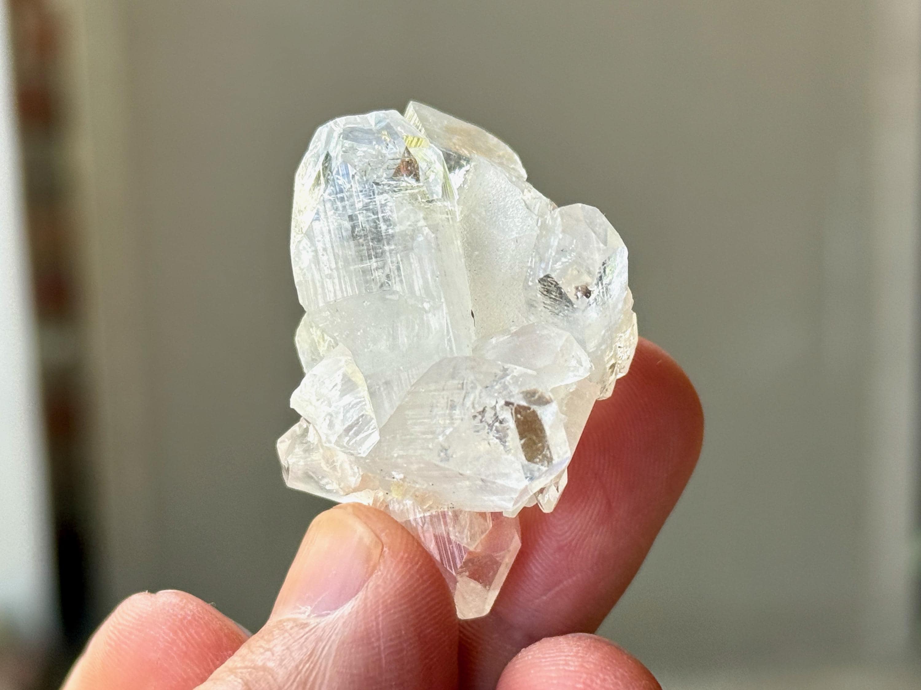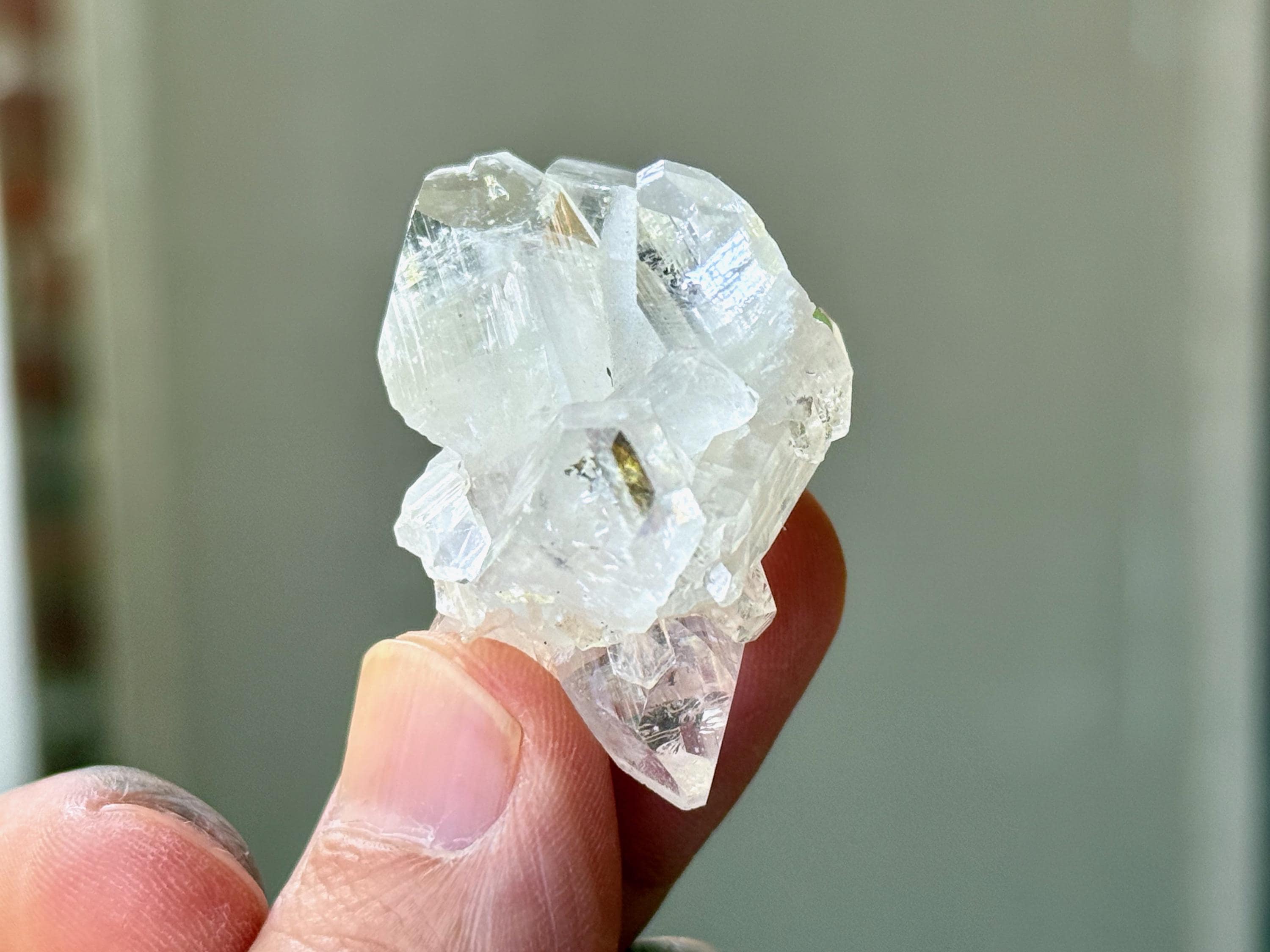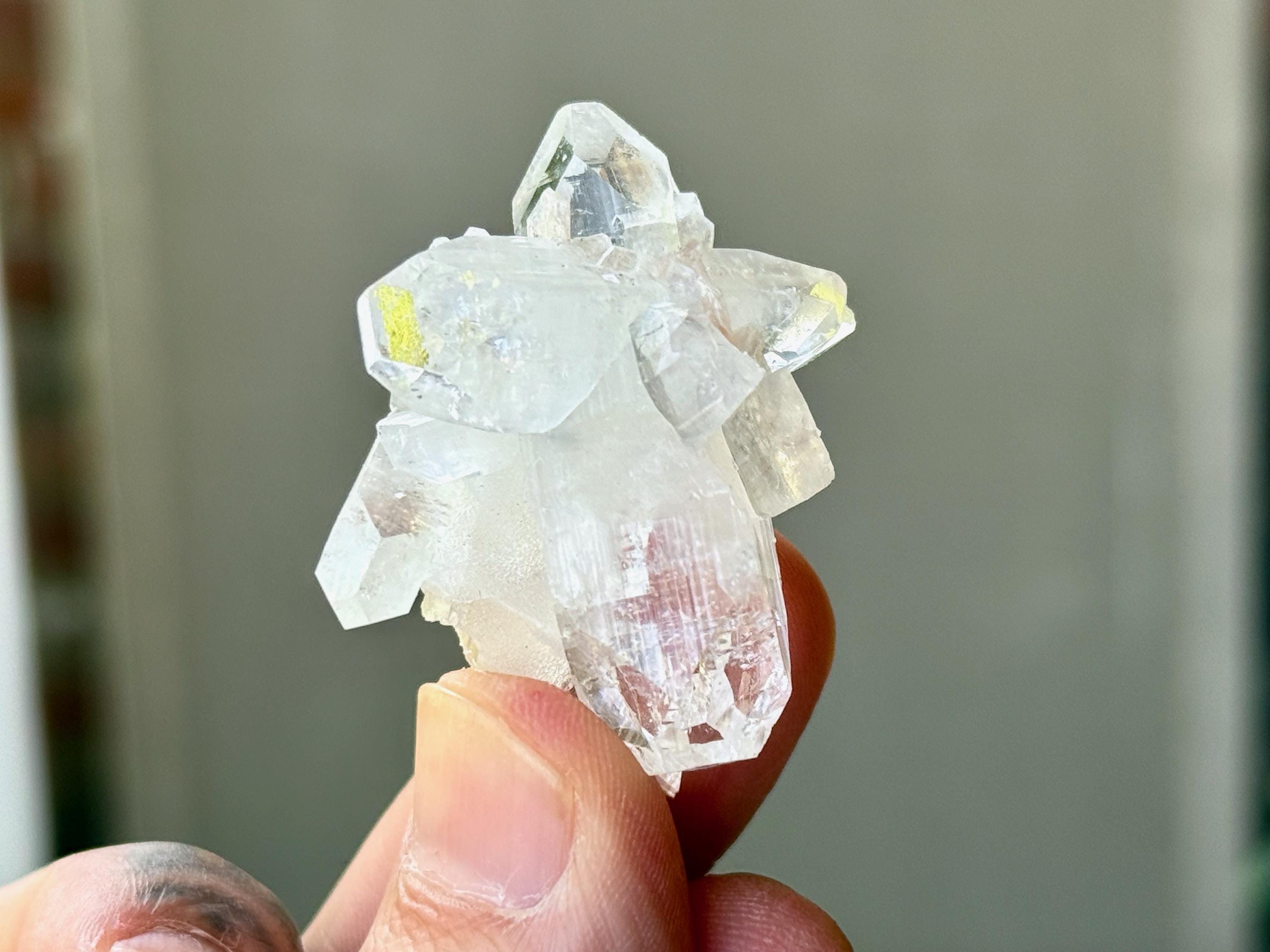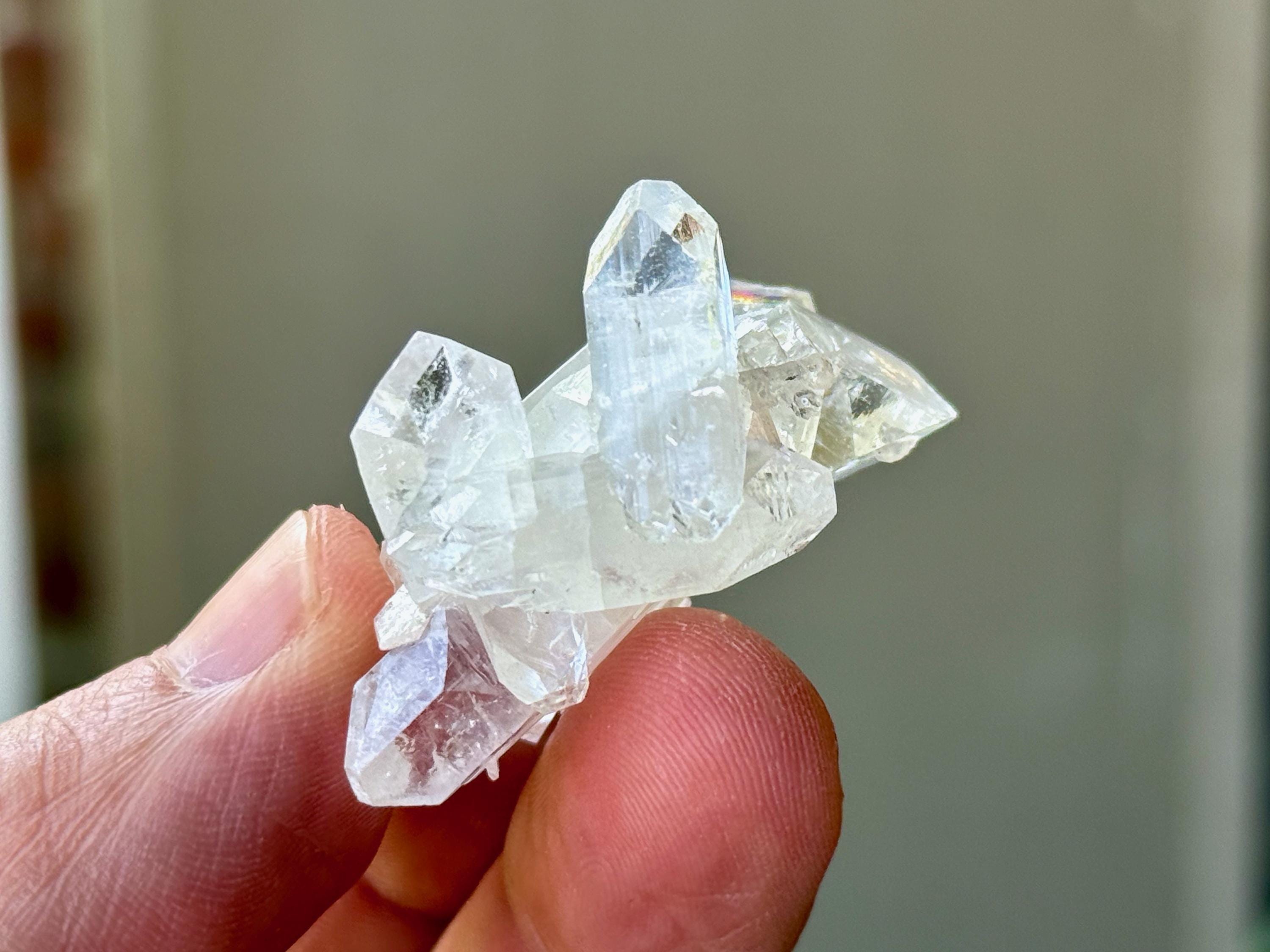 An ethereal quality to this stunning Apophyllite Quartz crystal! This is a cluster formation that possesses superb clarity and brilliant luster. Most of these crystals in the cluster are Double Terminated! Excellent terminations to this one as well.