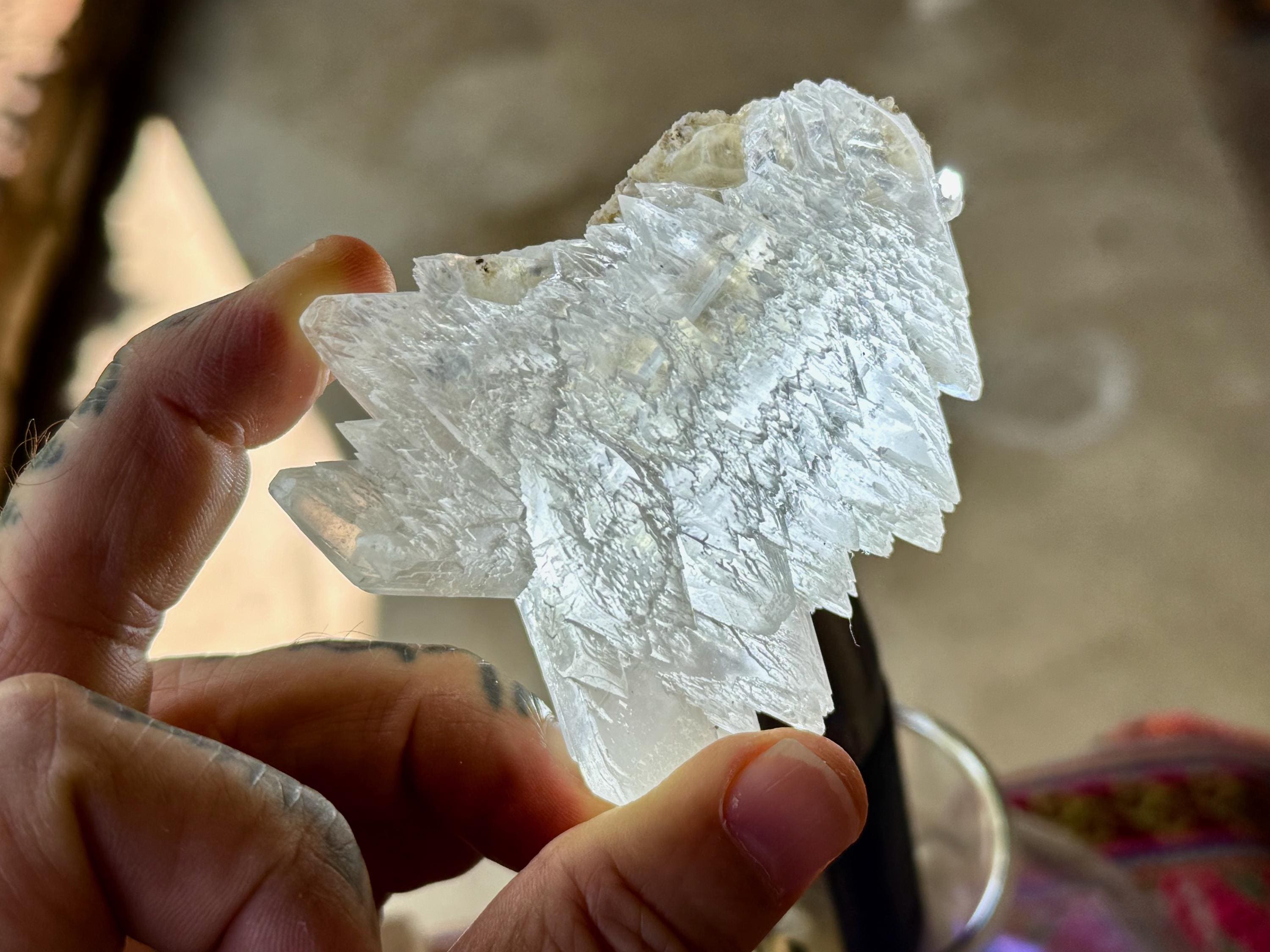 Gorgeous clarity and wonderful opalescence to this superb Fishtail Selenite! This piece is one we'd call an "Angel Wing" Selenite, as the formation really does resemble angel wings.