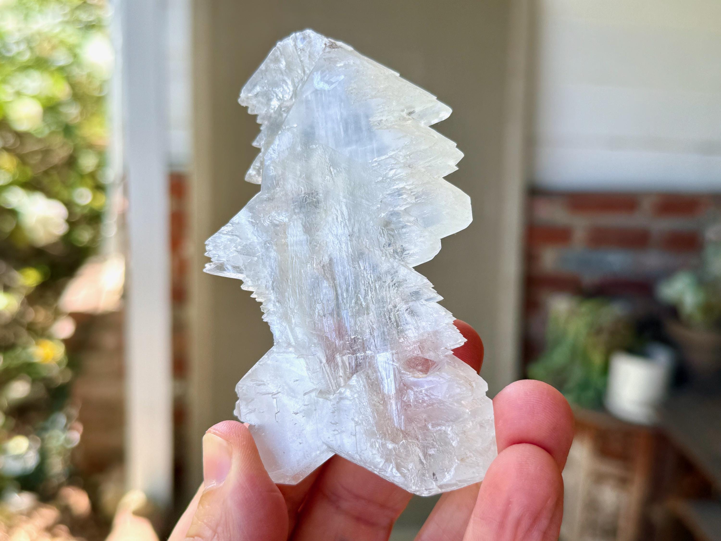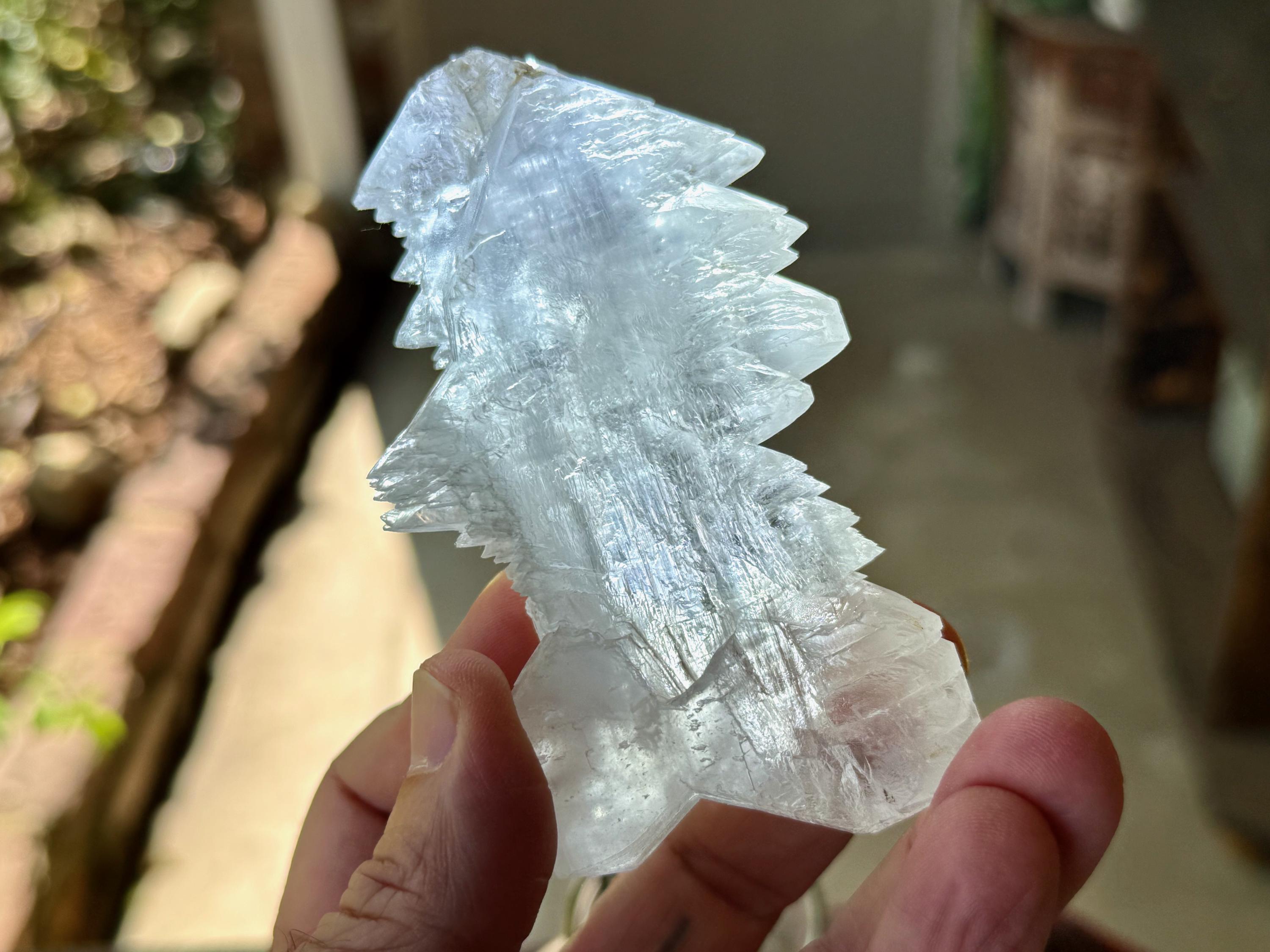 Gorgeous clarity and wonderful opalescence to this superb Fishtail Selenite! This one really does resemble the shape of a fish! This piece is weighty, with a broad and flat formation. When backlit, as in Photo 4, it lights up brilliantly. Outstanding quality to this one!