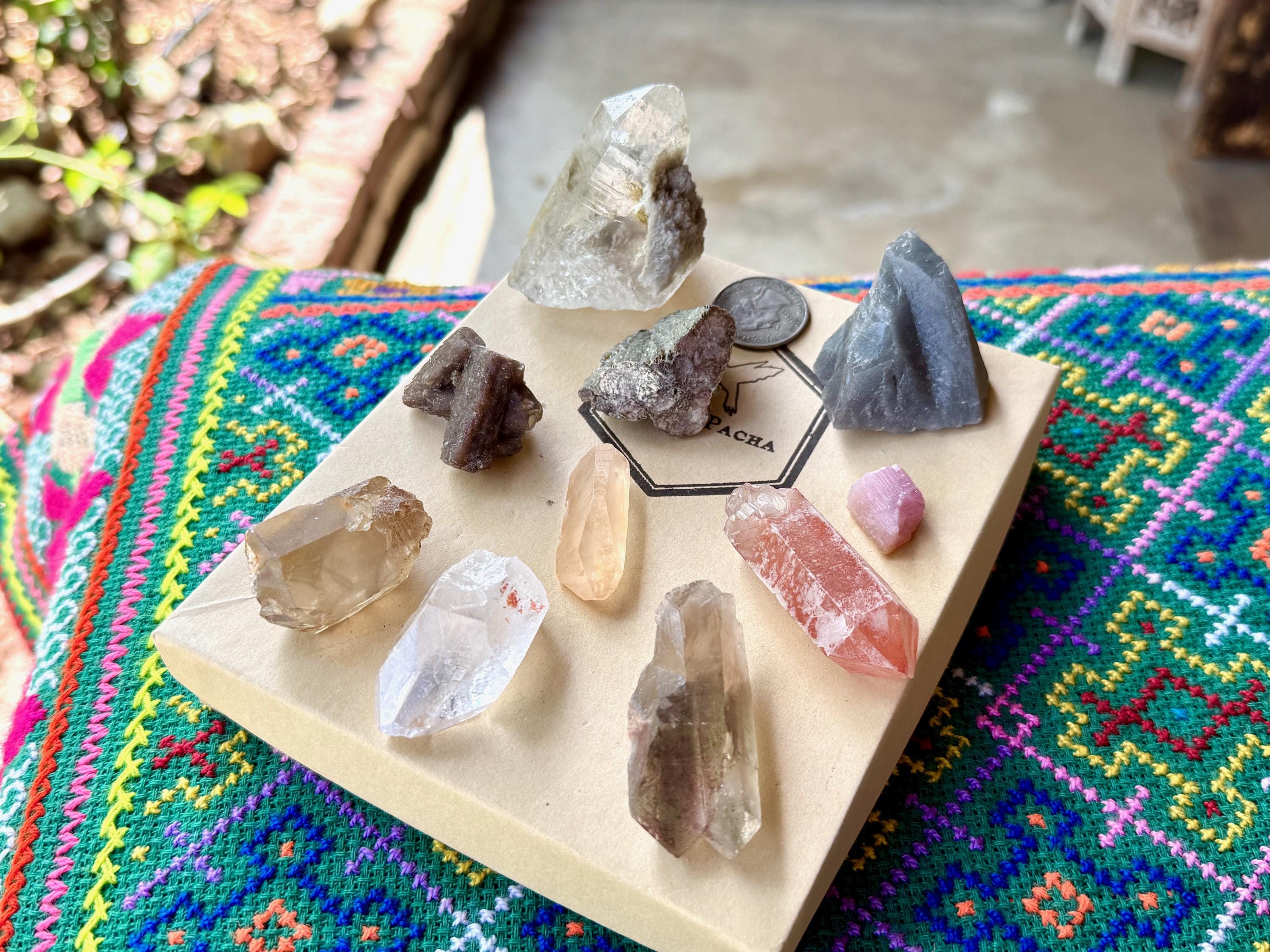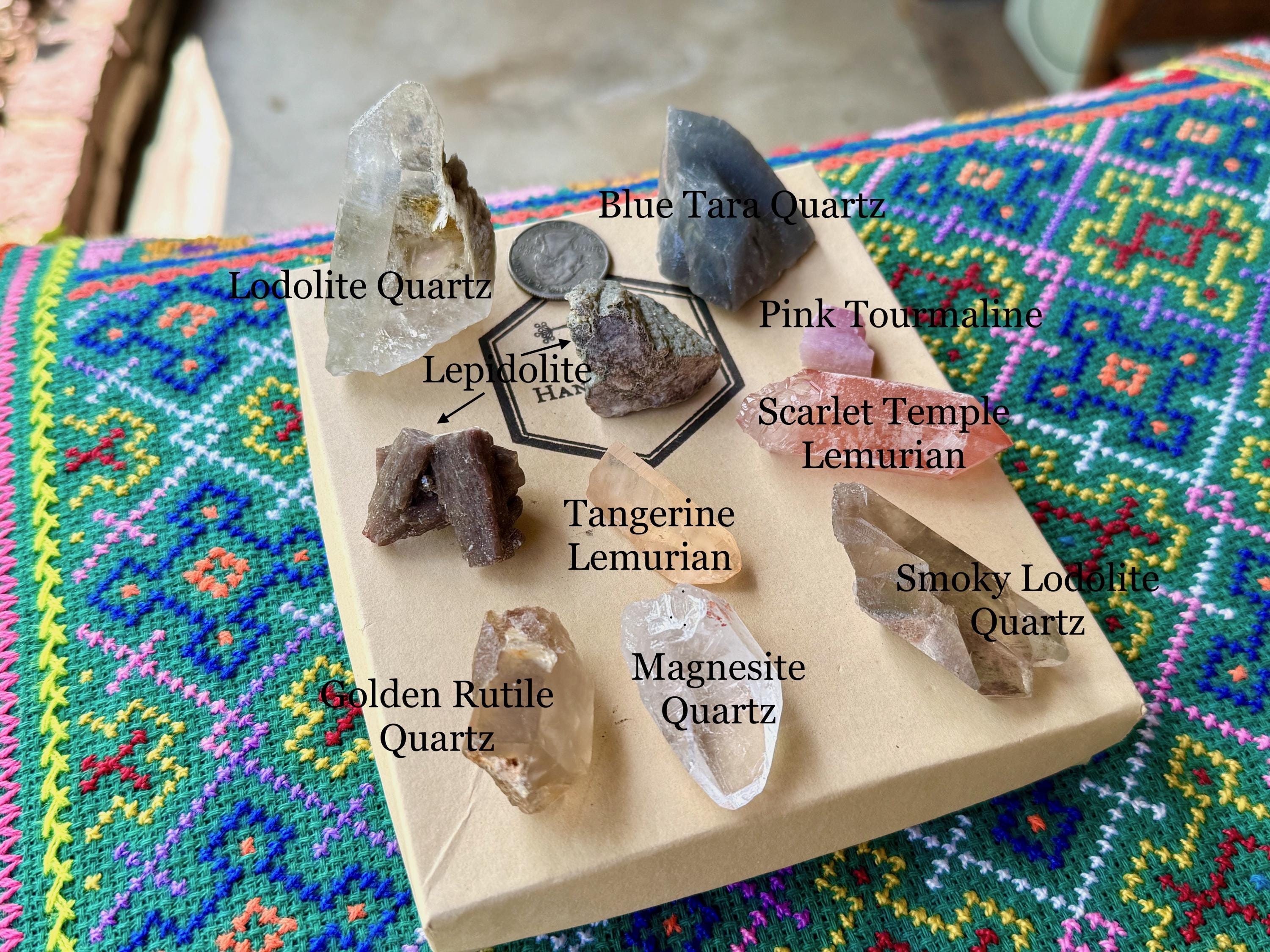 This 10-piece Brazilian Mixed Quartz lot includes a variety of crystals from different regions of Brazil, including: Blue Tara Quartz, Pink Tourmaline, Magnesite Quartz, Lepidolite, Tangerine Lemurian, Scarlet Temple Lemurian and more.