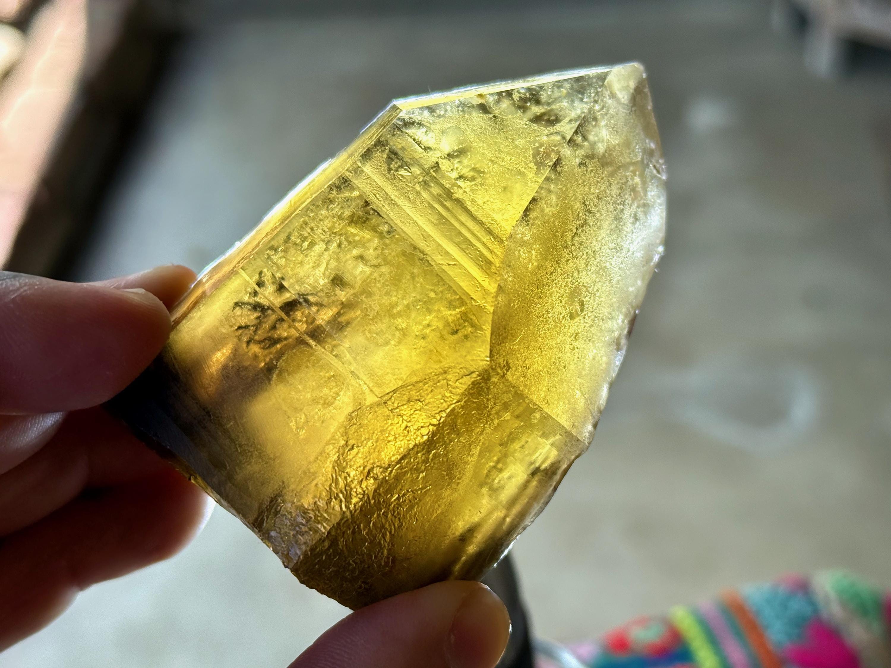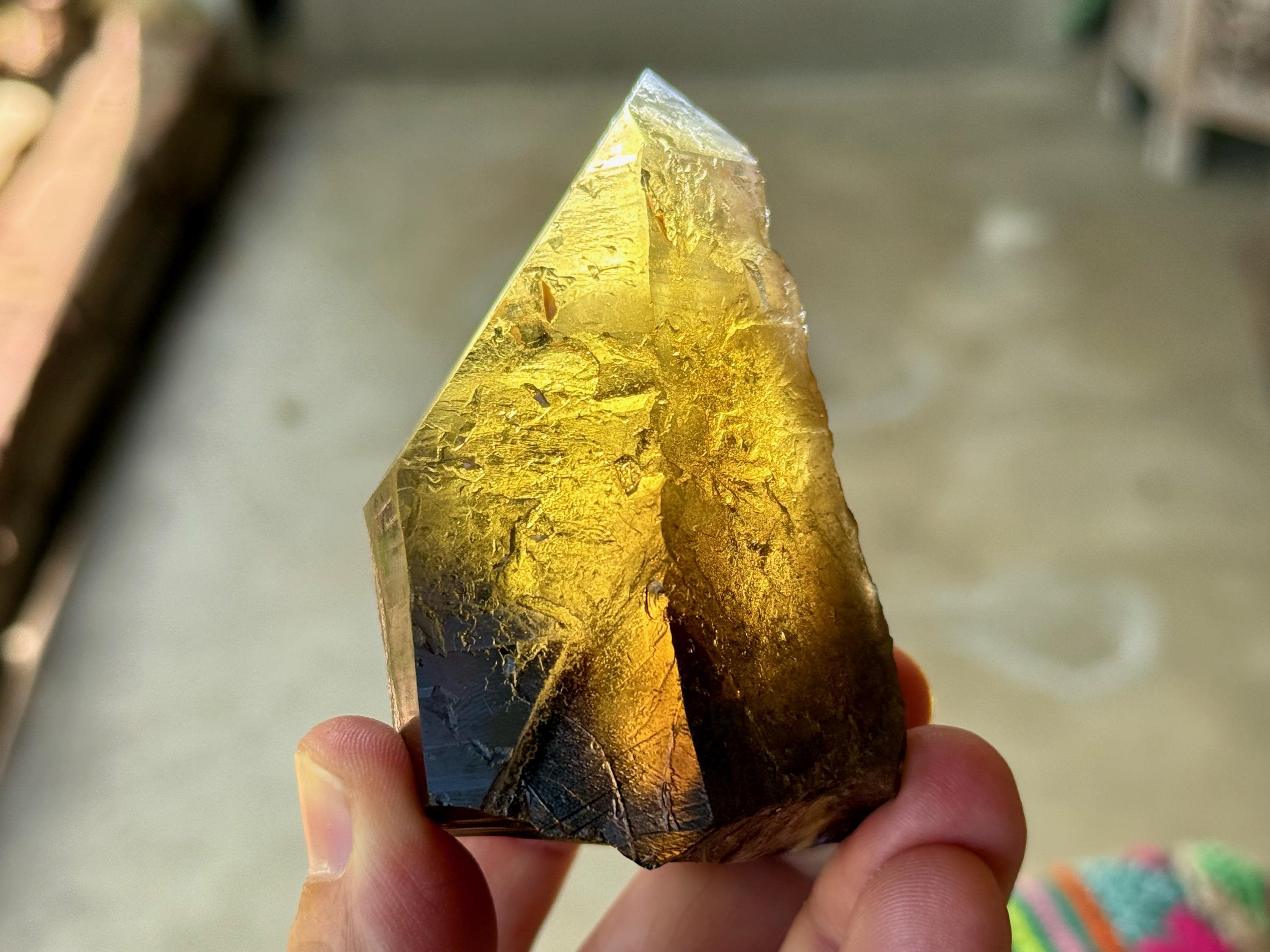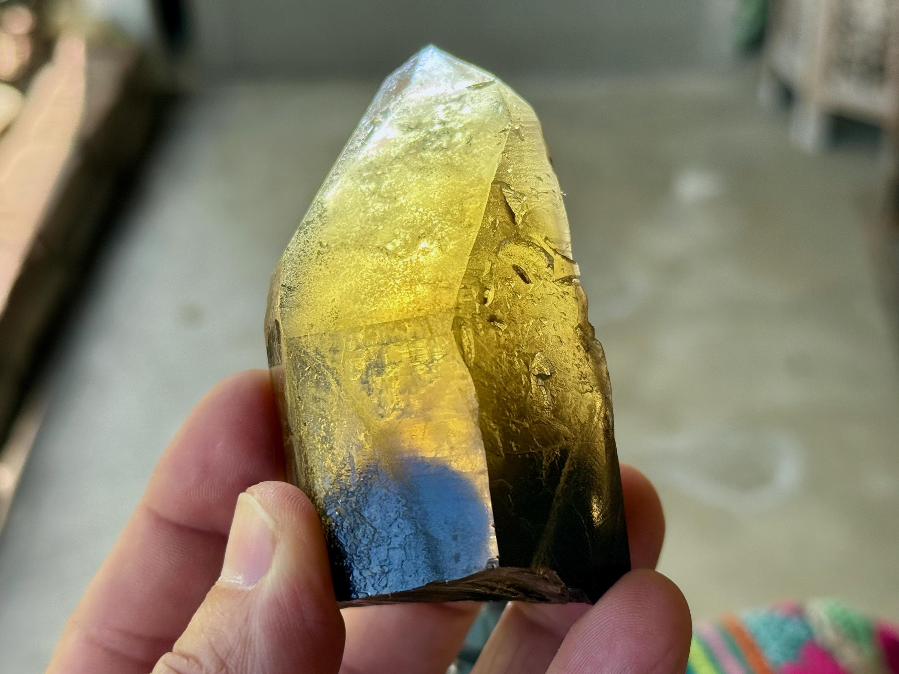 This natural Pele’s Dream Lemurian Citrine comes from a recent (2025) find in Cristalina, Goiás, Brazil.