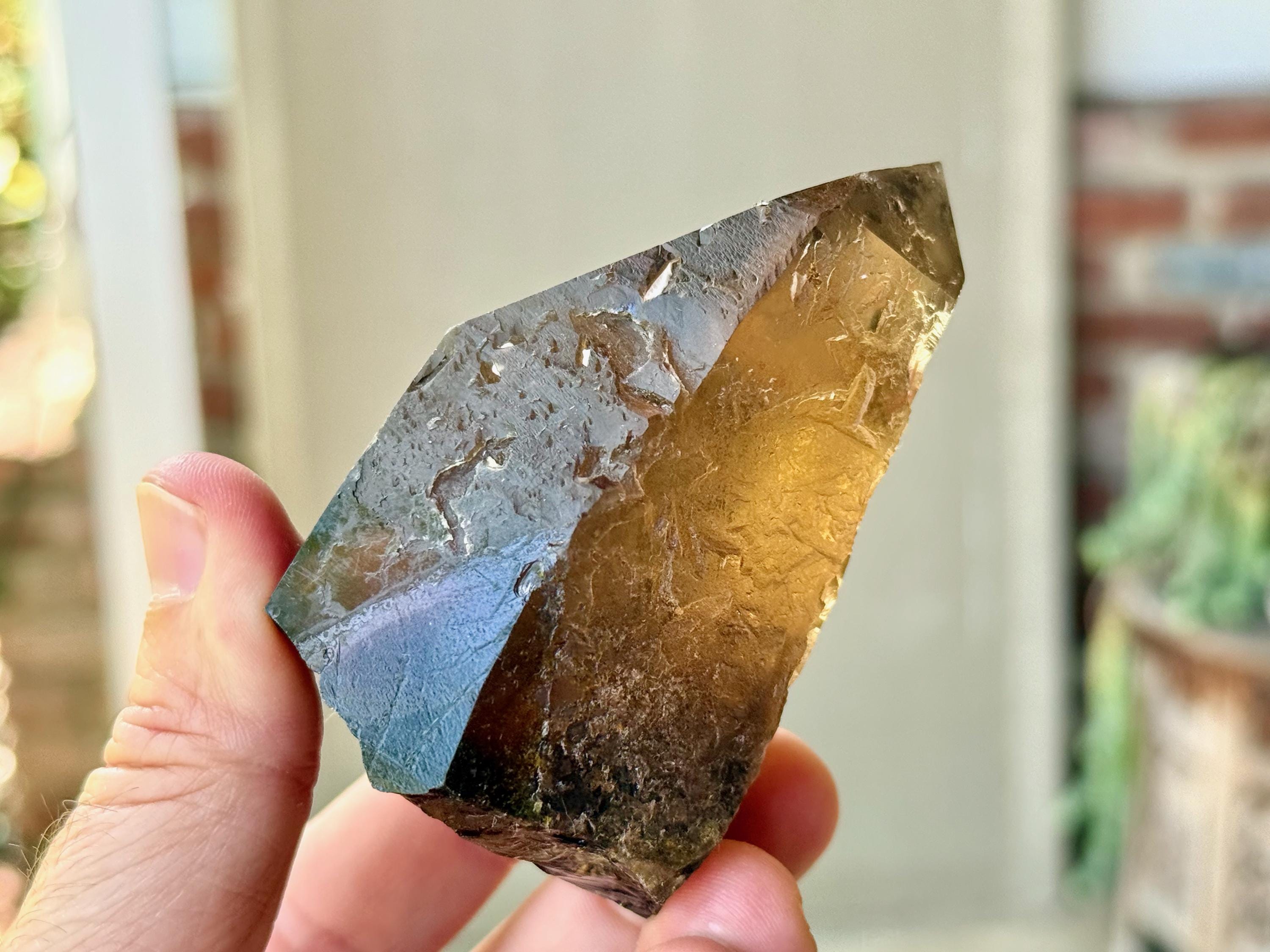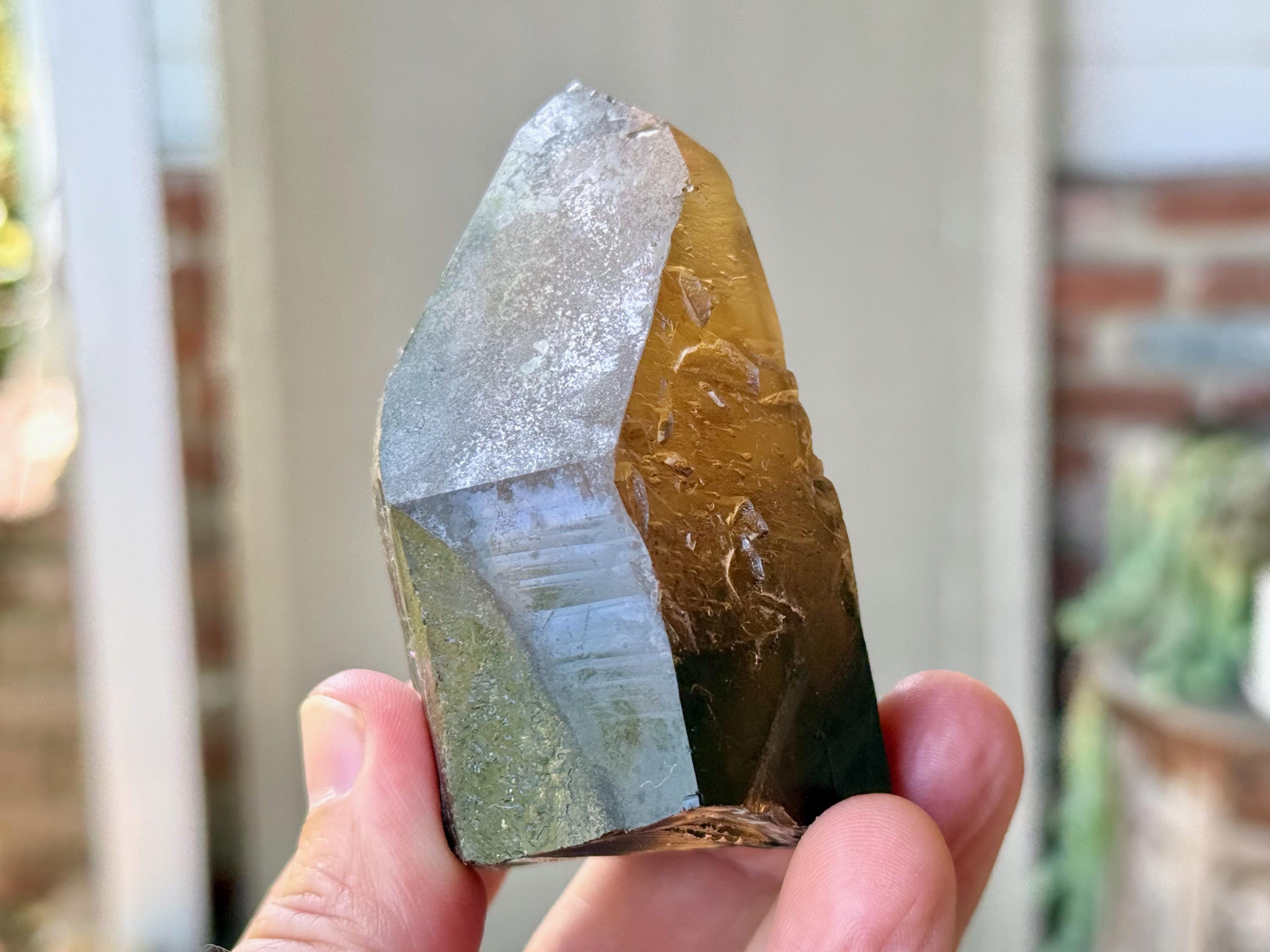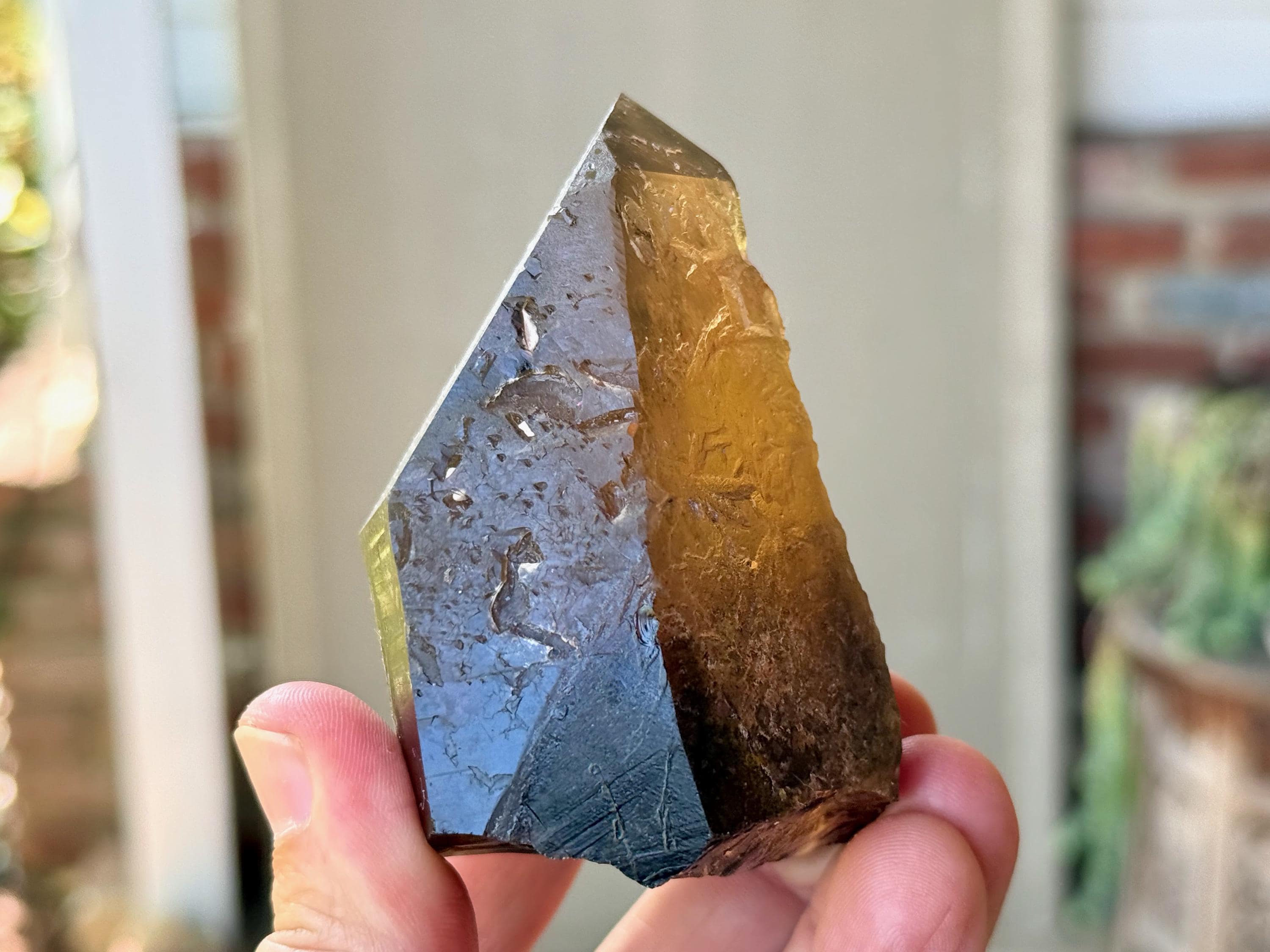 This natural Pele’s Dream Lemurian Citrine comes from a recent (2025) find in Cristalina, Goiás, Brazil.