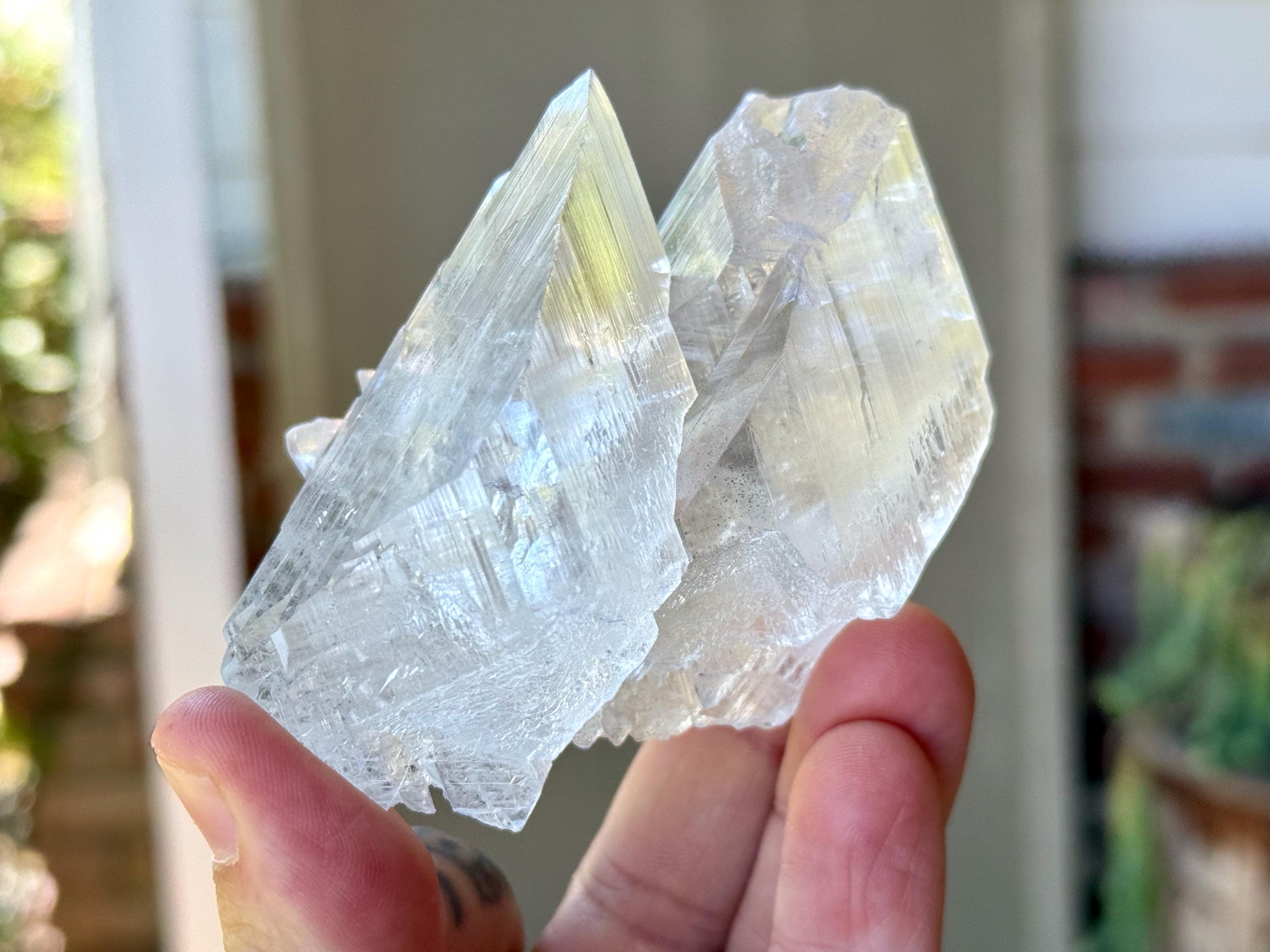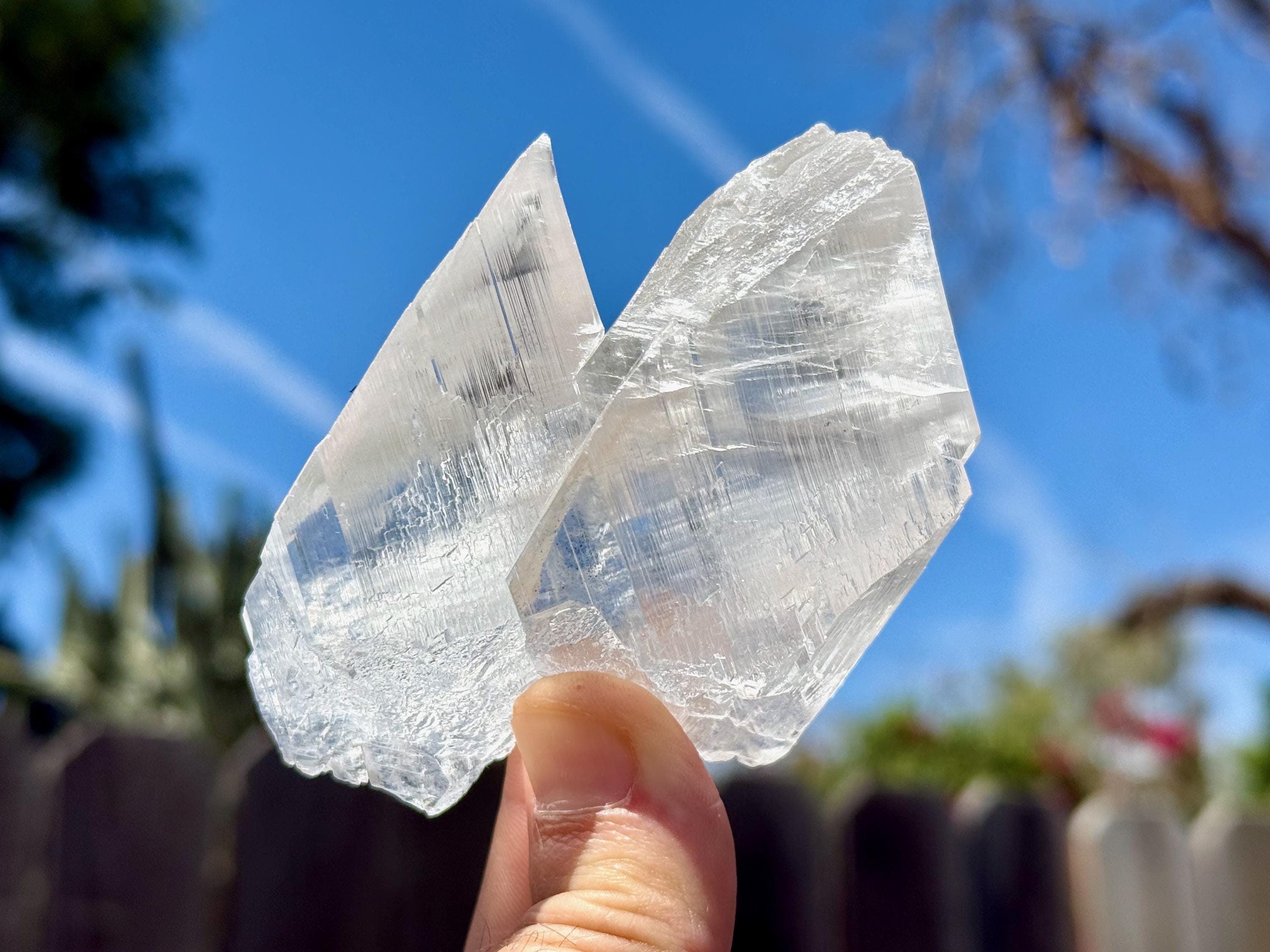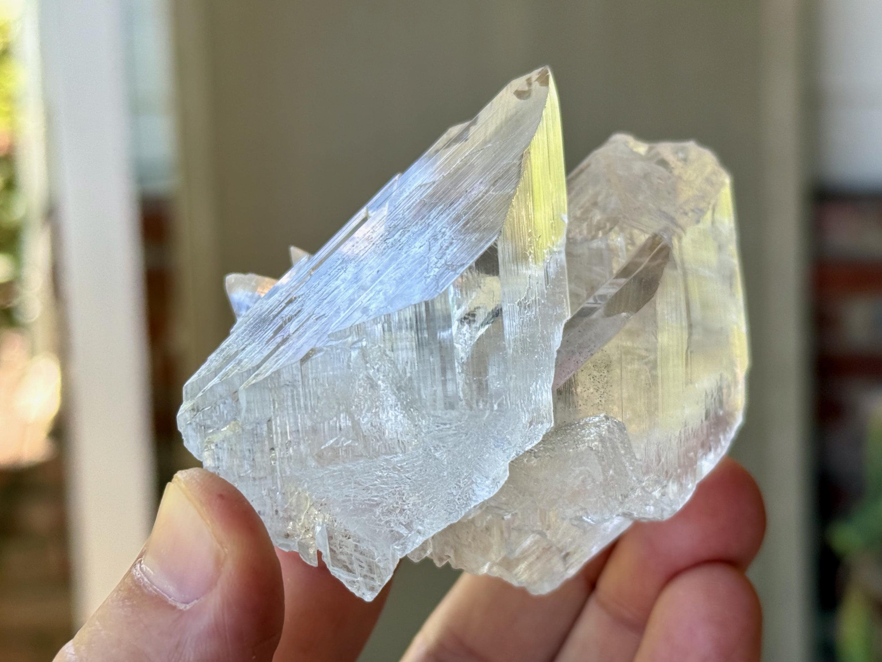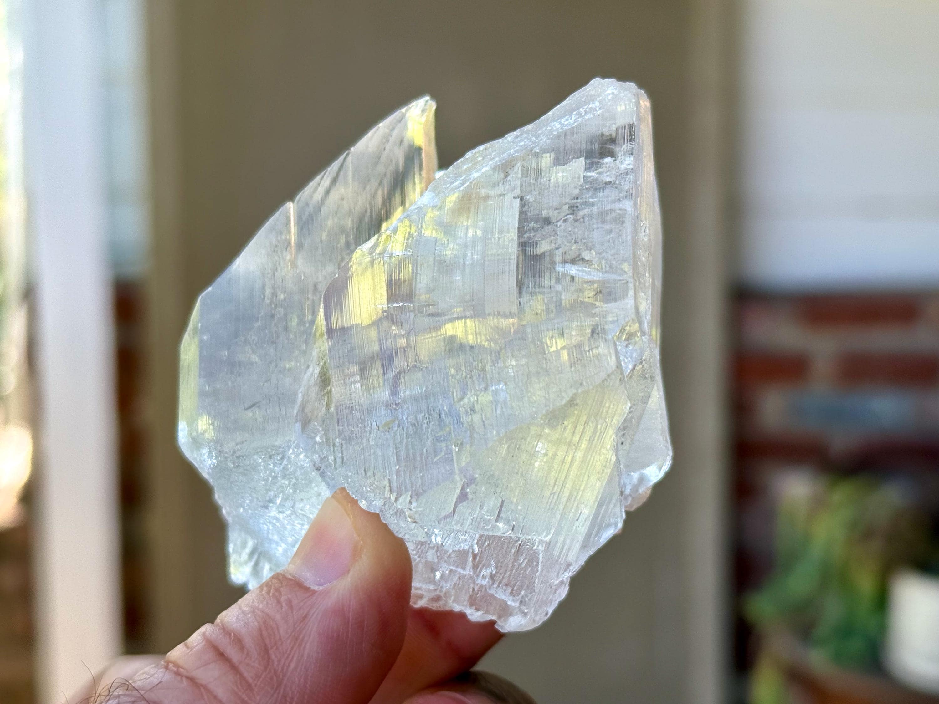 Water clear clarity and brilliant luster to this exquisite Naica Selenite in a Tantric Twin formation. This crystal is a superfine example of the quality we've come to appreciate from the Naica Mine, with a stable crystalline formation and beautiful vertical grooves.